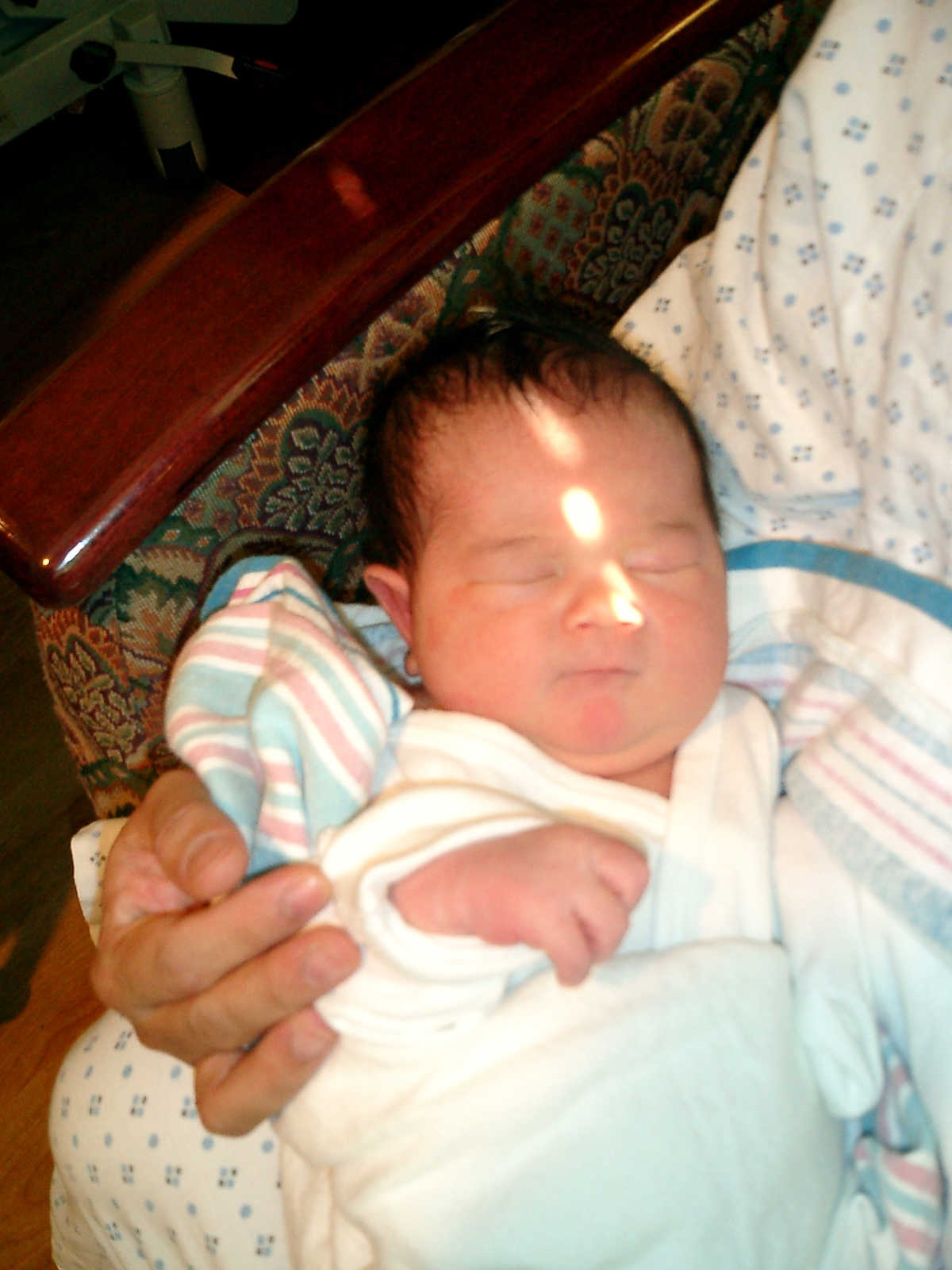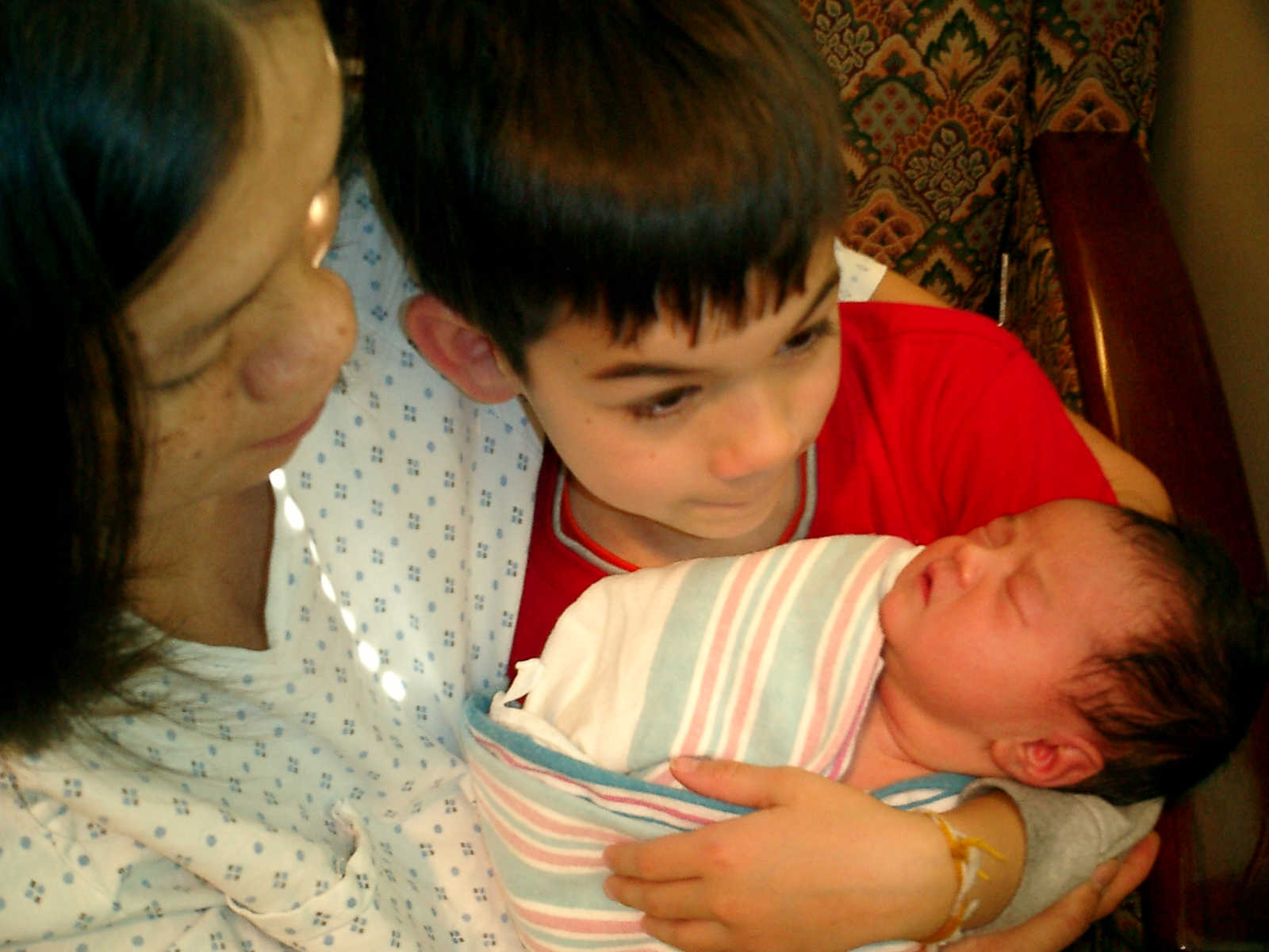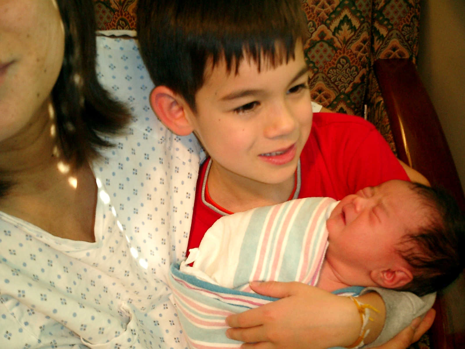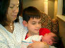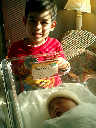 | Nolan was looking forward to the arrival of his baby sister Nadine, and came to the hospital the next day to visit Mommy and Nadine. As the big brother, Nolan got to hold Nadine, giving her a big hug, and asked when we could take her home. Very soon! |
