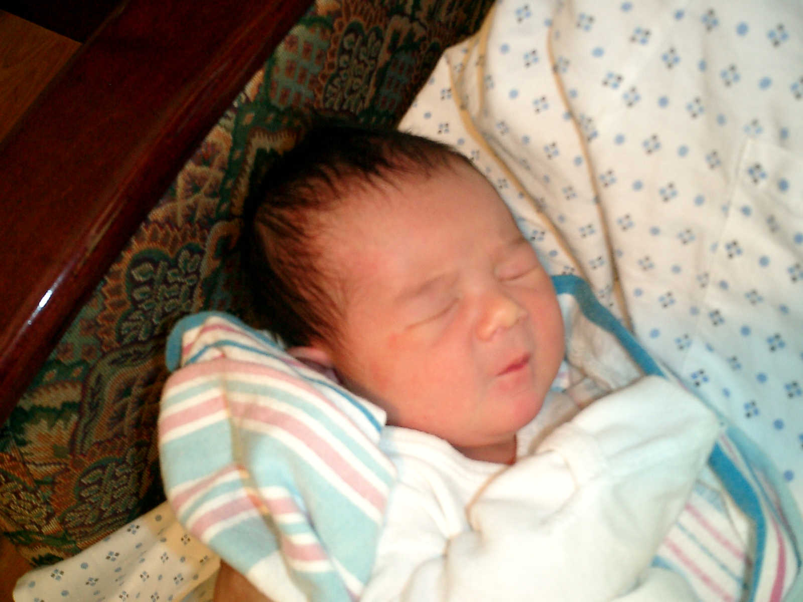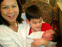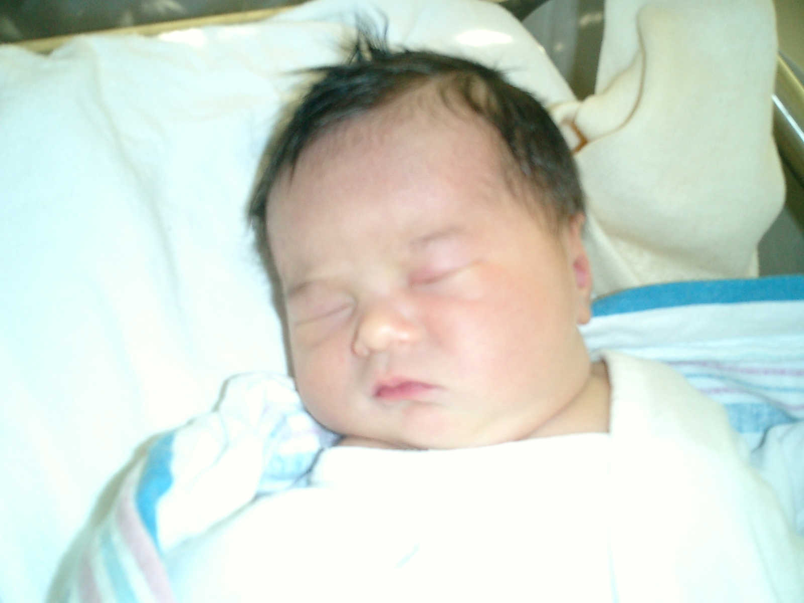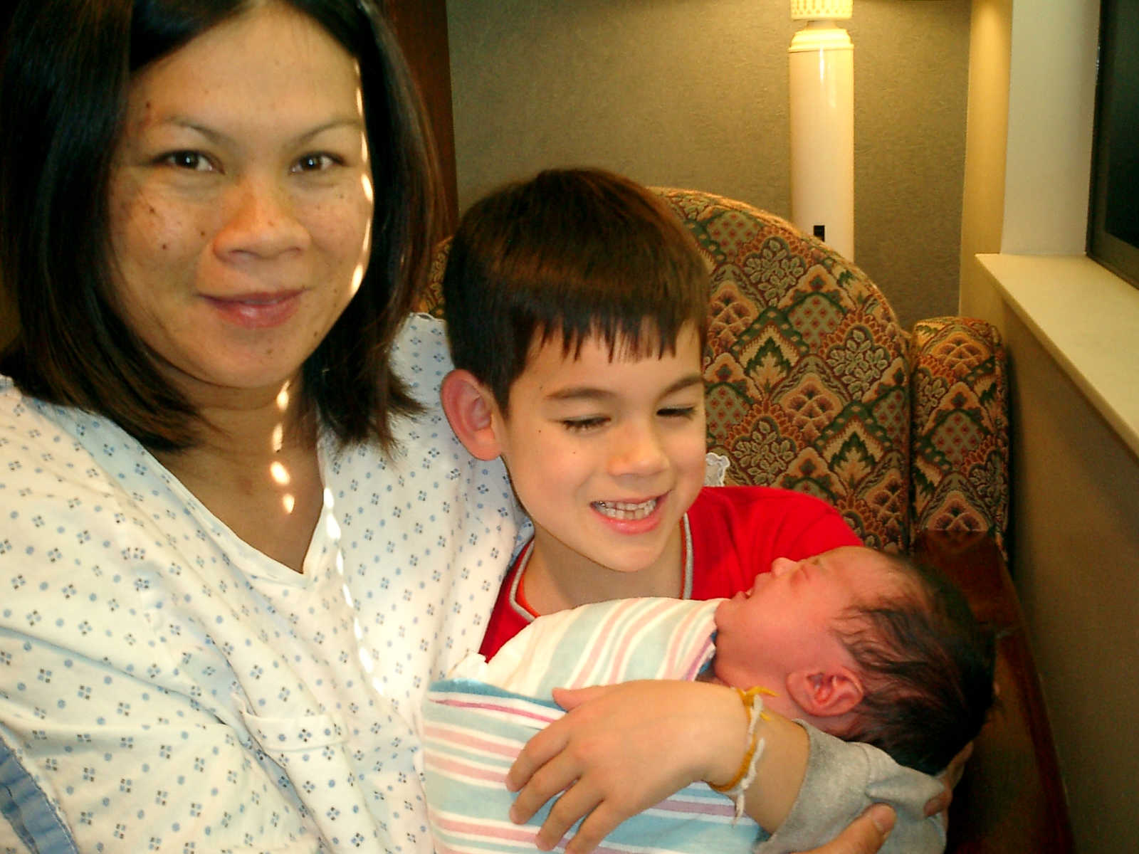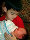 | Nolan was looking forward to the arrival of his baby sister Nadine, and came to the hospital the next day to visit Mommy and Nadine. As the big brother, Nolan got to hold Nadine, giving her a big hug, and asked when we could take her home. Very soon! |