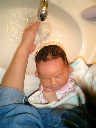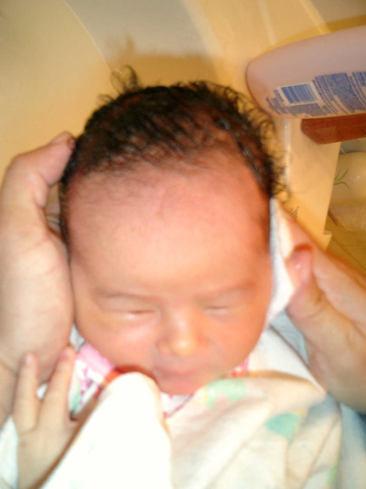 | With Nadine and Sally both happy and healthy, it was soon time to come home. Grandma Chansouk Souvannavong helped prepare Nadine for coming home, and soon we were in our house once again. Of course, that means it's time for Nadine to take a bath and get bundled up nice and warm! |