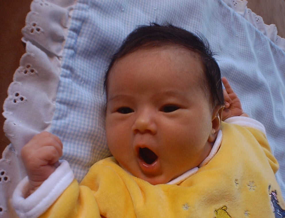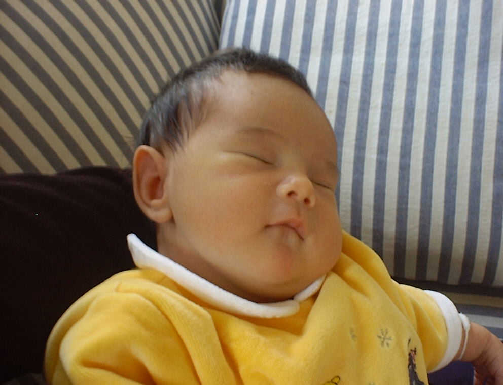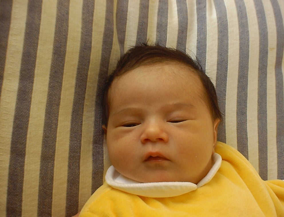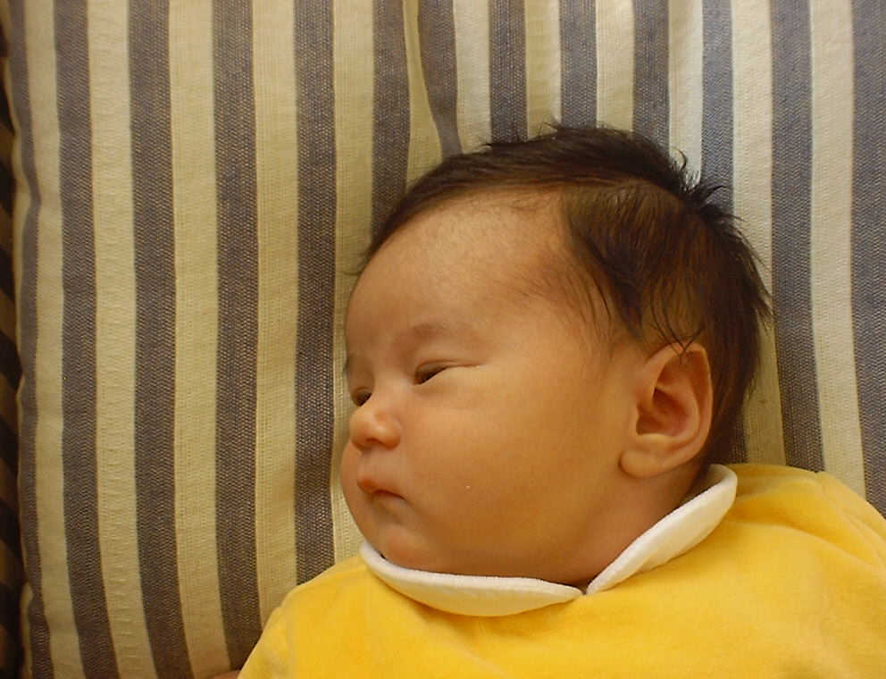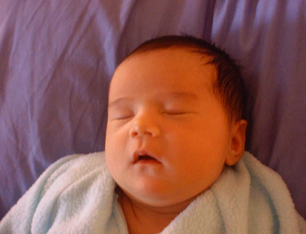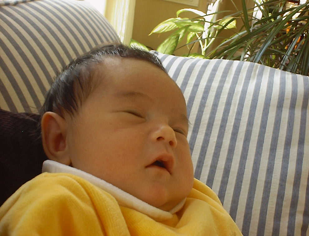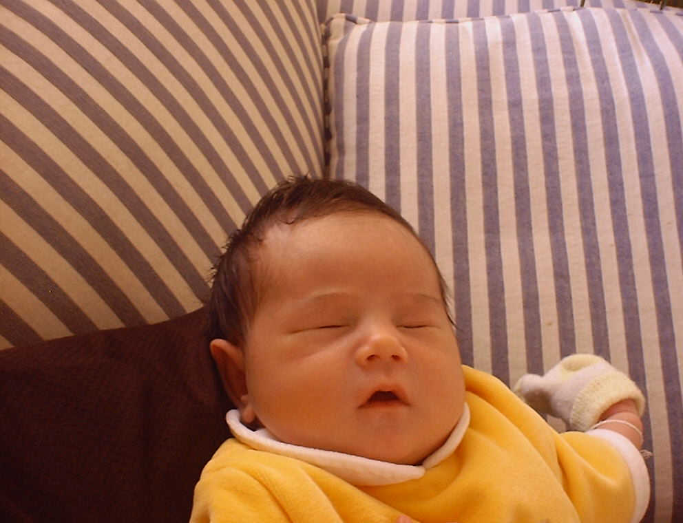 Here Nadine is a little over a week old, again relaxing after a nice meal. Nadine must be thinking, "Boy, all this eating and growing is hard work -- think I better take another nap!"