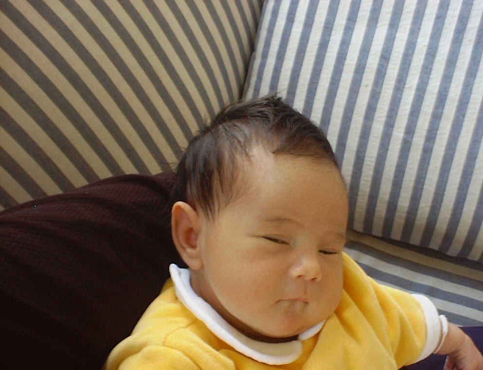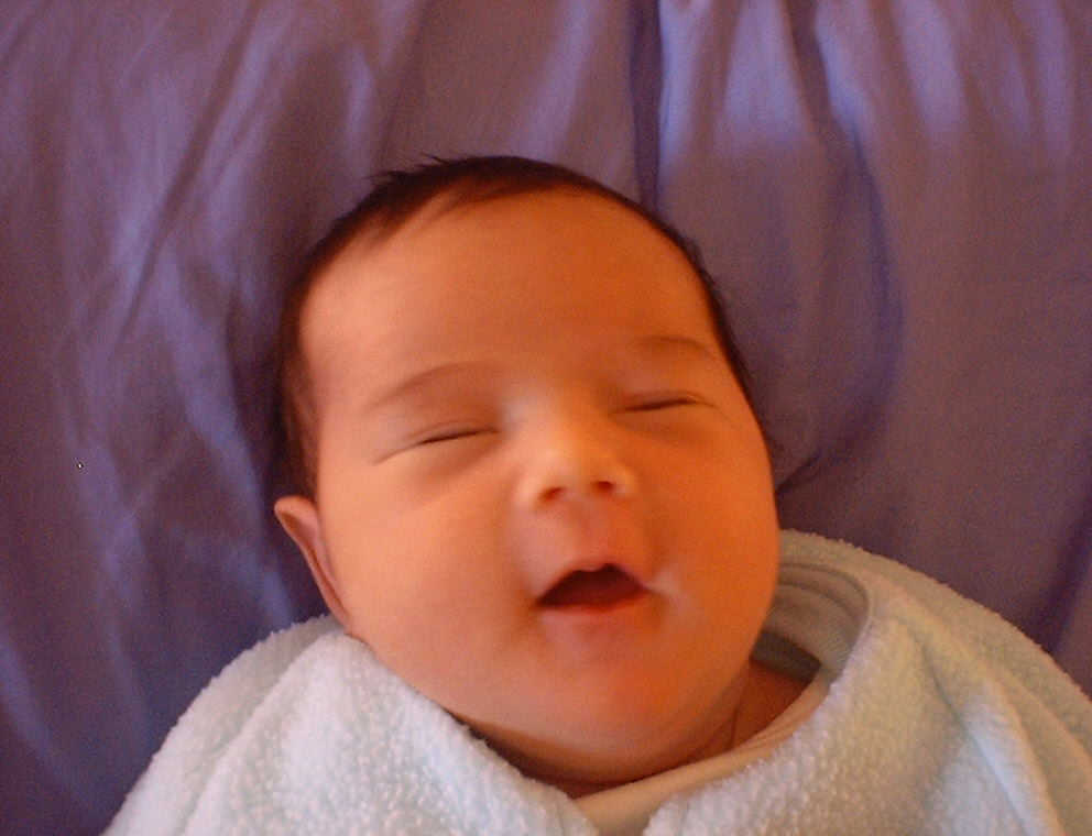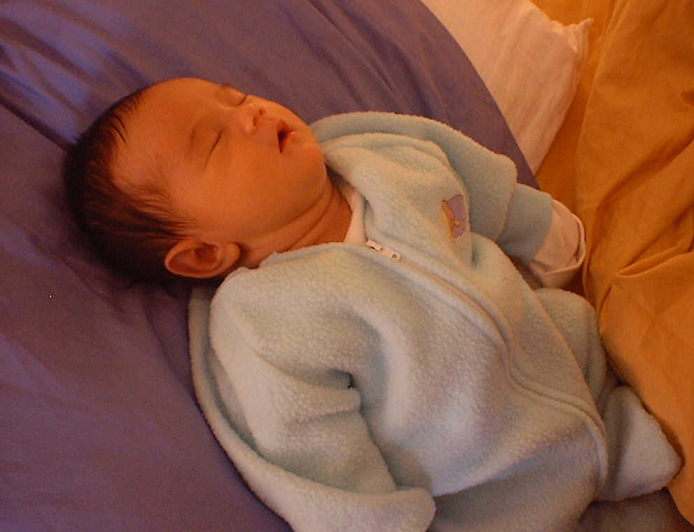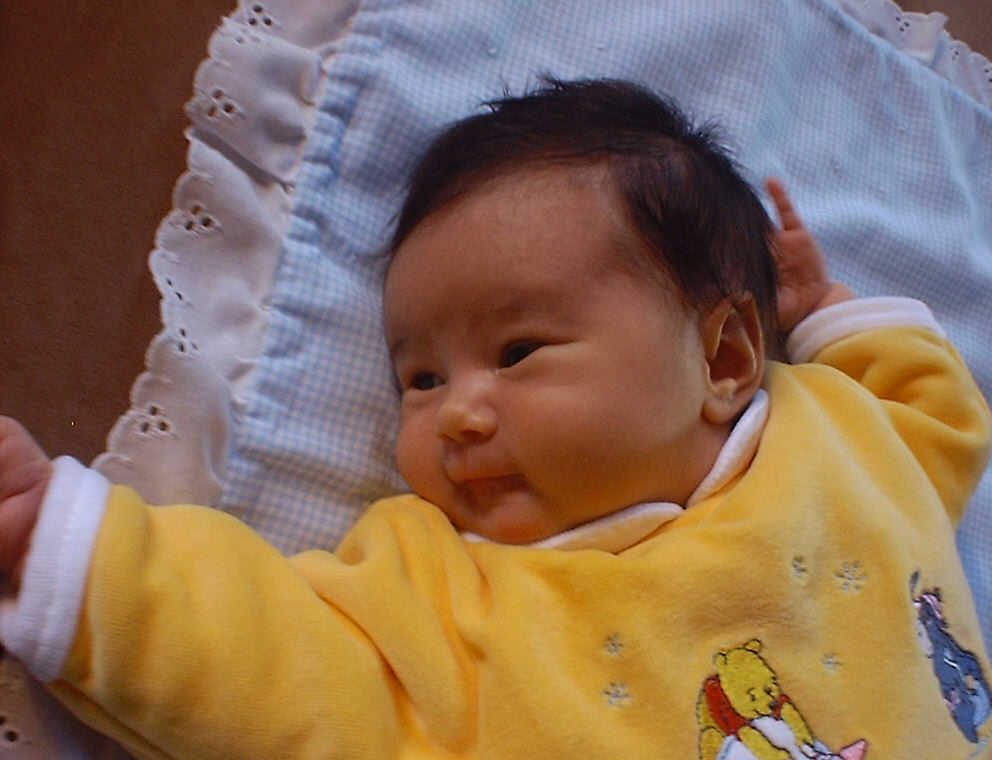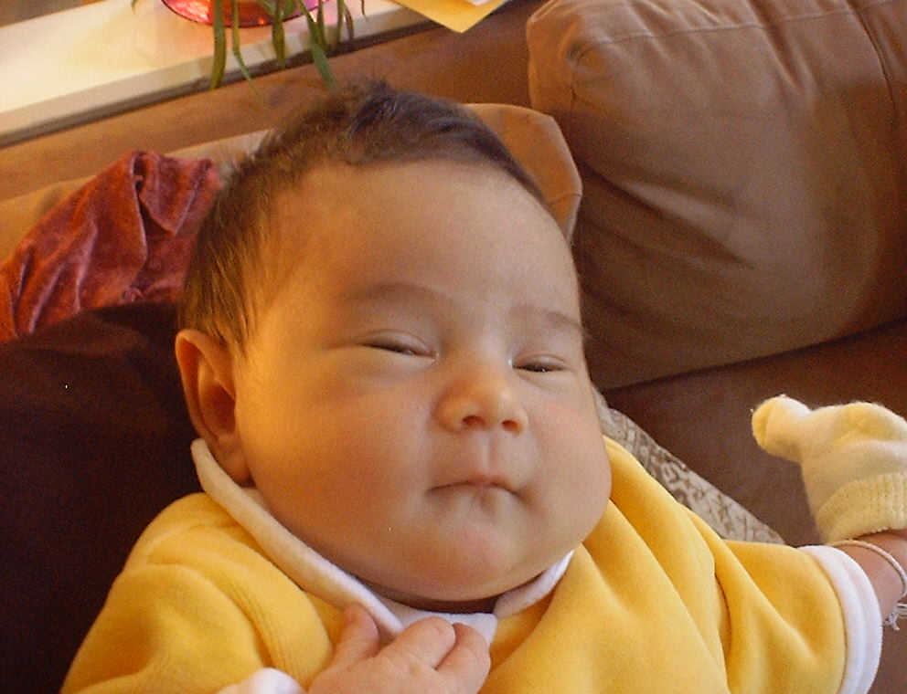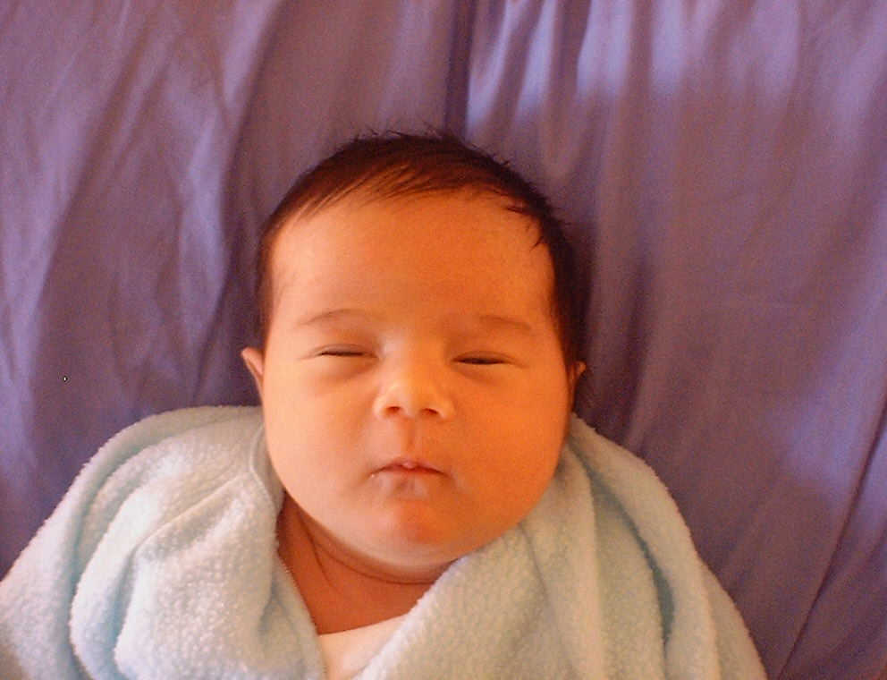 Here Nadine is a little over a week old, again relaxing after a nice meal. Nadine must be thinking, "Boy, all this eating and growing is hard work -- think I better take another nap!"
