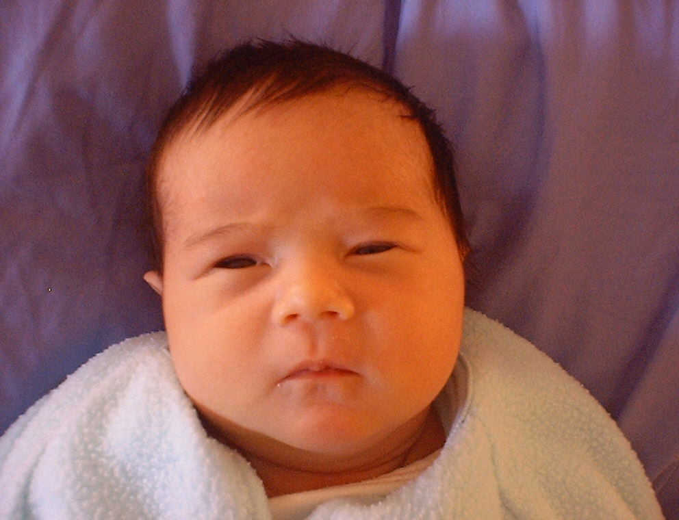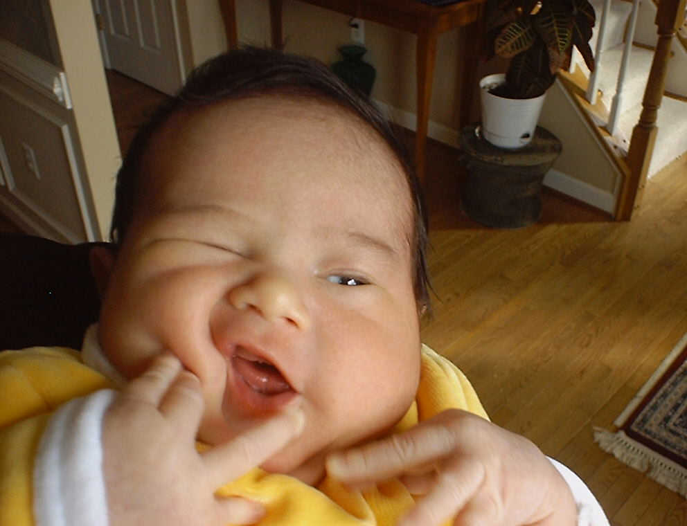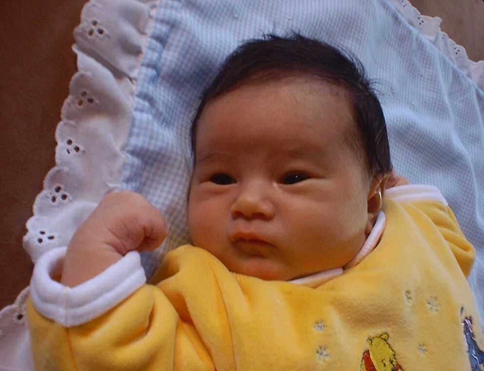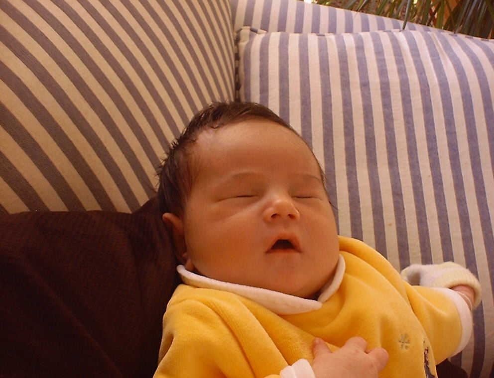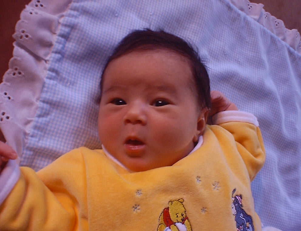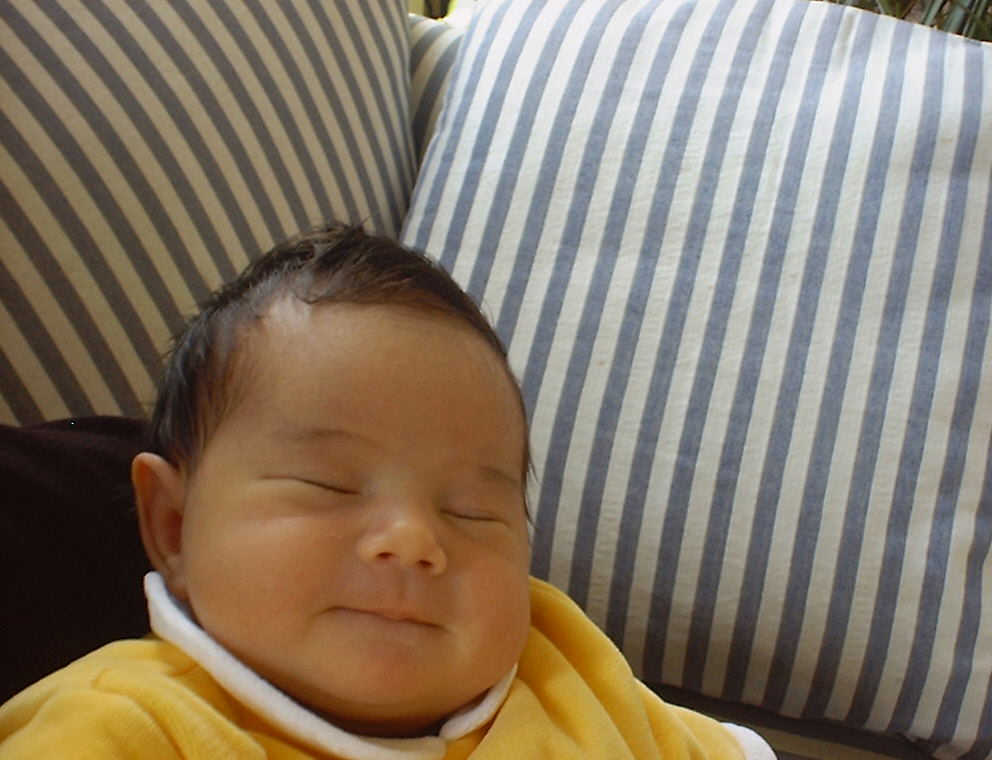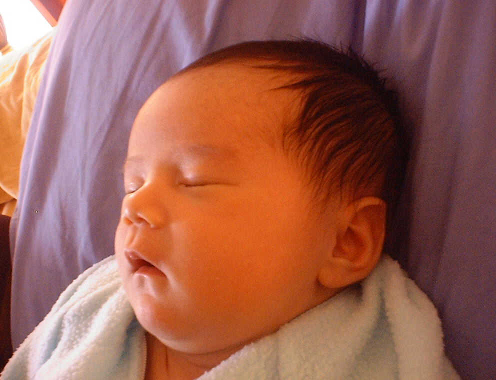 Here Nadine is a little over a week old, again relaxing after a nice meal. Nadine must be thinking, "Boy, all this eating and growing is hard work -- think I better take another nap!"