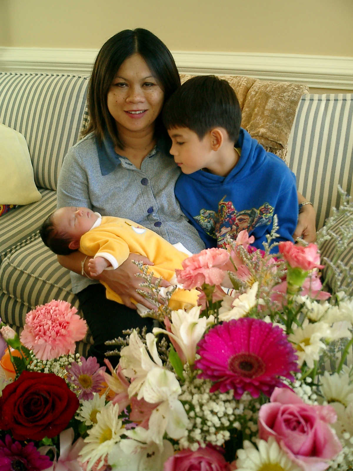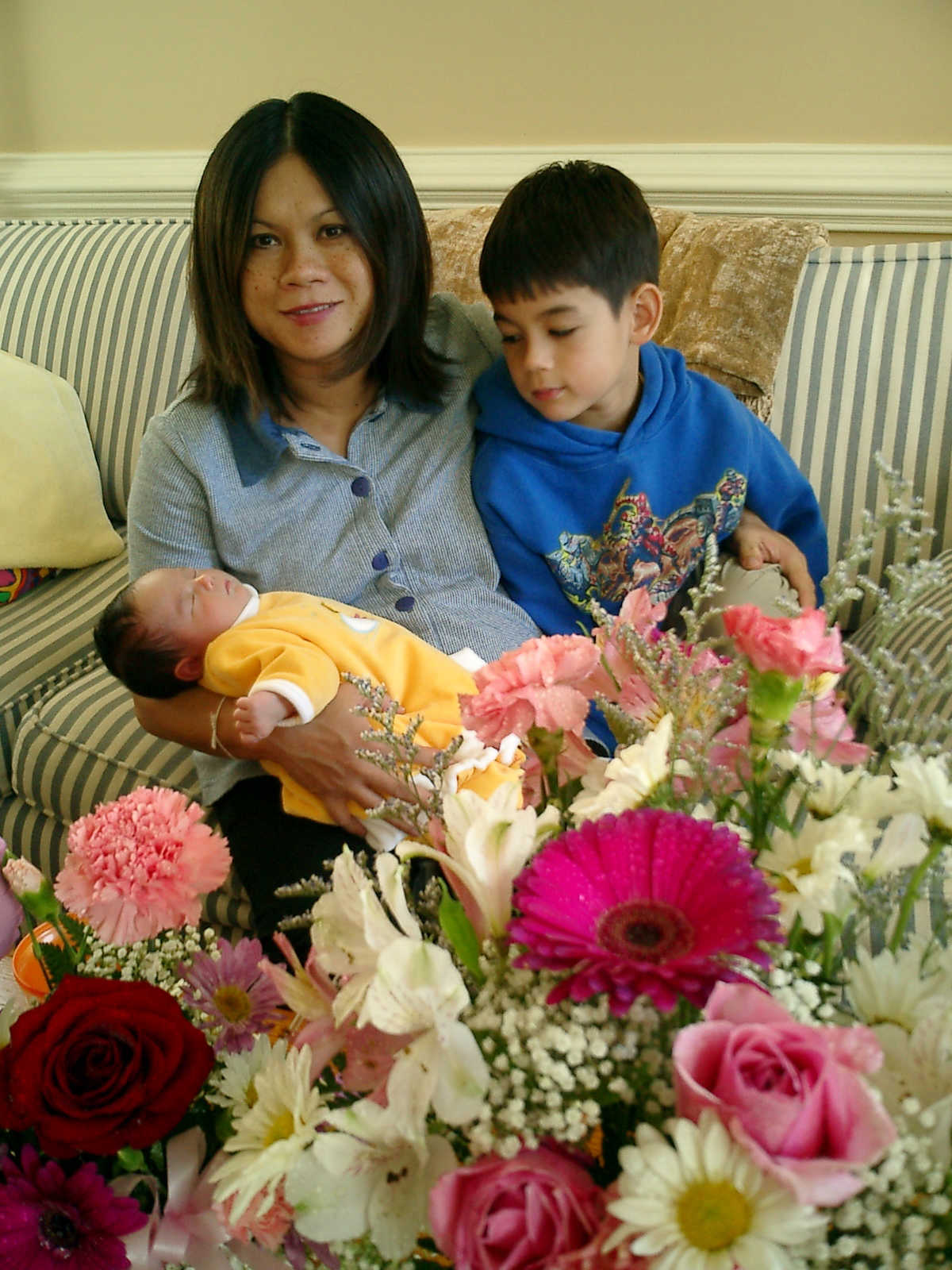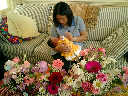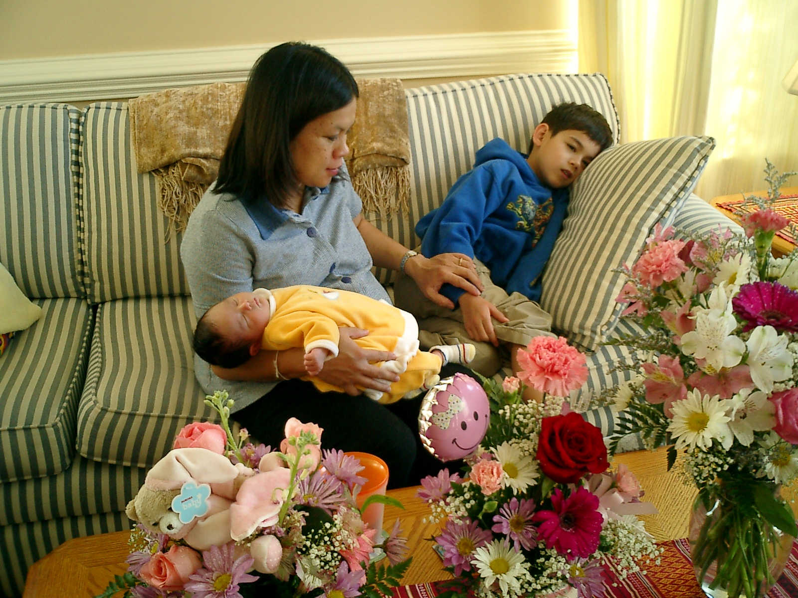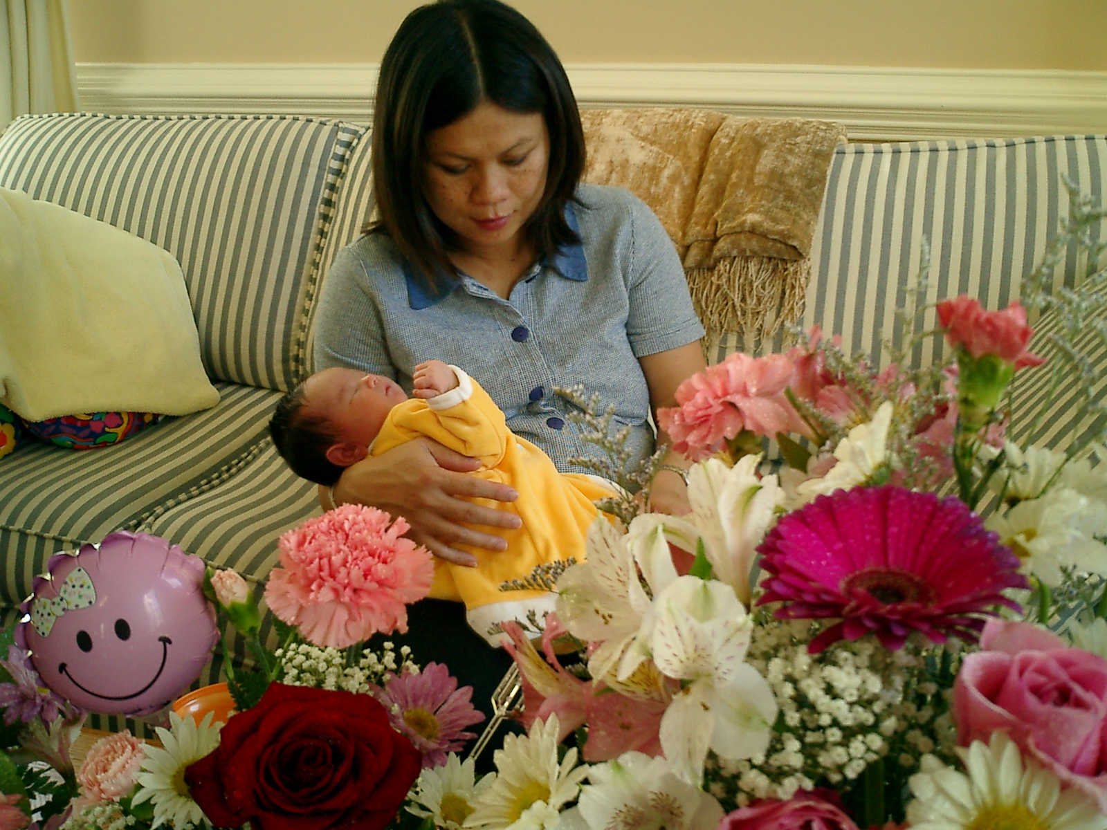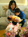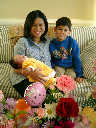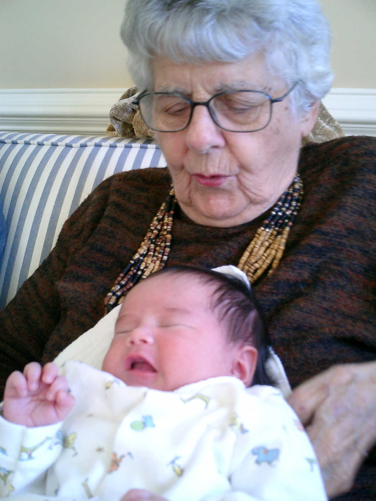 Here Nadine is a little over 2 weeks old, enjoying some sunshine and the beautiful flowers sent by friends. (Remember fellows, girls love flowers...) Later that afternoon, Grandmother Alexander stopped by to say hello to Nadine.