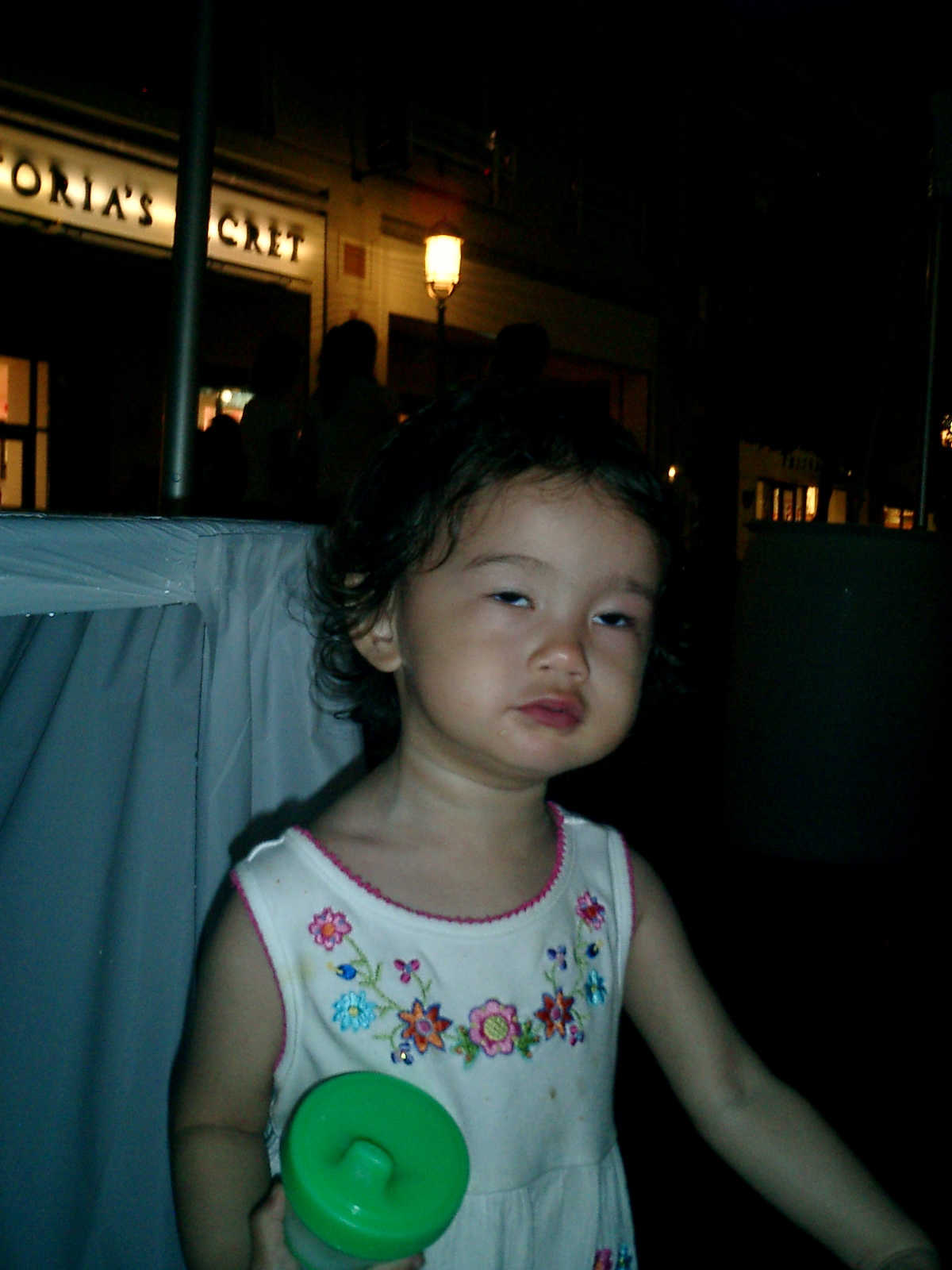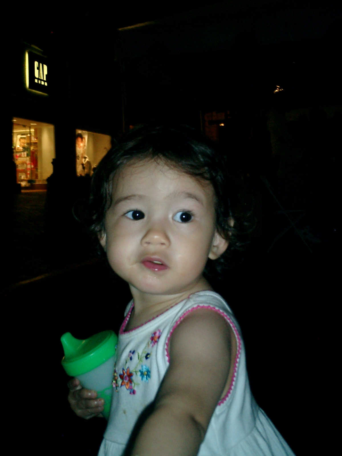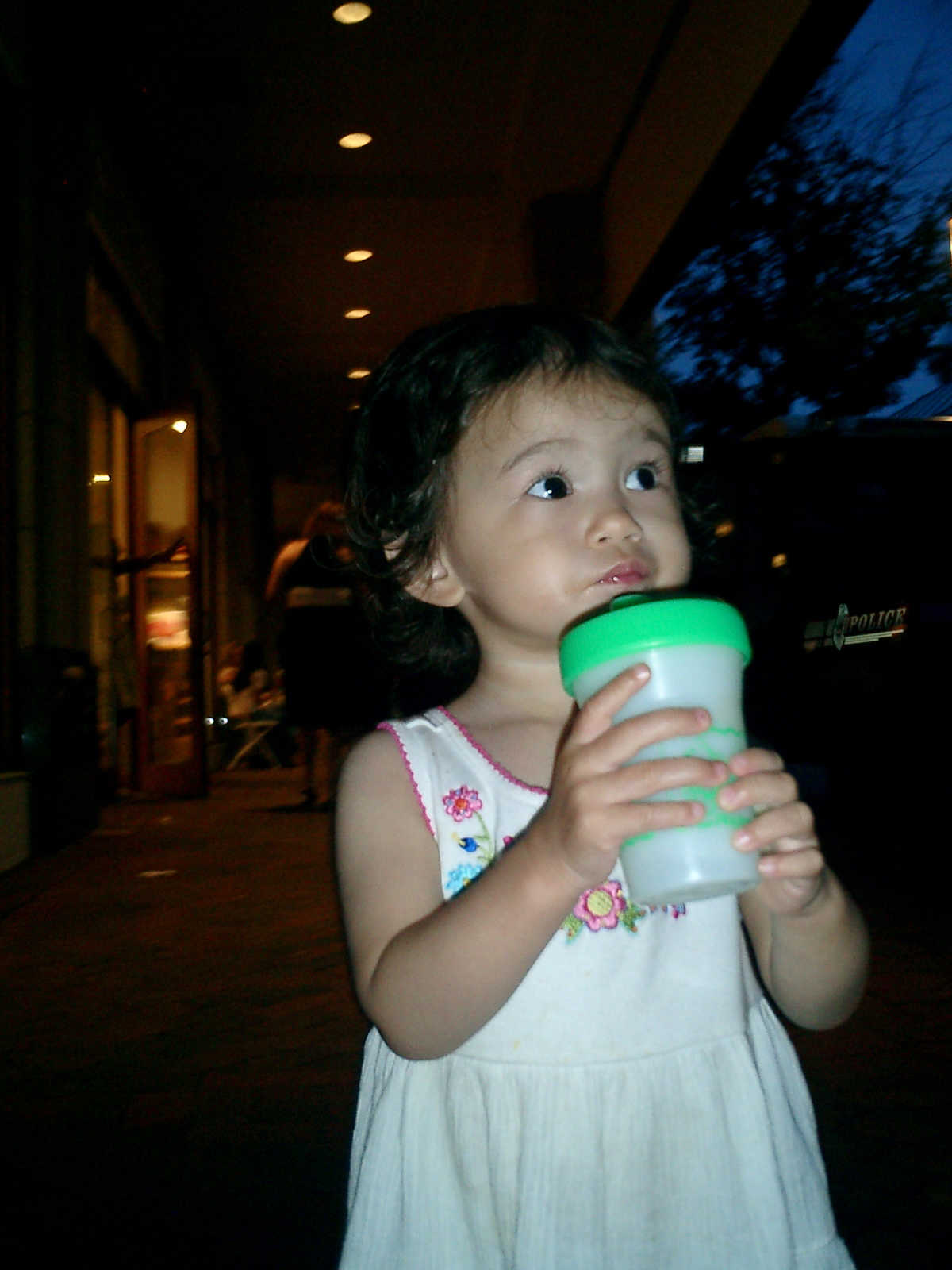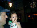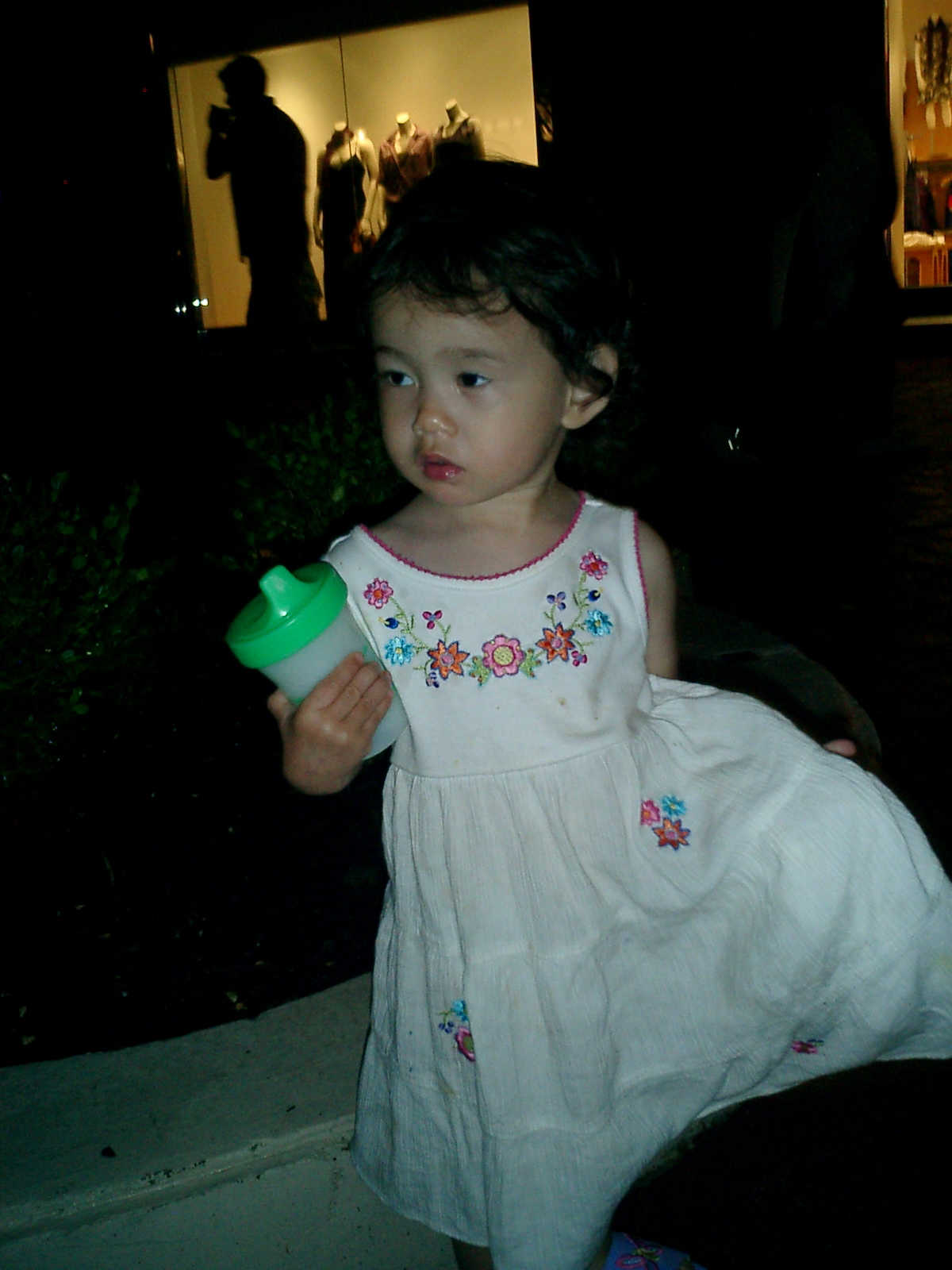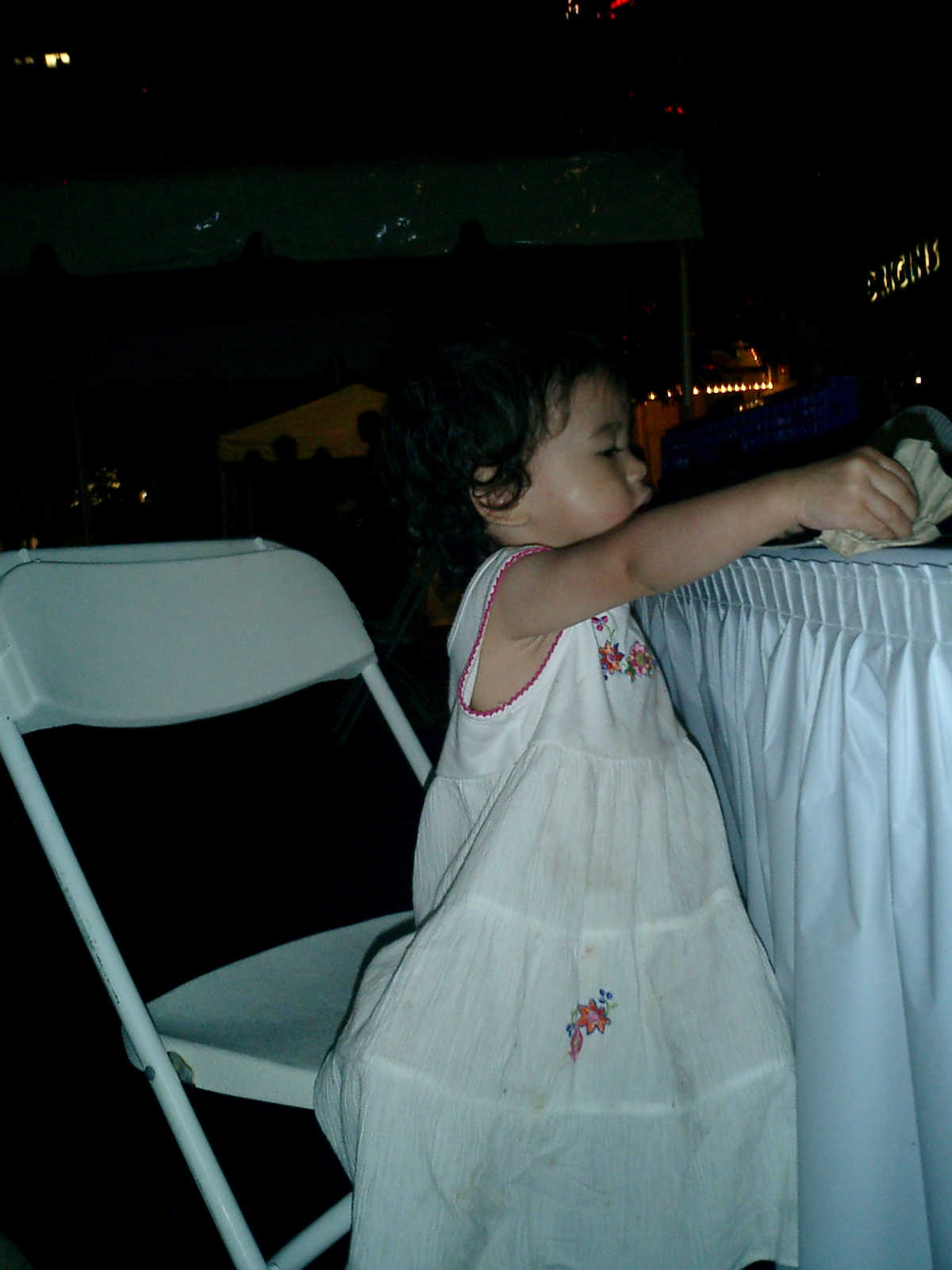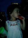 Nadine at 20 and a half months (June 14, 2008), with the whole family at the Taste of Reston outdoor festival. Nadine, is that you modeling your stylish new hat, and eating all that watermelon? (It sure is!)