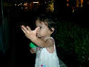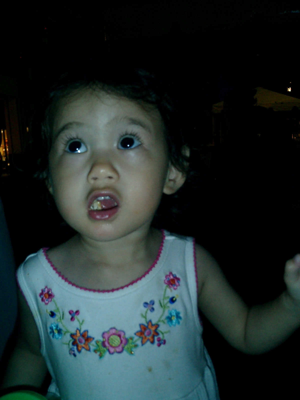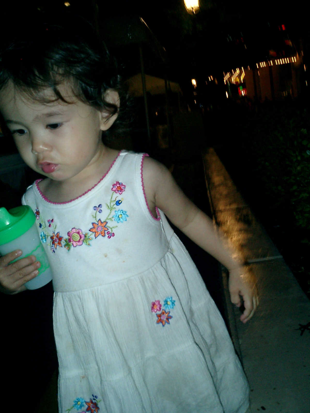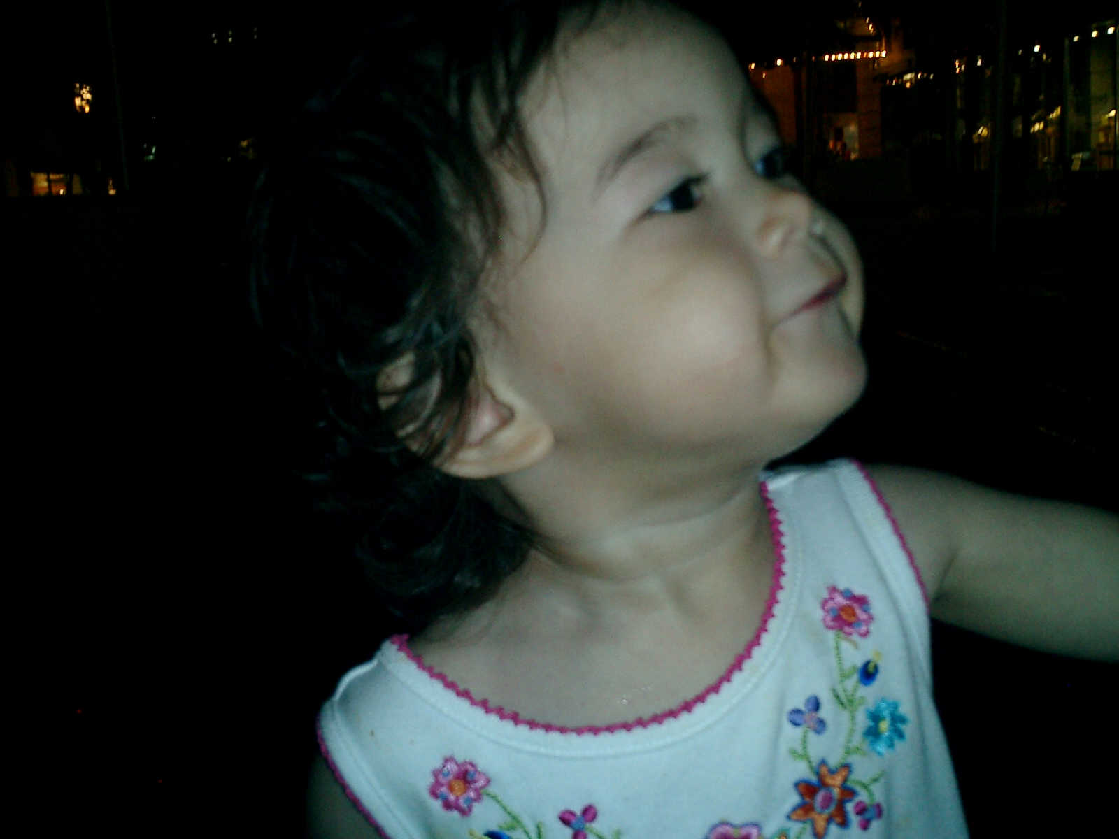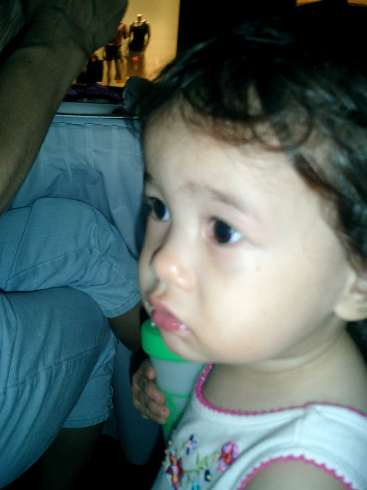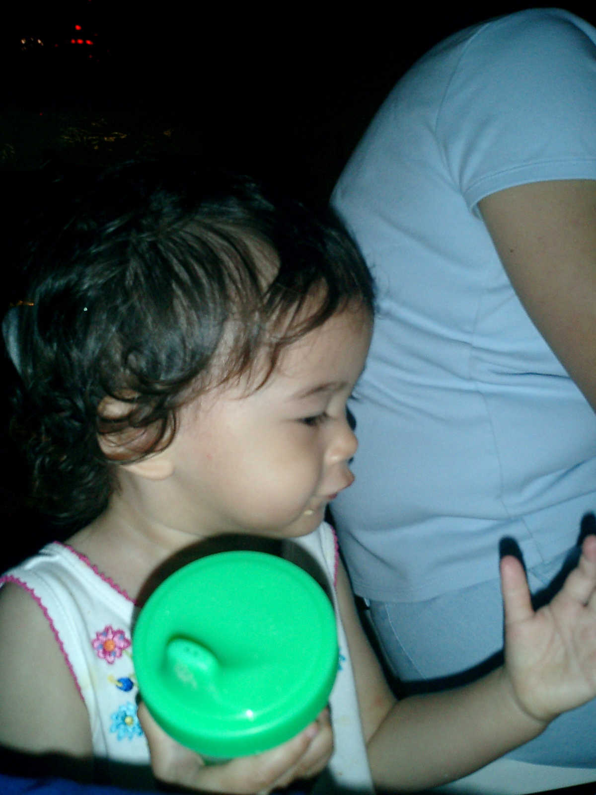 Nadine at 20 and a half months (June 14, 2008), with the whole family at the Taste of Reston outdoor festival. Nadine, is that you modeling your stylish new hat, and eating all that watermelon? (It sure is!)