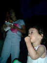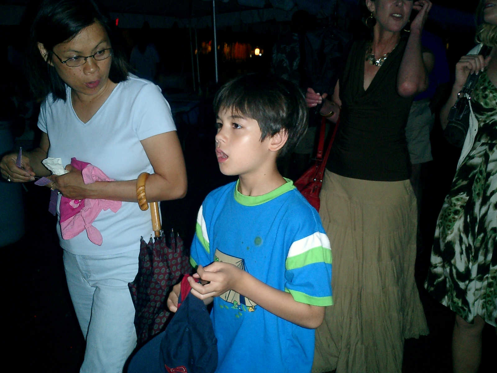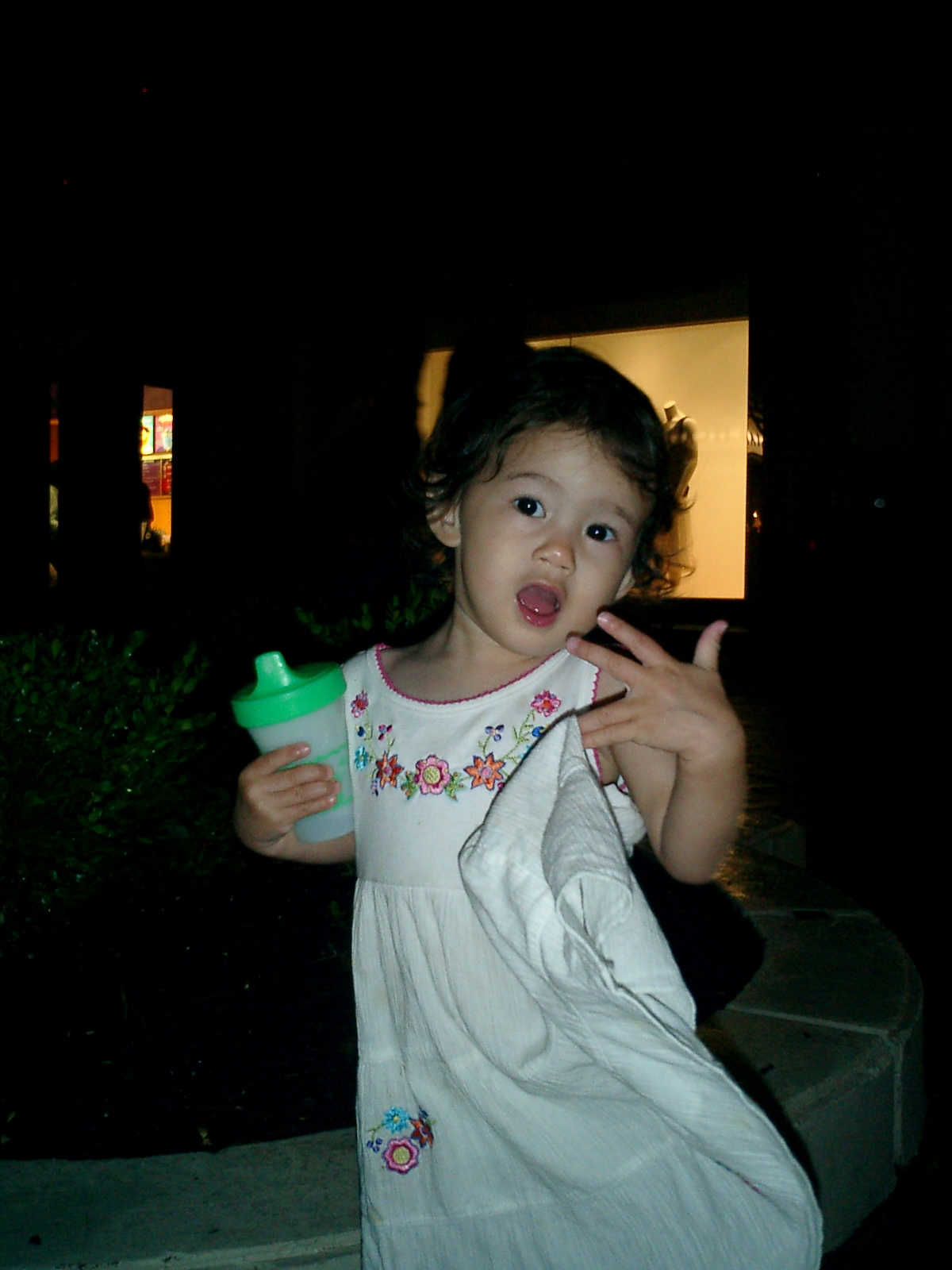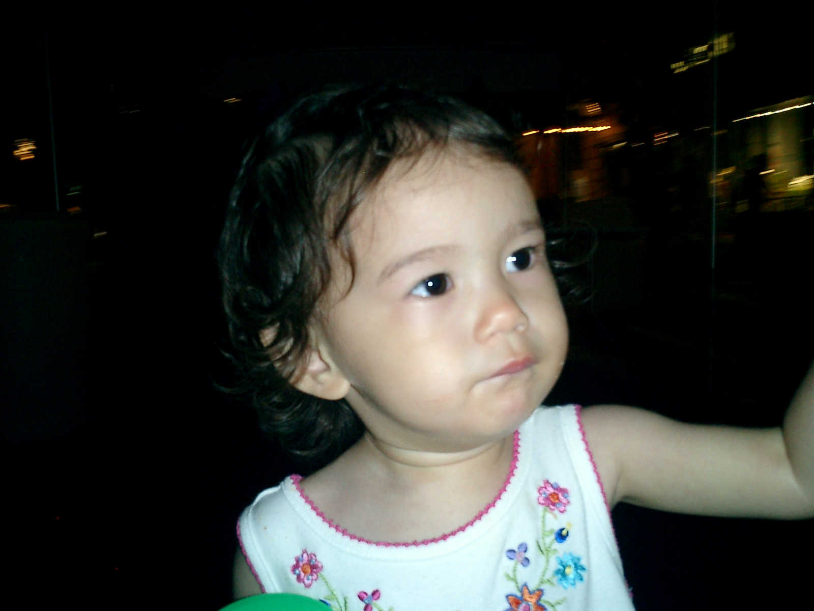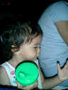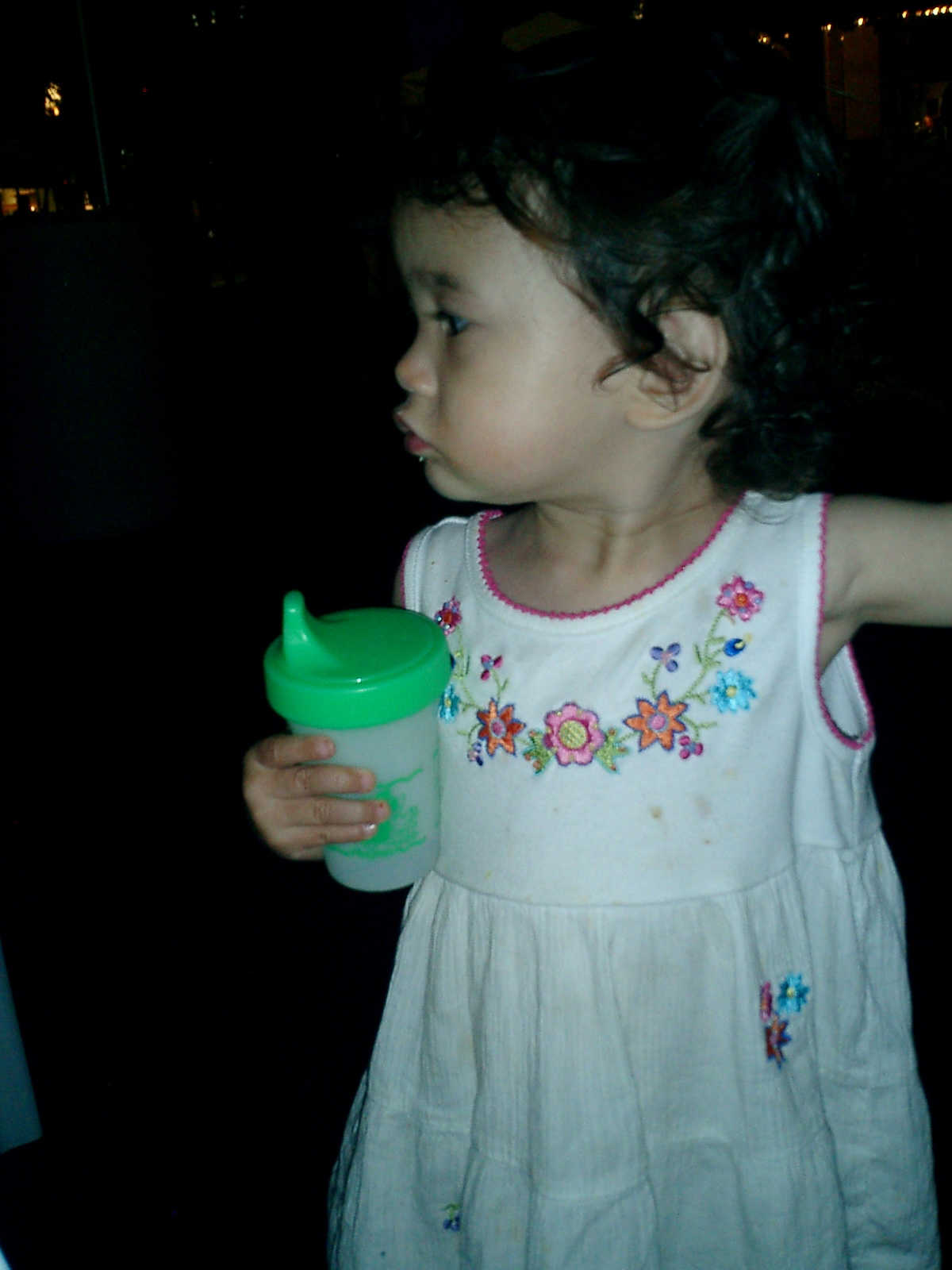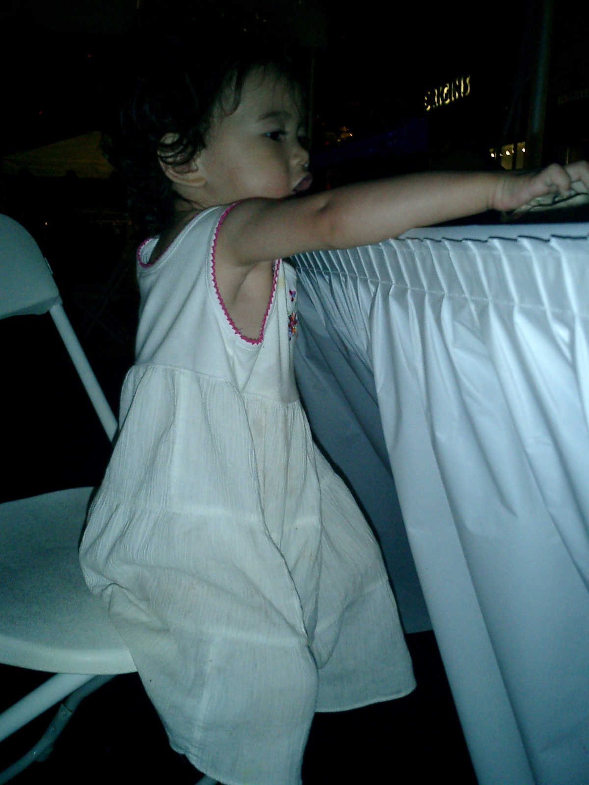 Nadine at 20 and a half months (June 14, 2008), with the whole family at the Taste of Reston outdoor festival. Nadine, is that you modeling your stylish new hat, and eating all that watermelon? (It sure is!)