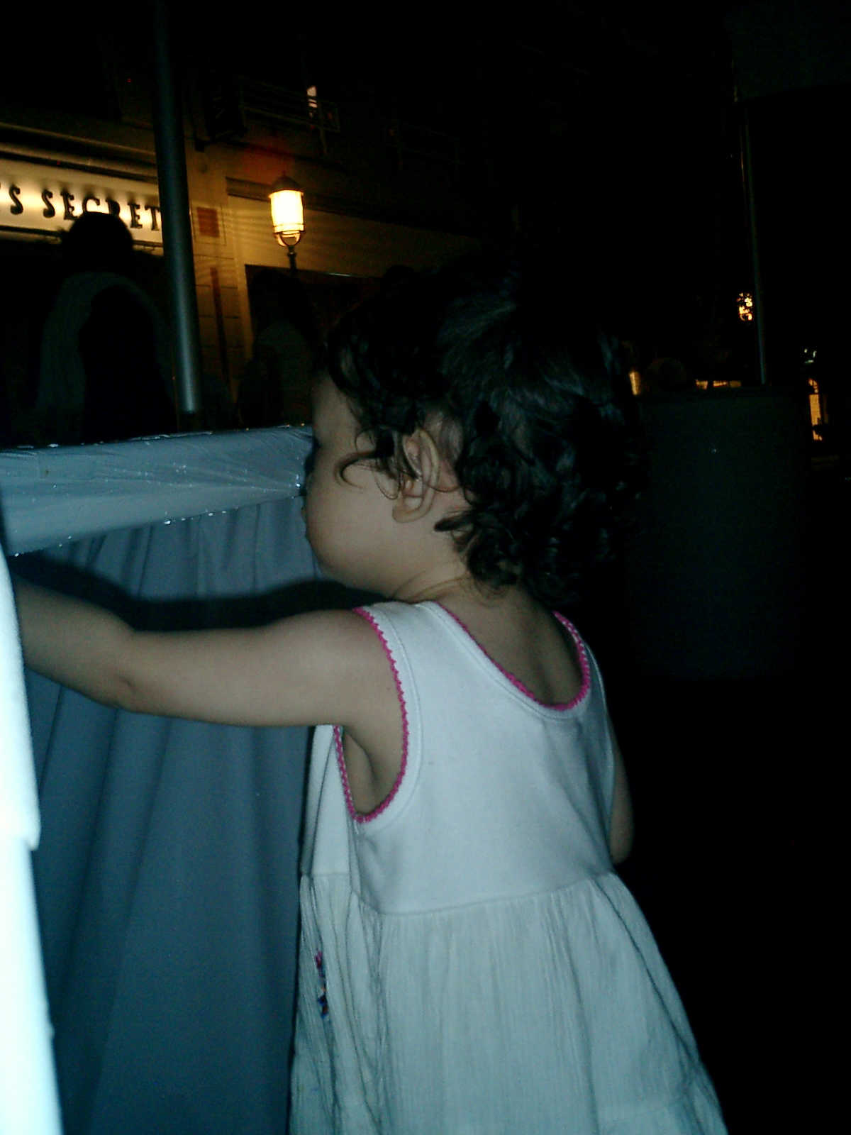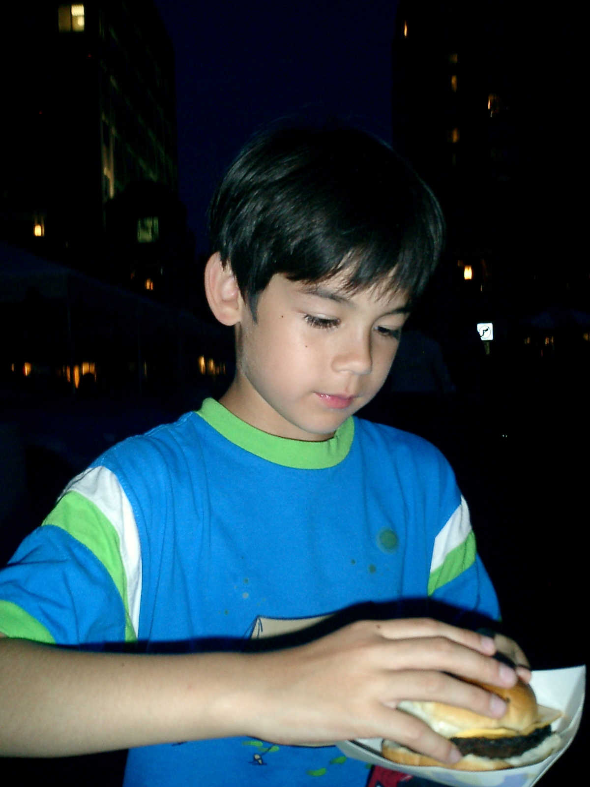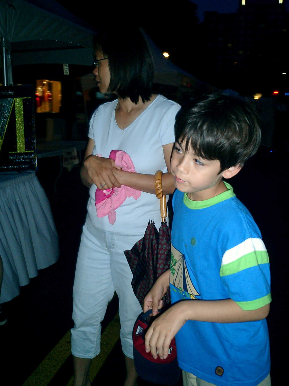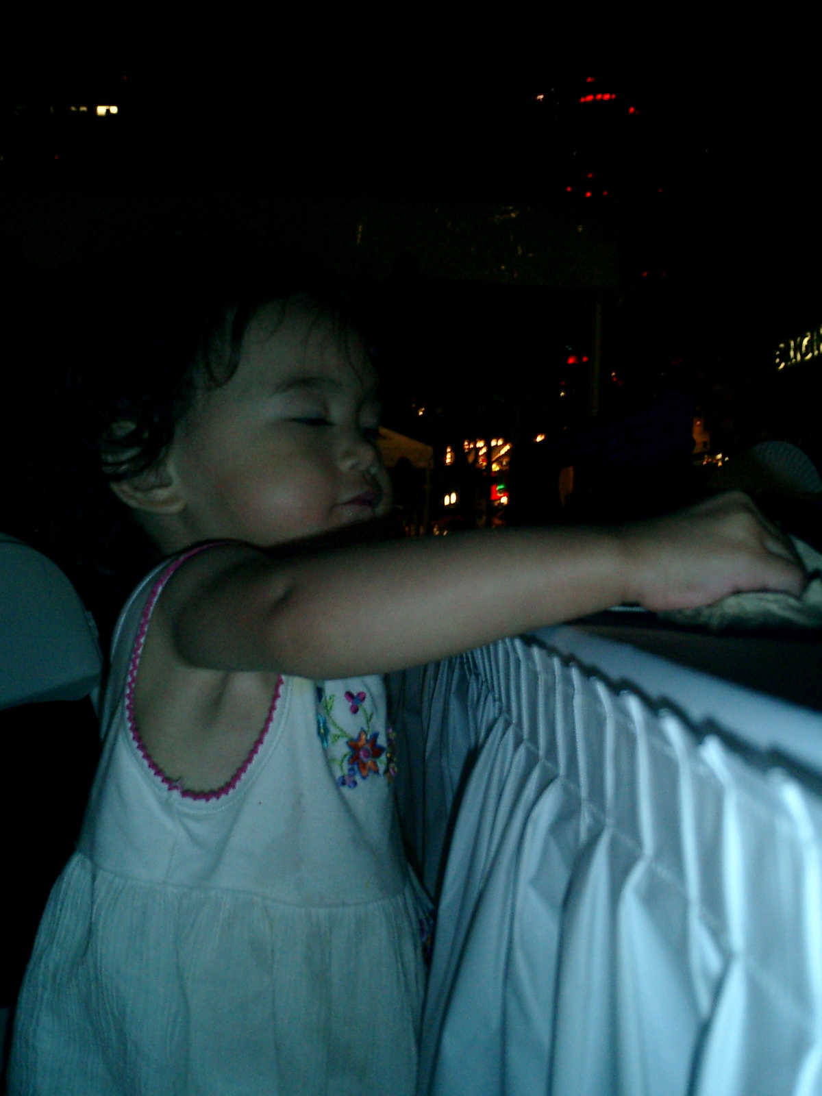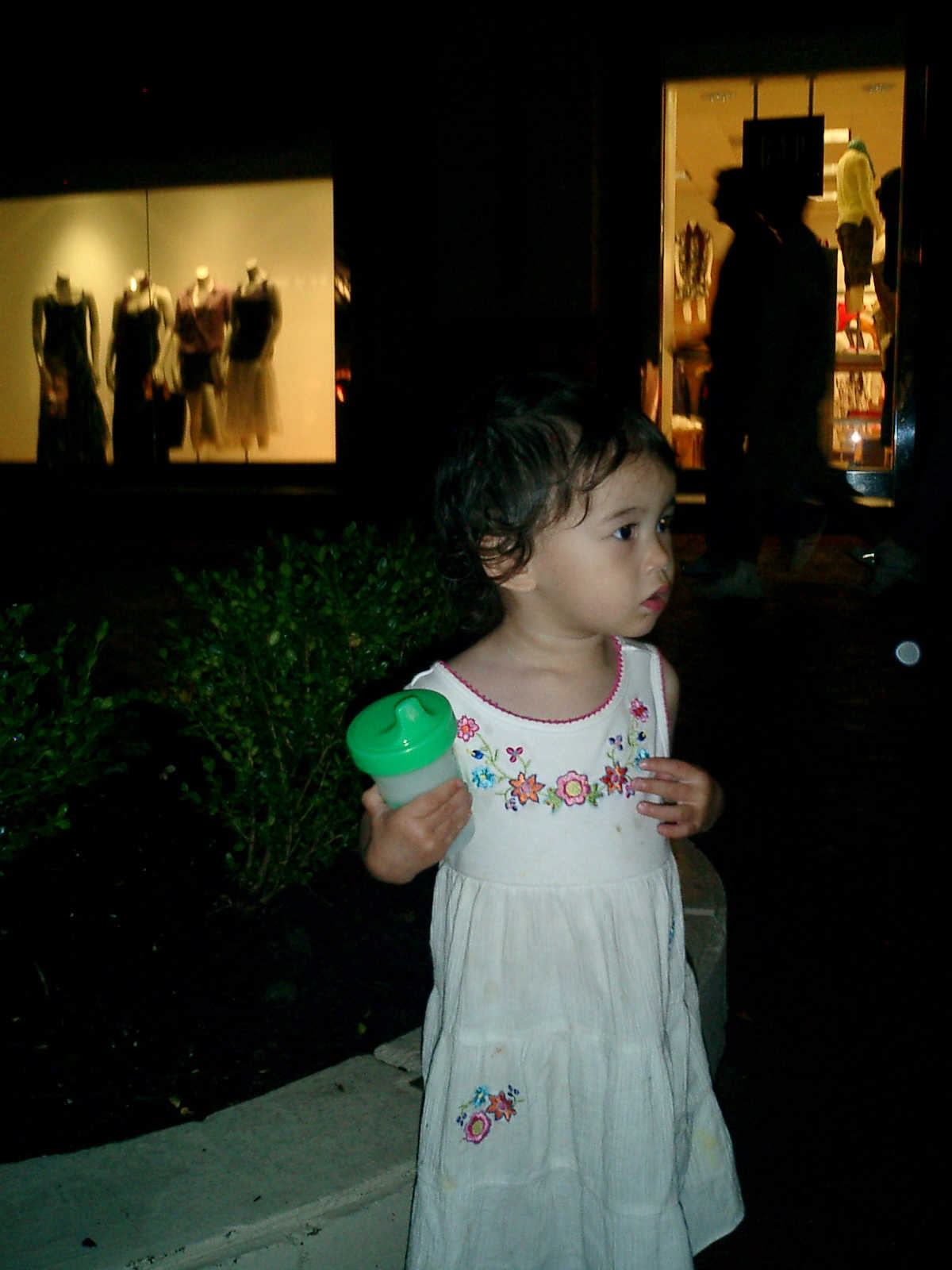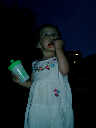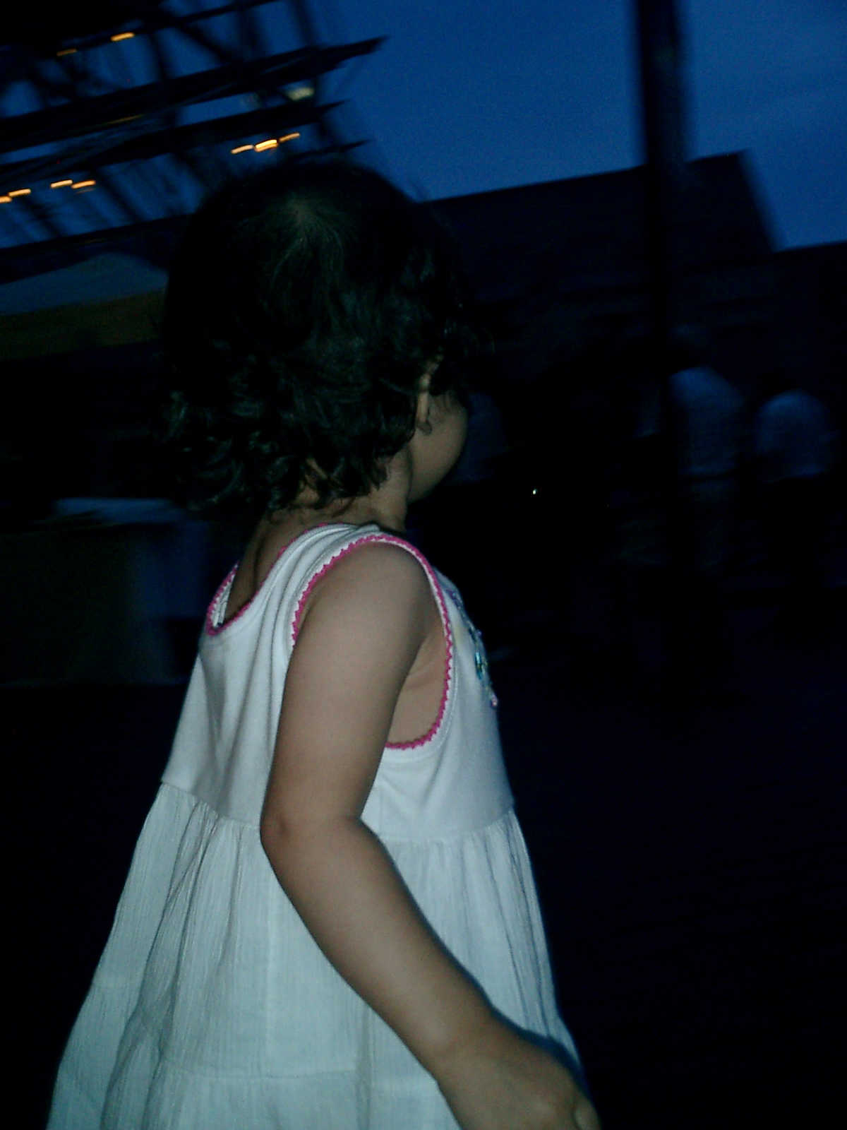 Nadine at 20 and a half months (June 14, 2008), with the whole family at the Taste of Reston outdoor festival. Nadine, is that you modeling your stylish new hat, and eating all that watermelon? (It sure is!)