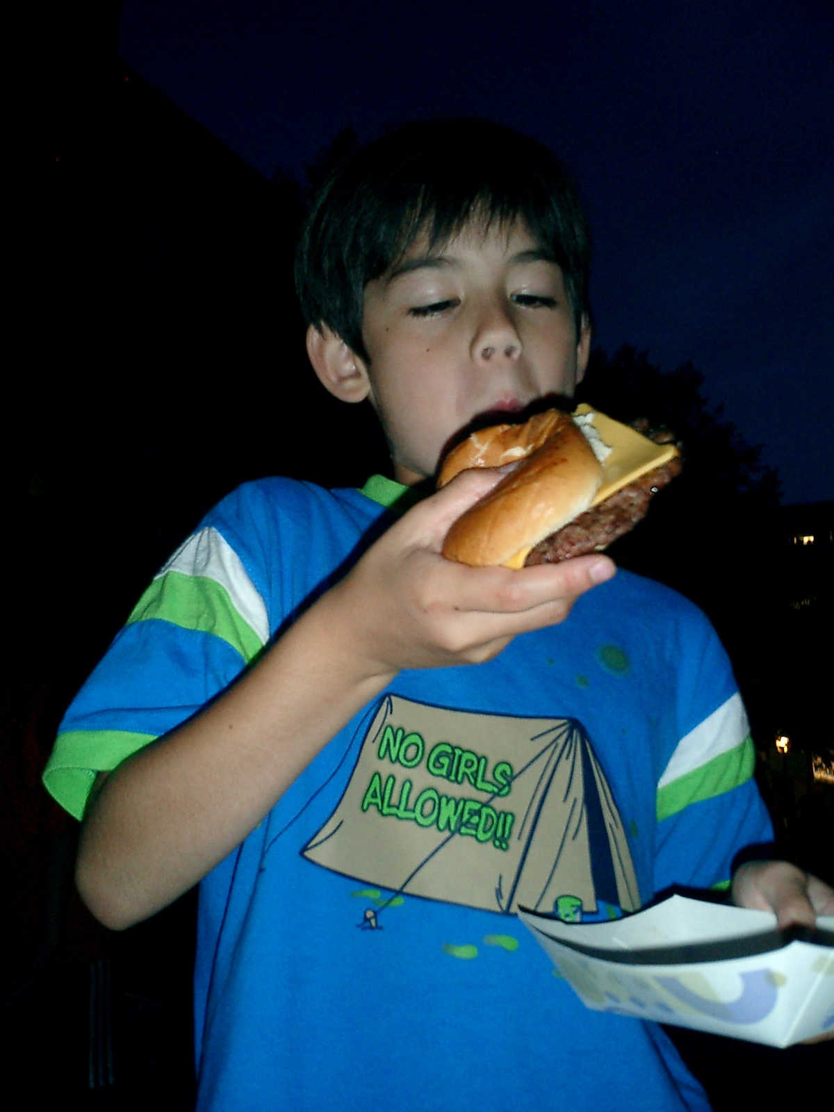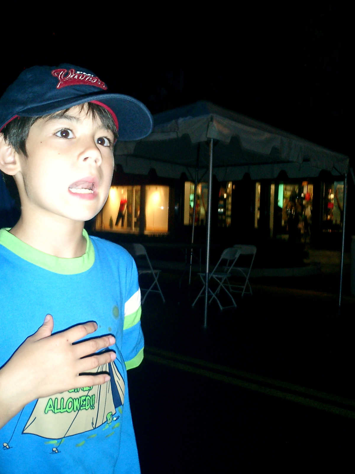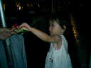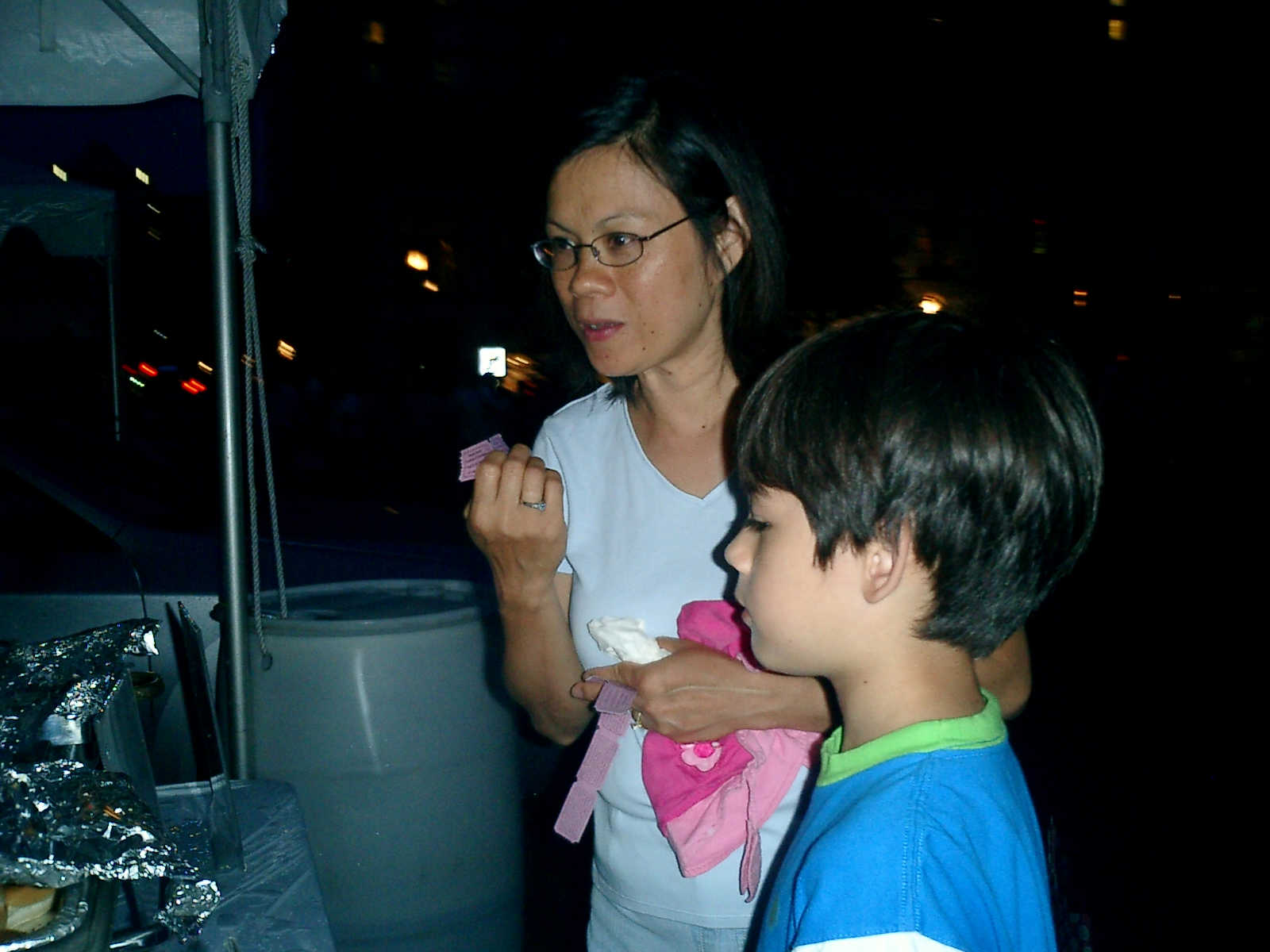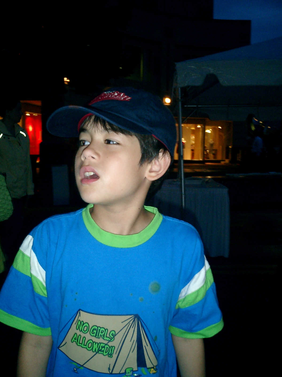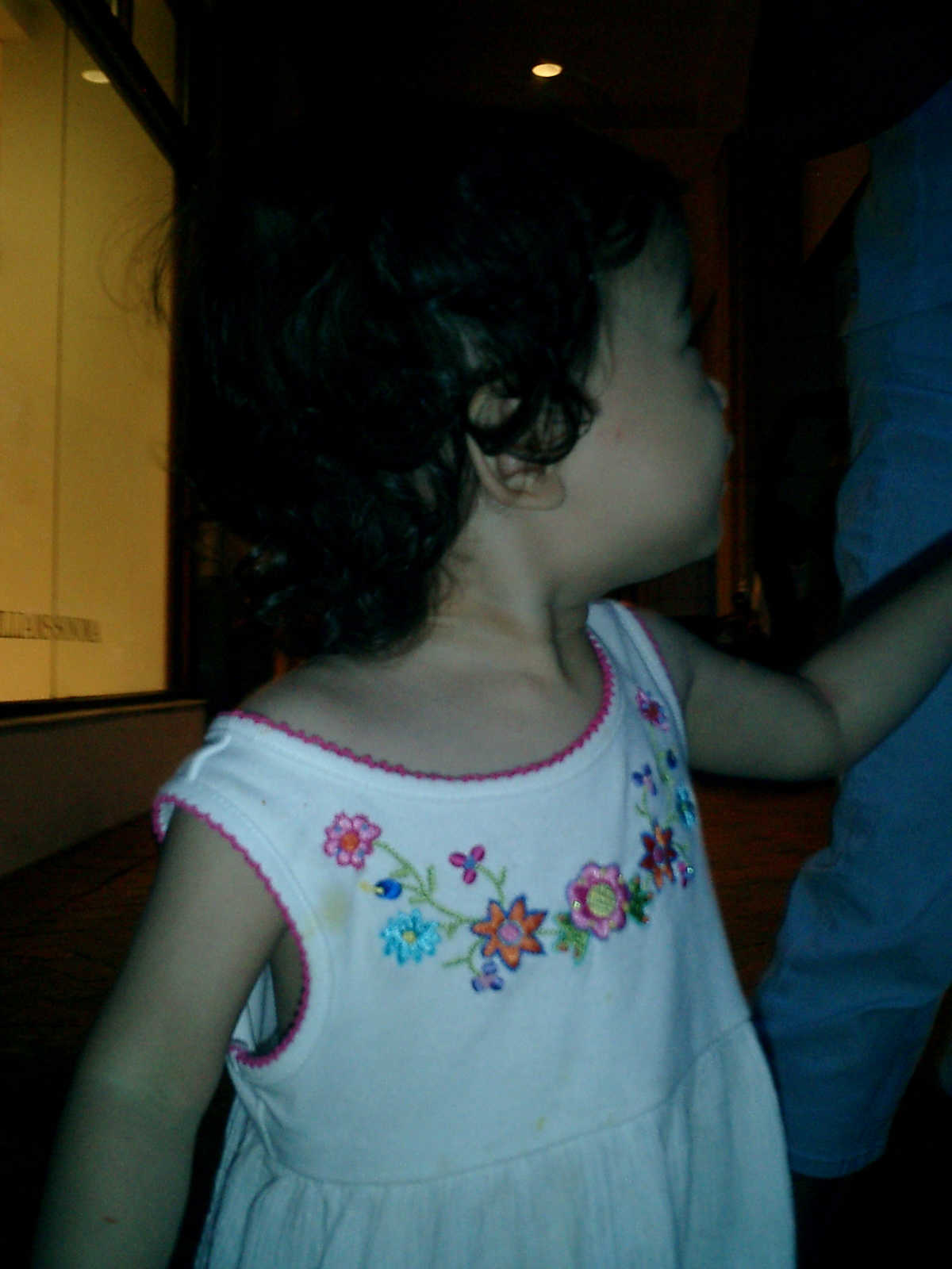 Nadine at 20 and a half months (June 14, 2008), with the whole family at the Taste of Reston outdoor festival. Nadine, is that you modeling your stylish new hat, and eating all that watermelon? (It sure is!)