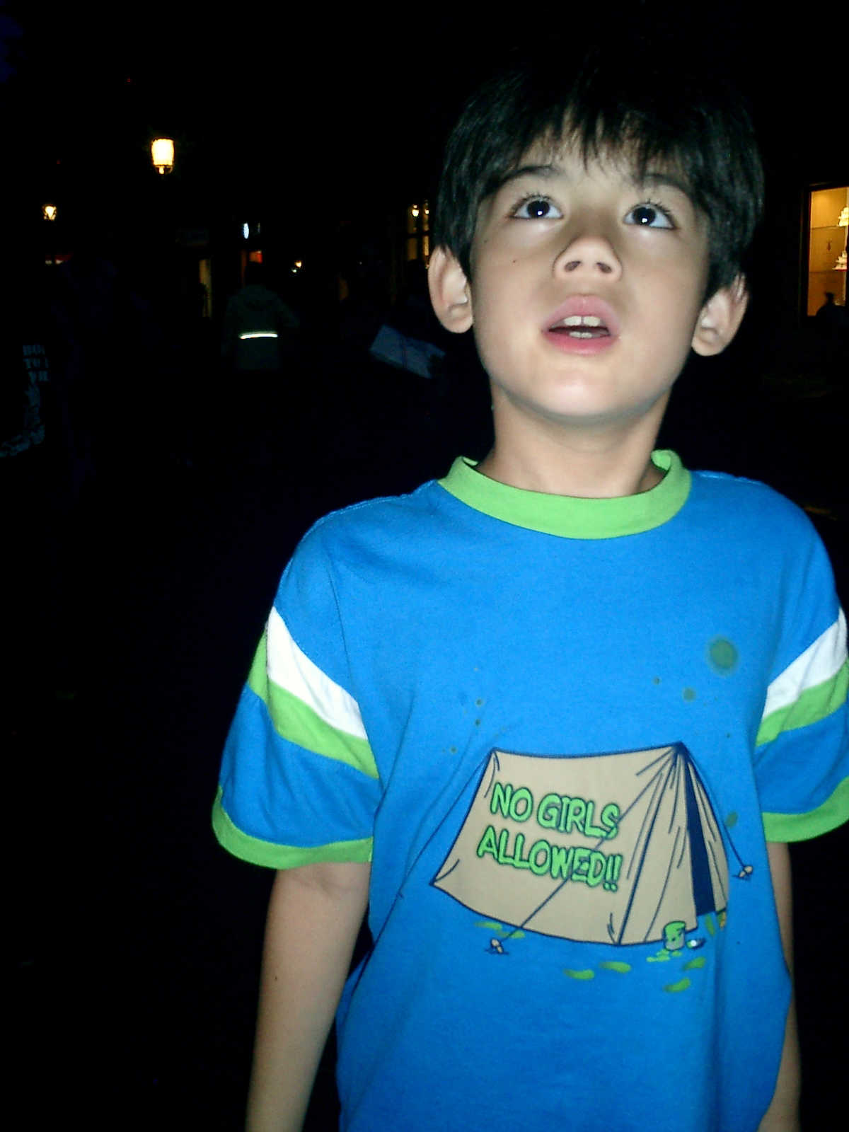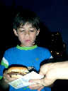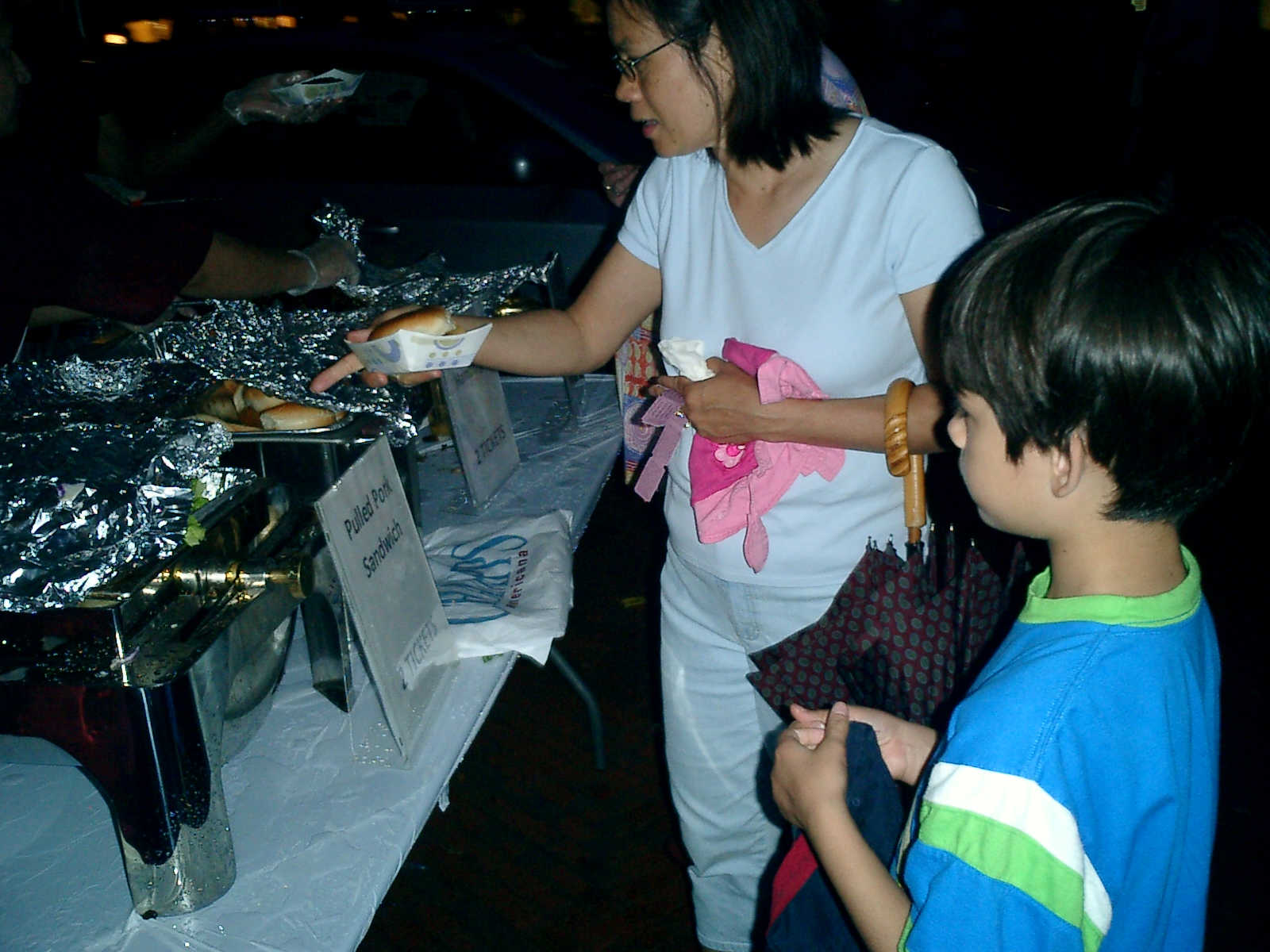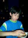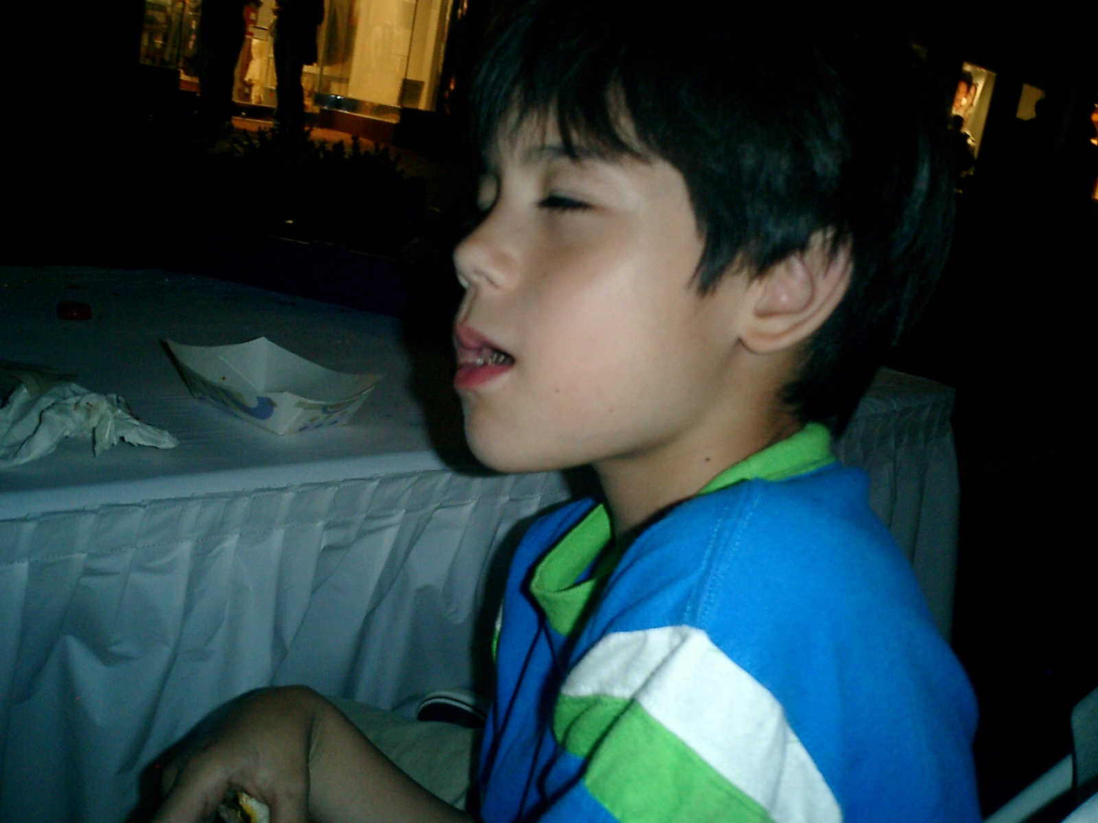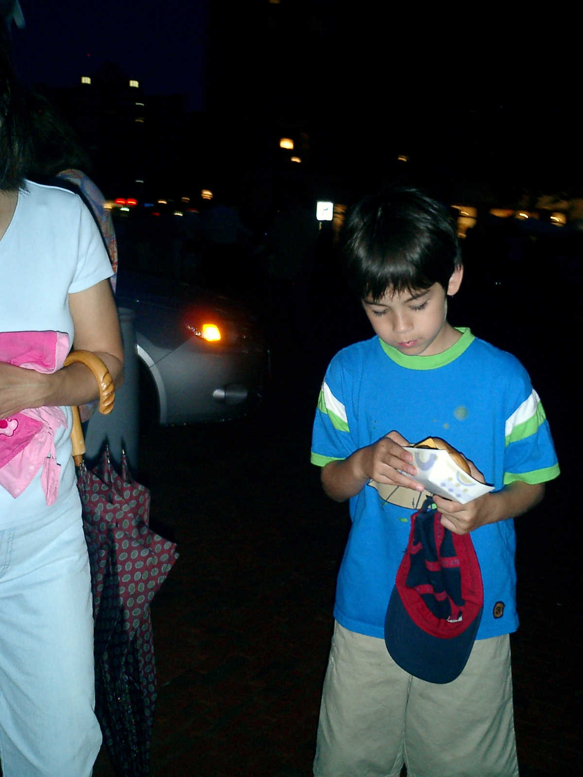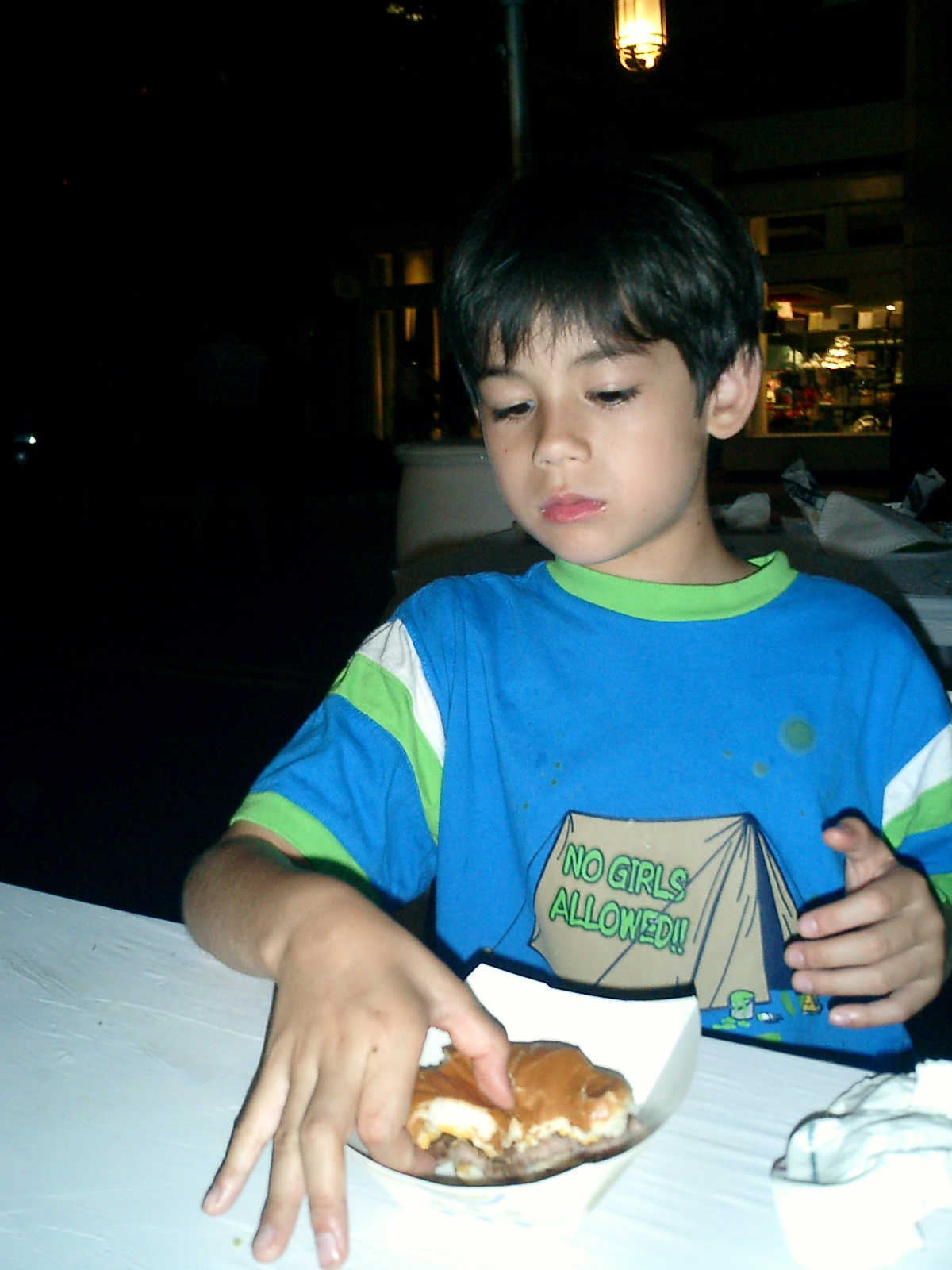 Nadine at 20 and a half months (June 14, 2008), with the whole family at the Taste of Reston outdoor festival. Nadine, is that you modeling your stylish new hat, and eating all that watermelon? (It sure is!)