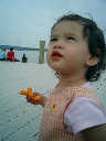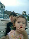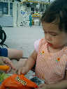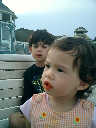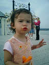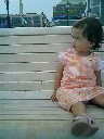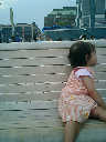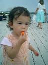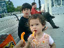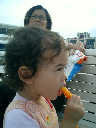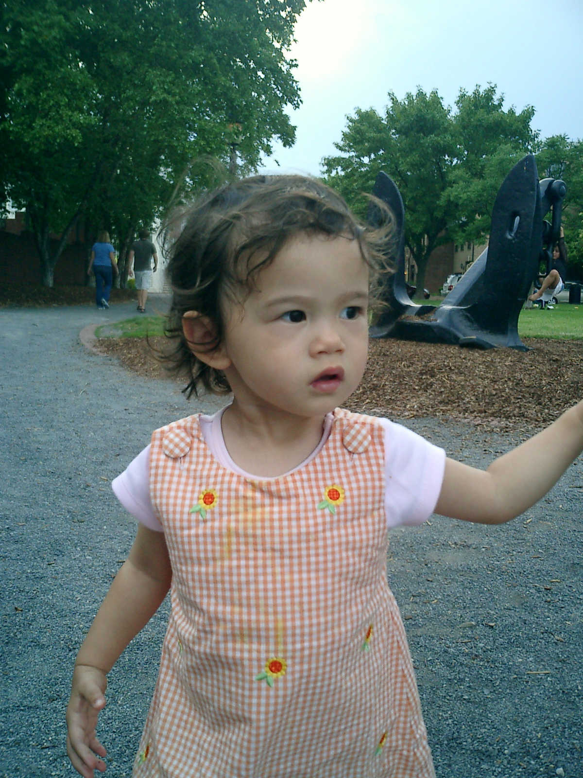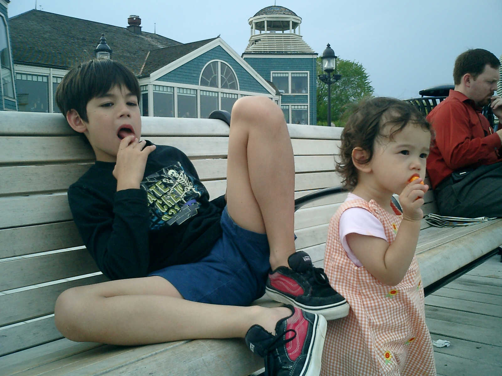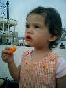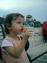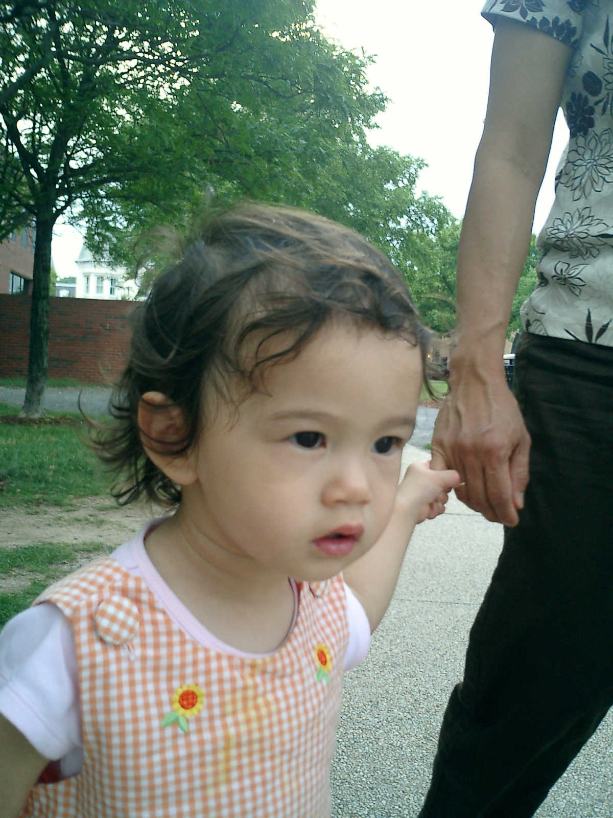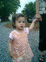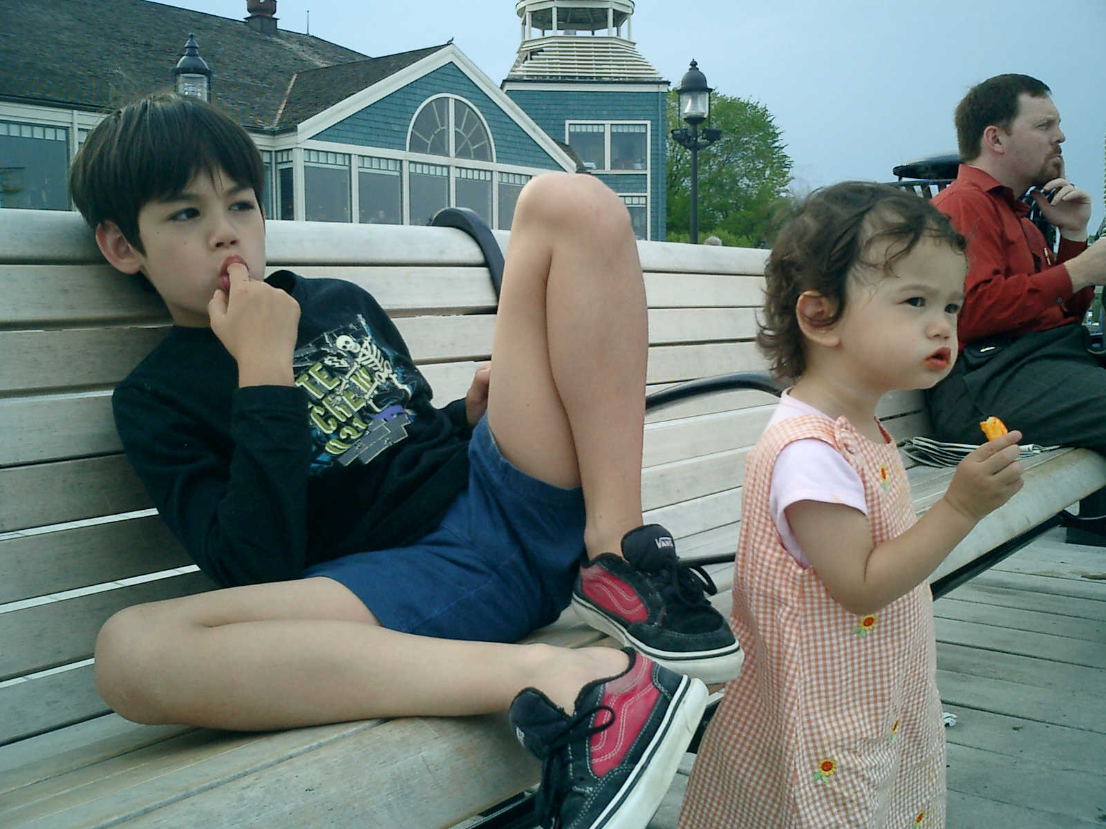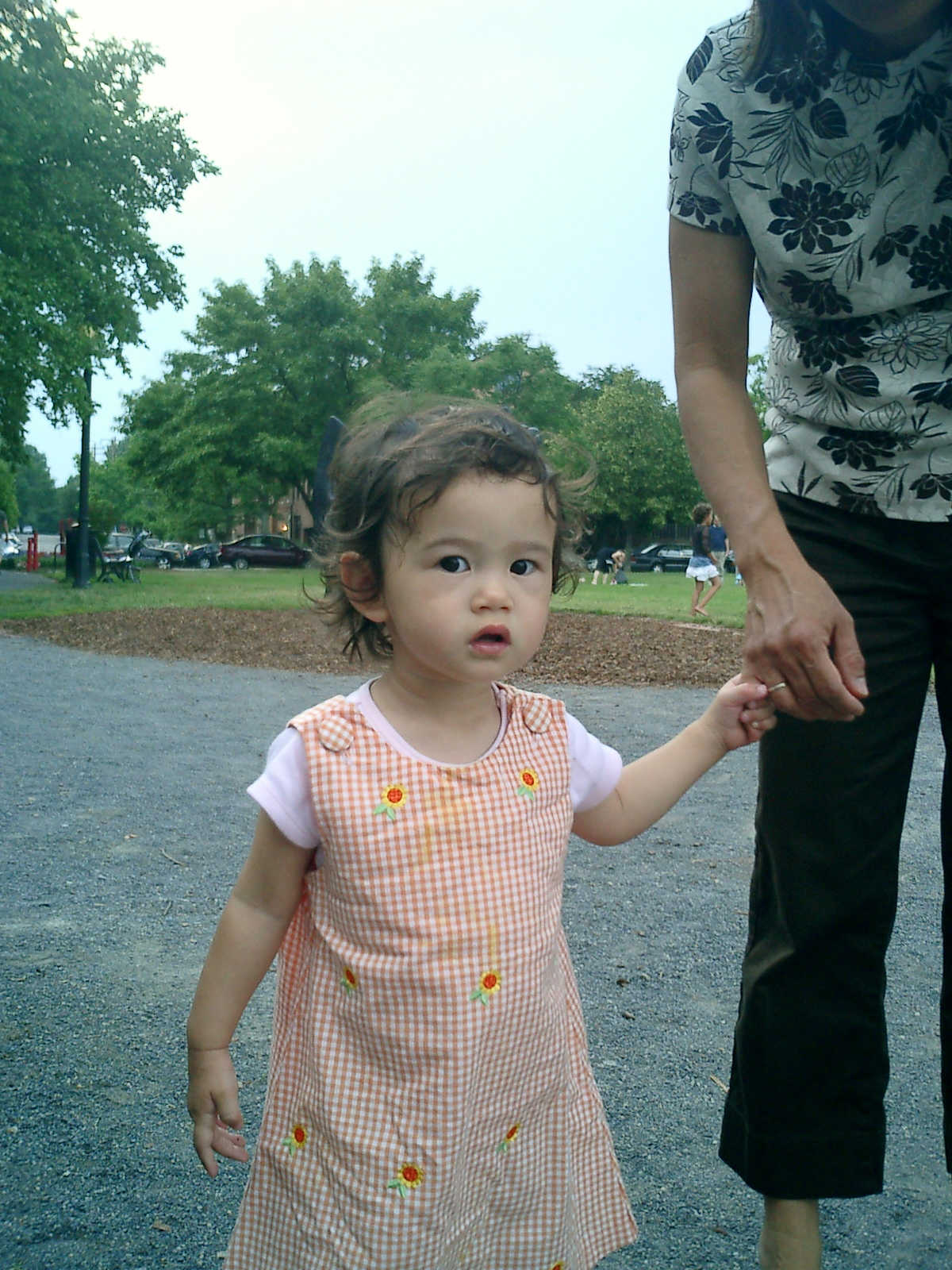 Nadine at 19 months (June 22, 2008), taking a stroll along the Old Town Alexandria Waterfront. Nadine gets hungry and has a quick snack with some cheese doodles. (Good, eh?)