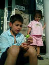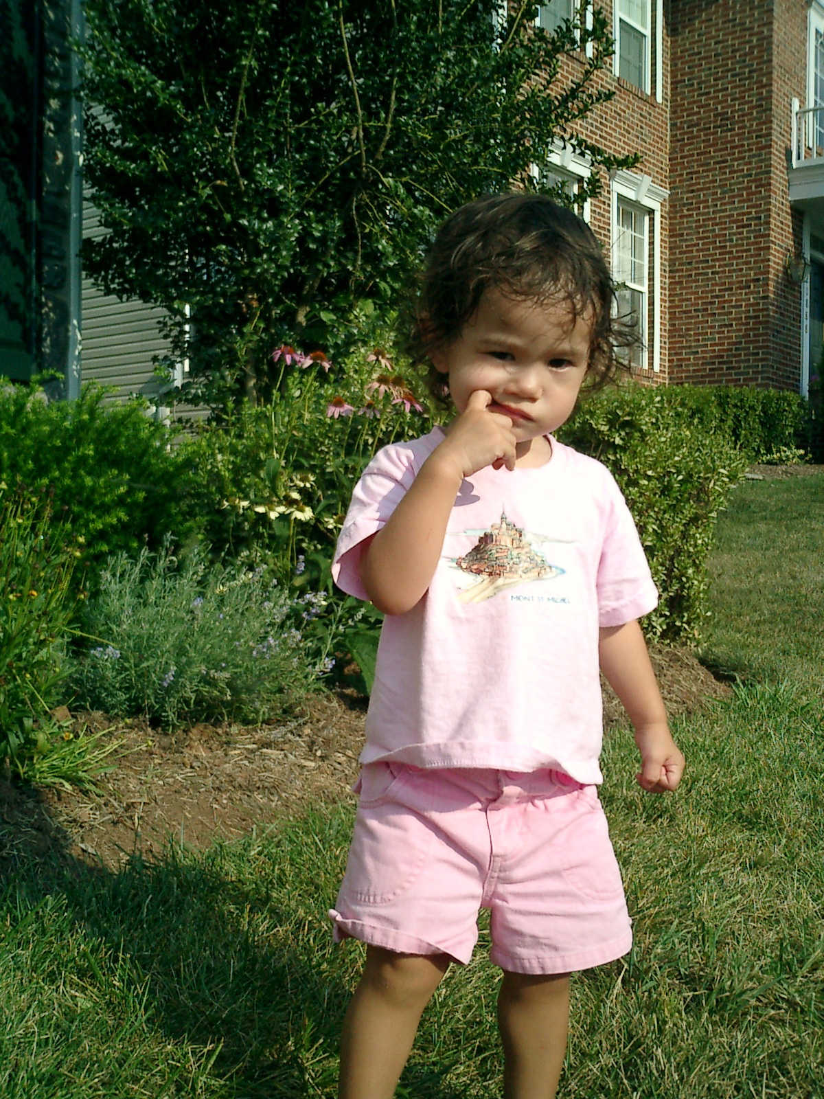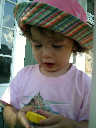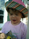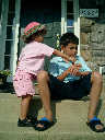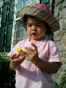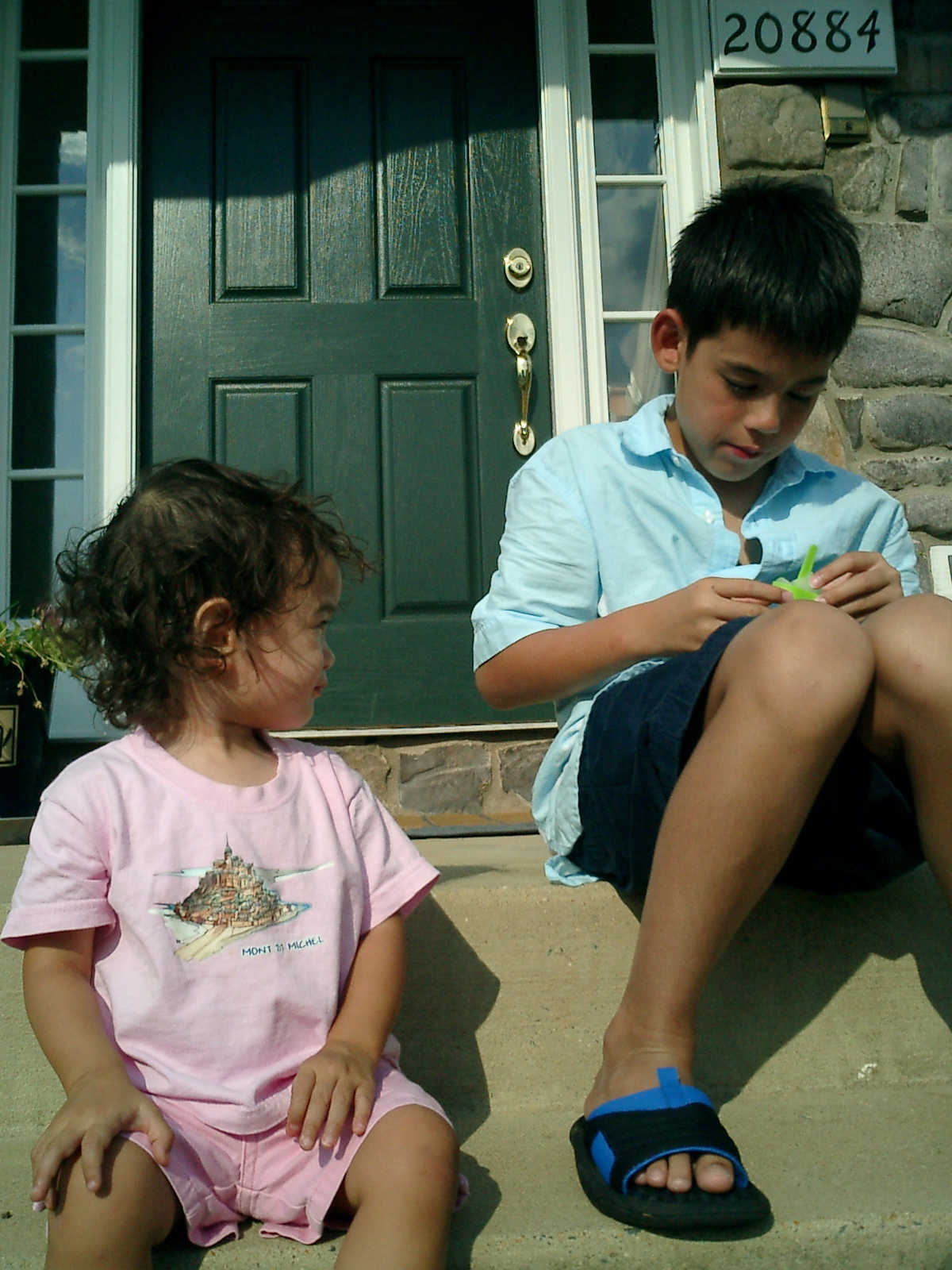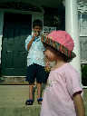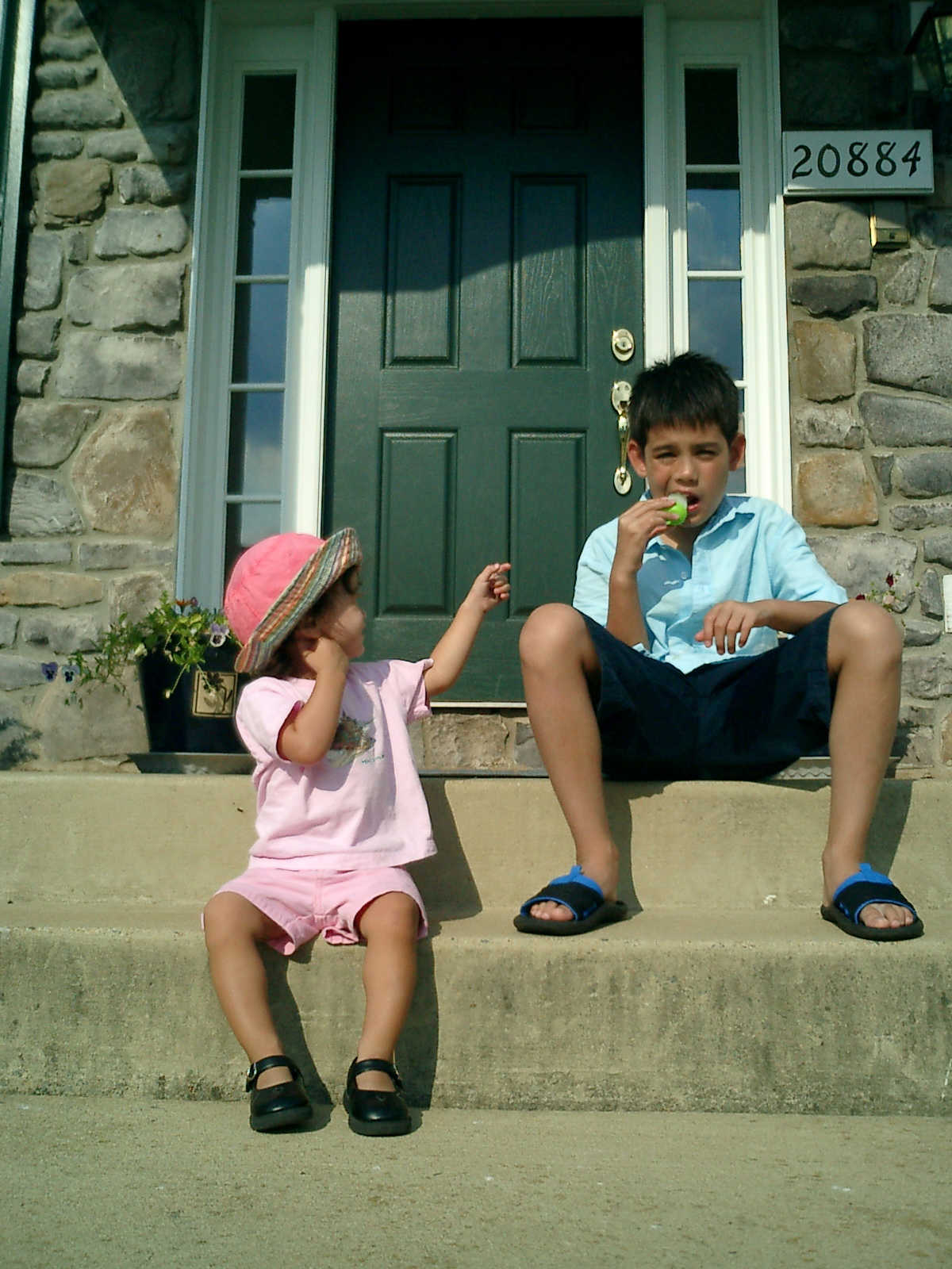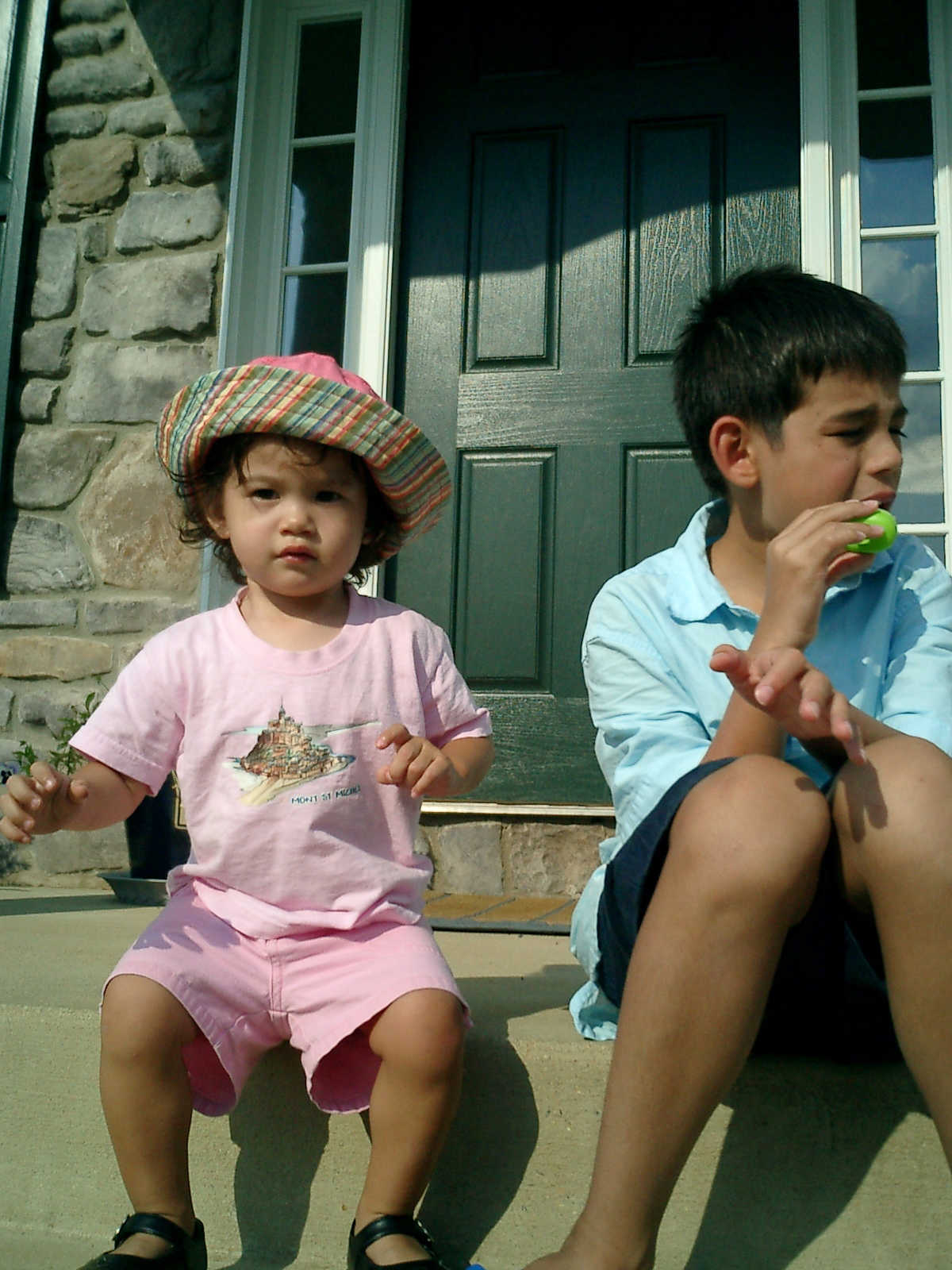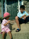Nadine at 20 months (August 6, 2008), taking a late-afternoon break on the front stoop. It sure was hot this summer, wasn't it Nadine. (Glad you had your sun hats!)