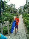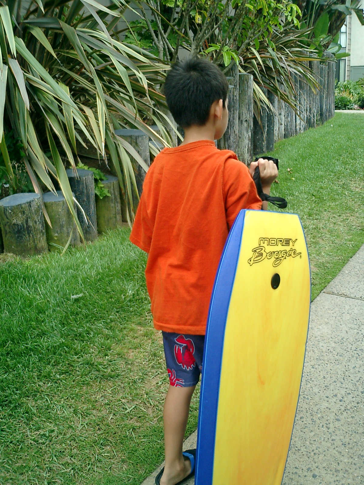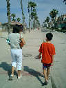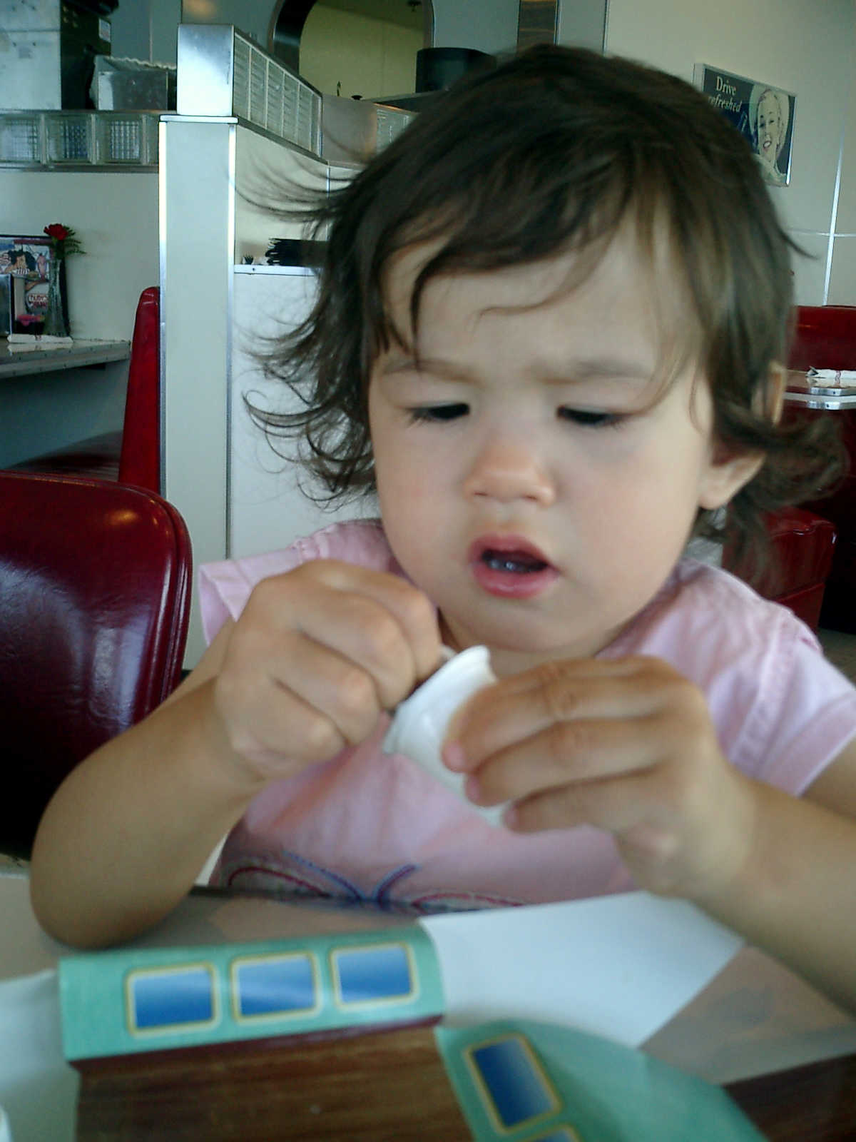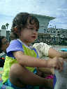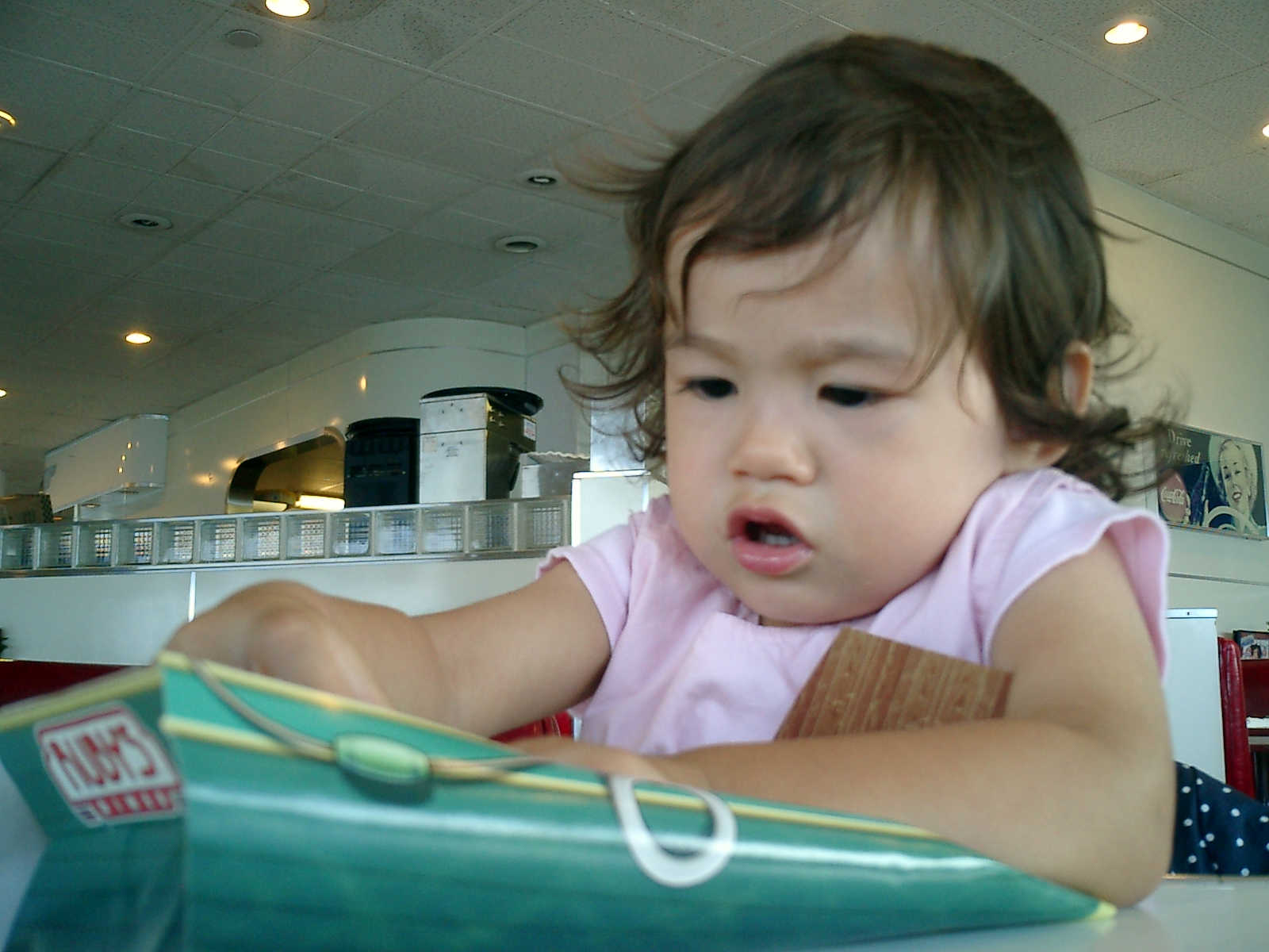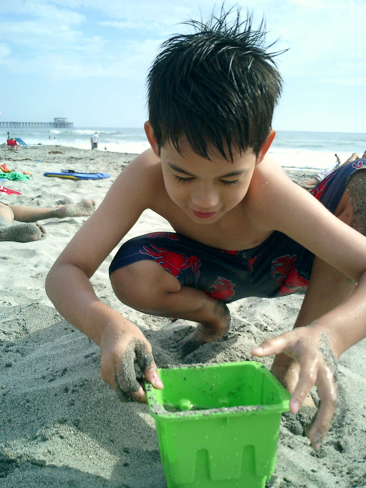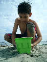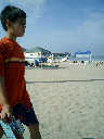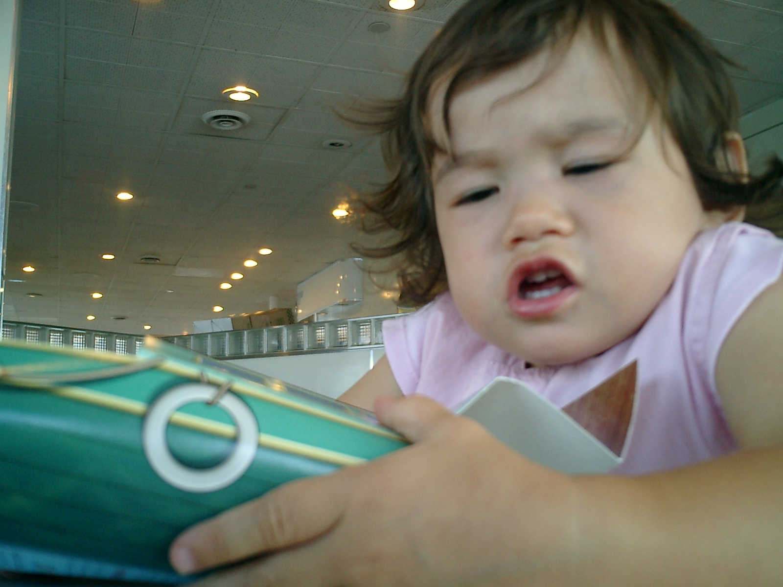 | Nadine at 20 and a half months, (Aug 13, 2008), on day 2 of our San Diego vacation: Morning walk to Oceanside pier for breakfast at the restaurant at the end of the half-mile pier, and the down to the beach with the whole family for boogie-board surfing and making sand castles. |