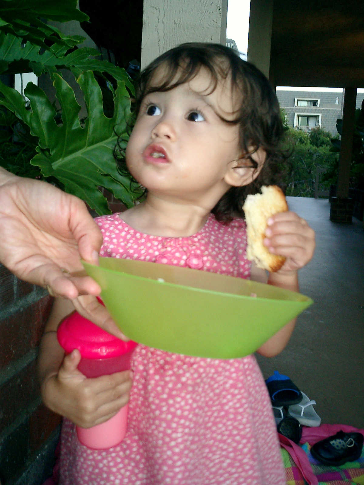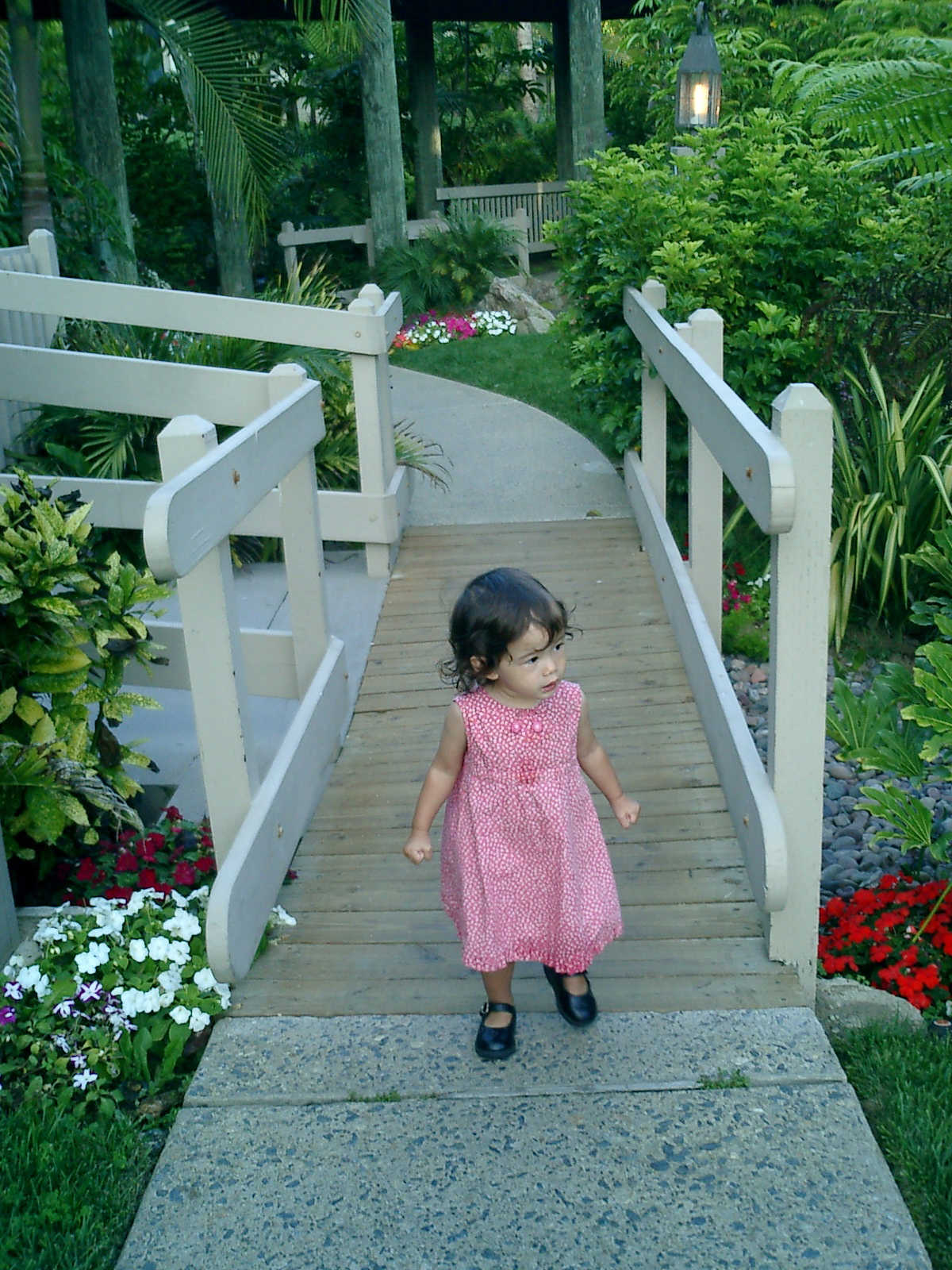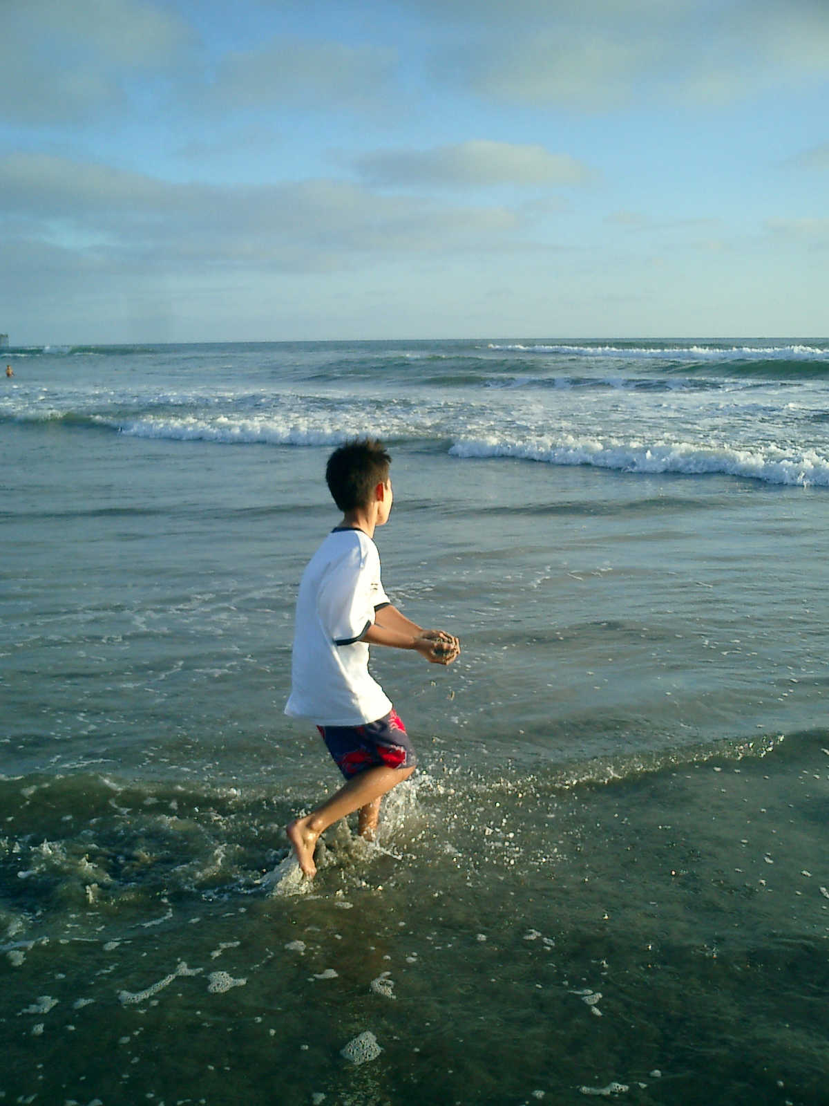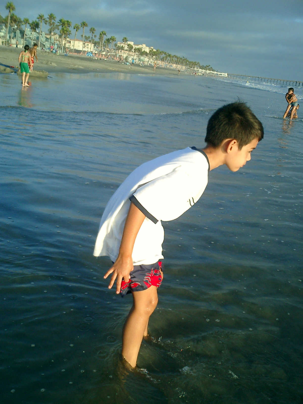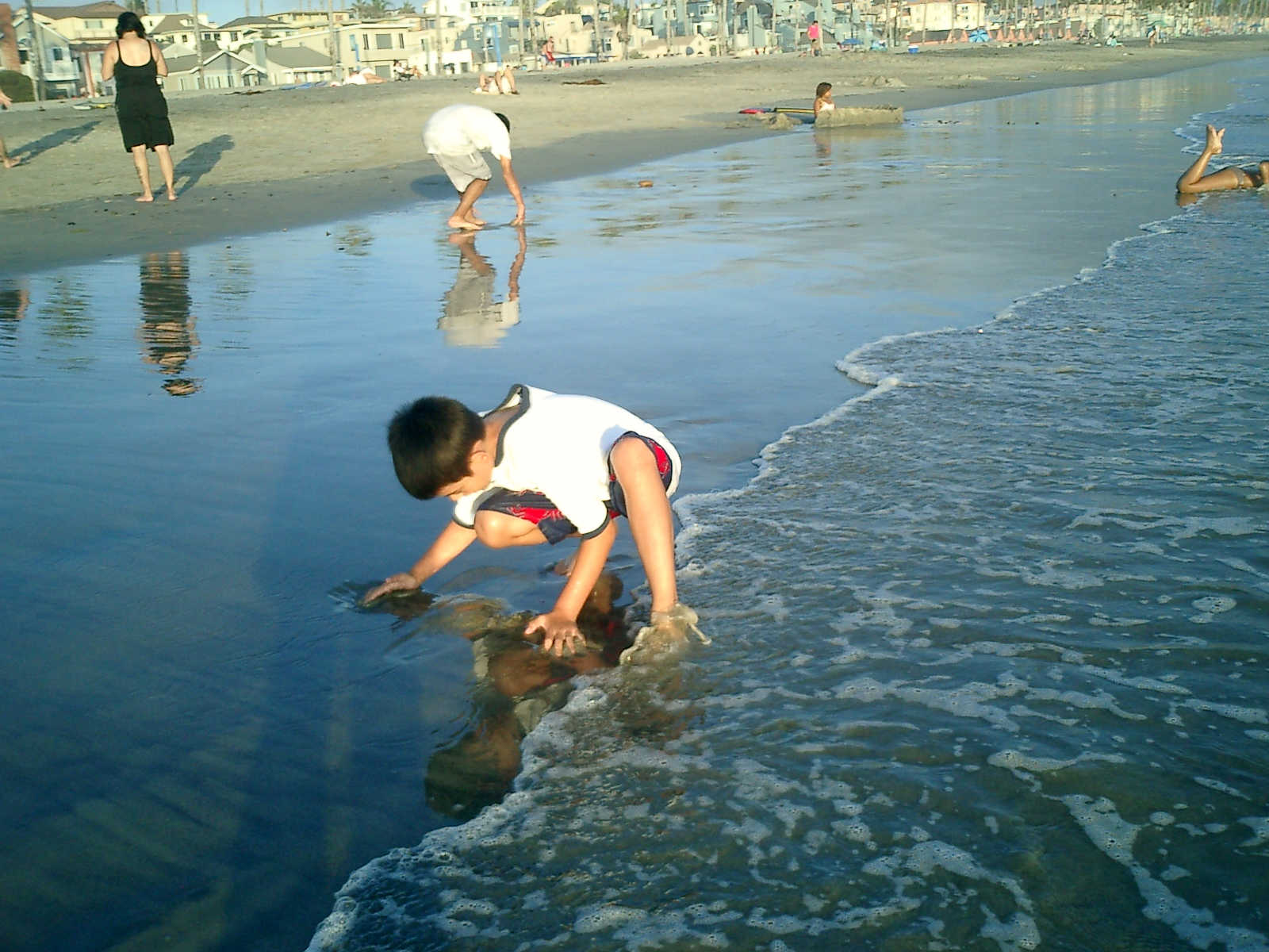 | Nadine at 20 and a half months, (Aug 17, 2008), on day 6 of our San Diego vacation: Visiting Los Angeles, including lunch in Thai Town; driving through the Hollywood Hills and Mulholland Drive ("Home of the stars..."); stopping at San Clemente beach on the way home; then just enought time to go to the Oceanside beach one more time. Nadine, how come you don't like the sand too much? Do you think it is too dirty for a pretty girl like you? (But, you do like to scream "Bubbles!" when you see the waves!) |