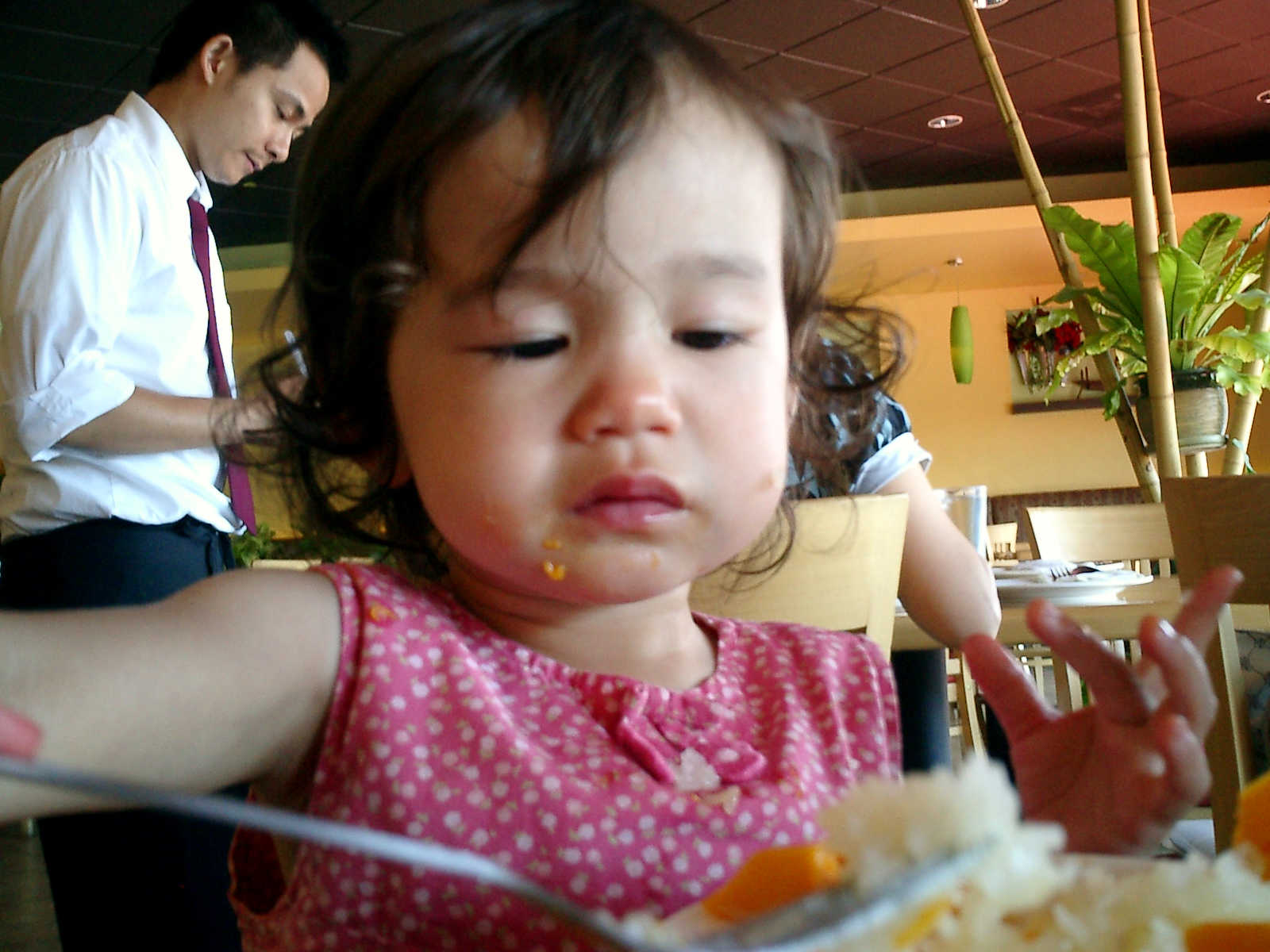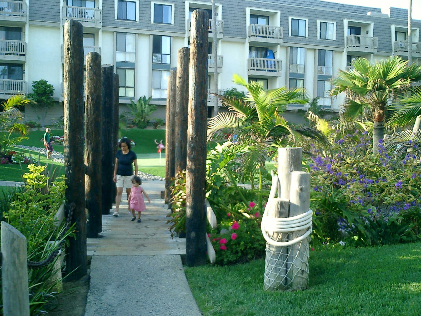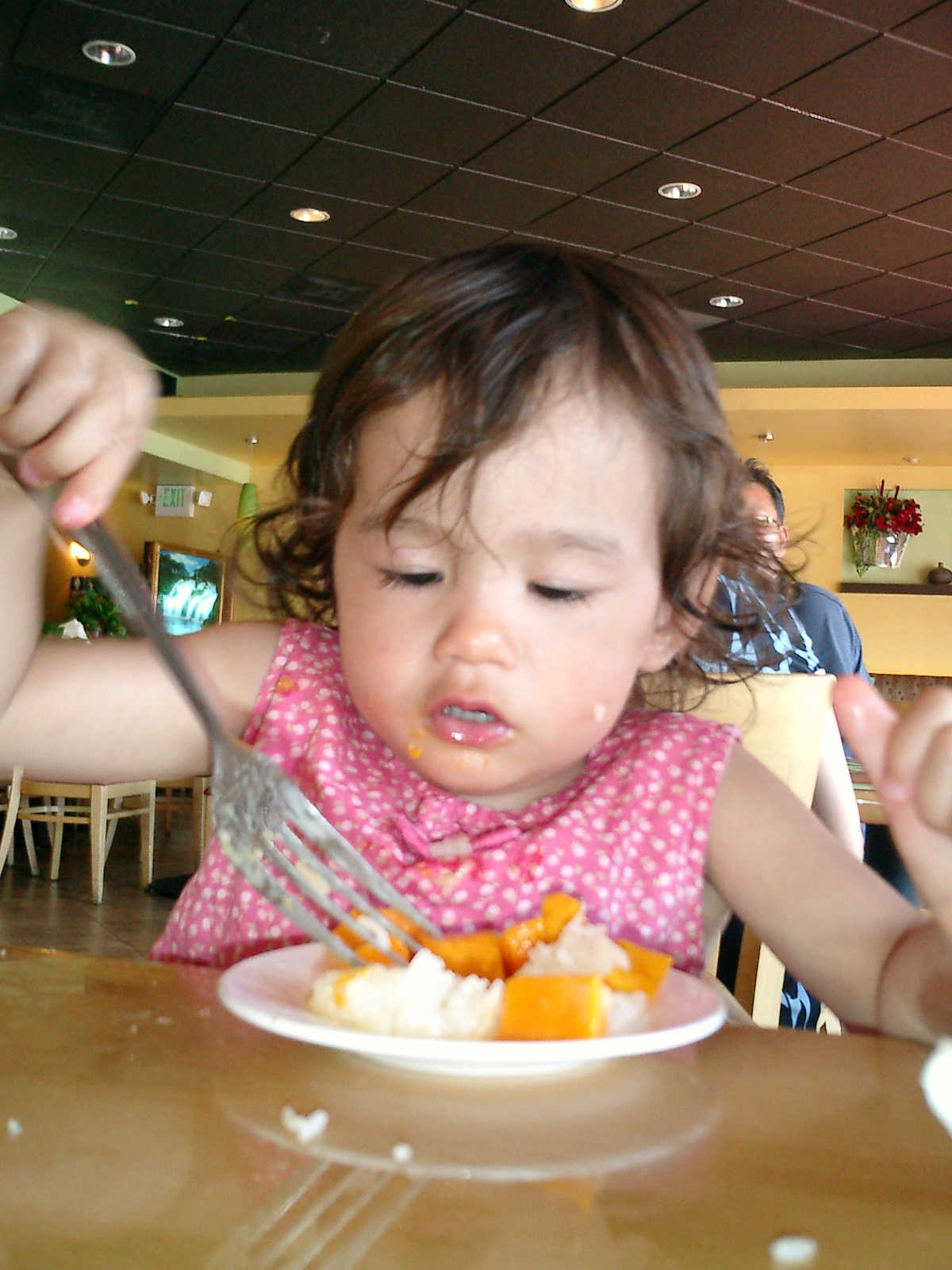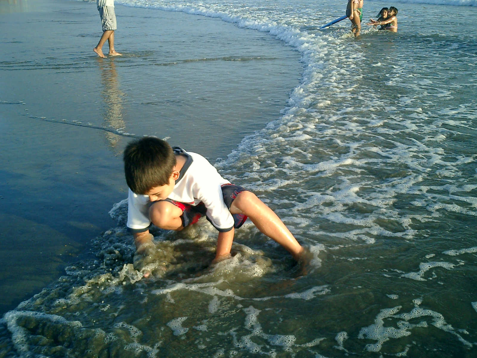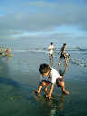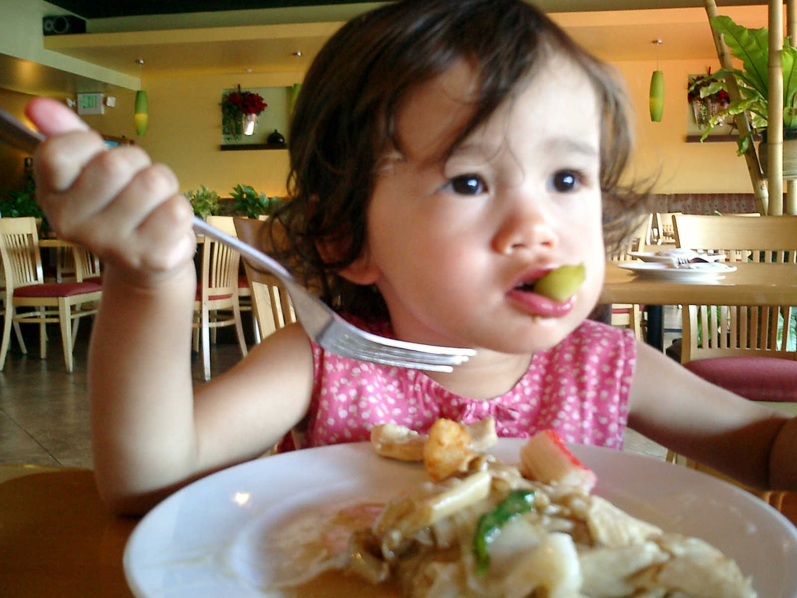 | Nadine at 20 and a half months, (Aug 17, 2008), on day 6 of our San Diego vacation: Visiting Los Angeles, including lunch in Thai Town; driving through the Hollywood Hills and Mulholland Drive ("Home of the stars..."); stopping at San Clemente beach on the way home; then just enought time to go to the Oceanside beach one more time. Nadine, how come you don't like the sand too much? Do you think it is too dirty for a pretty girl like you? (But, you do like to scream "Bubbles!" when you see the waves!) |