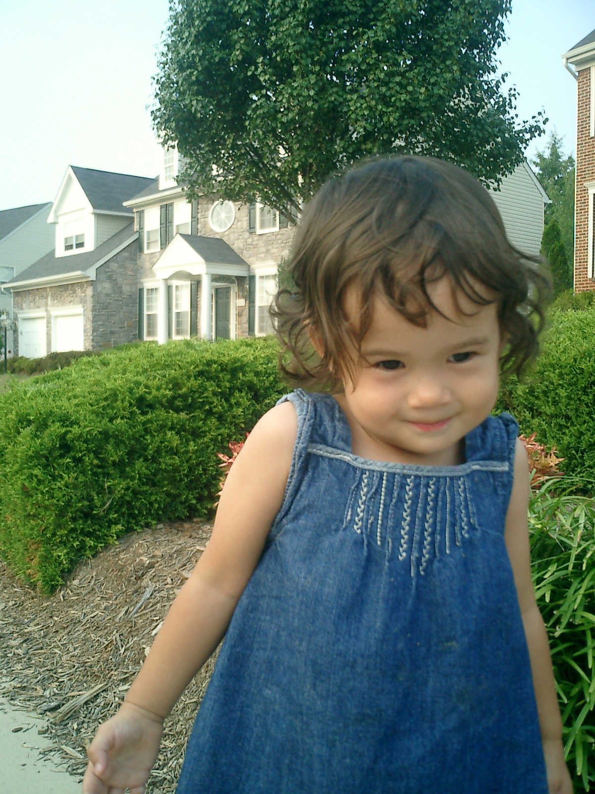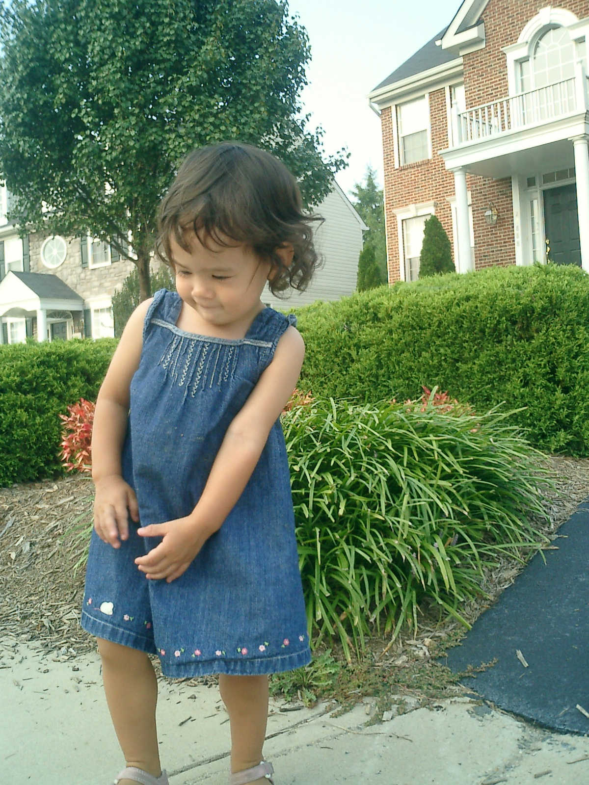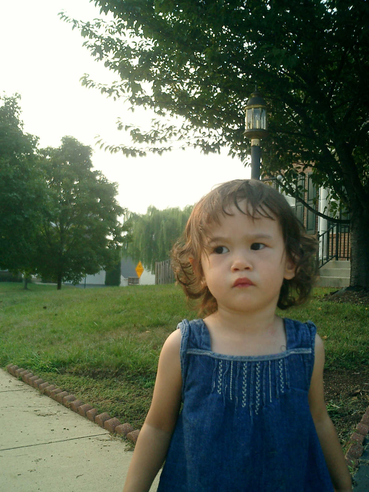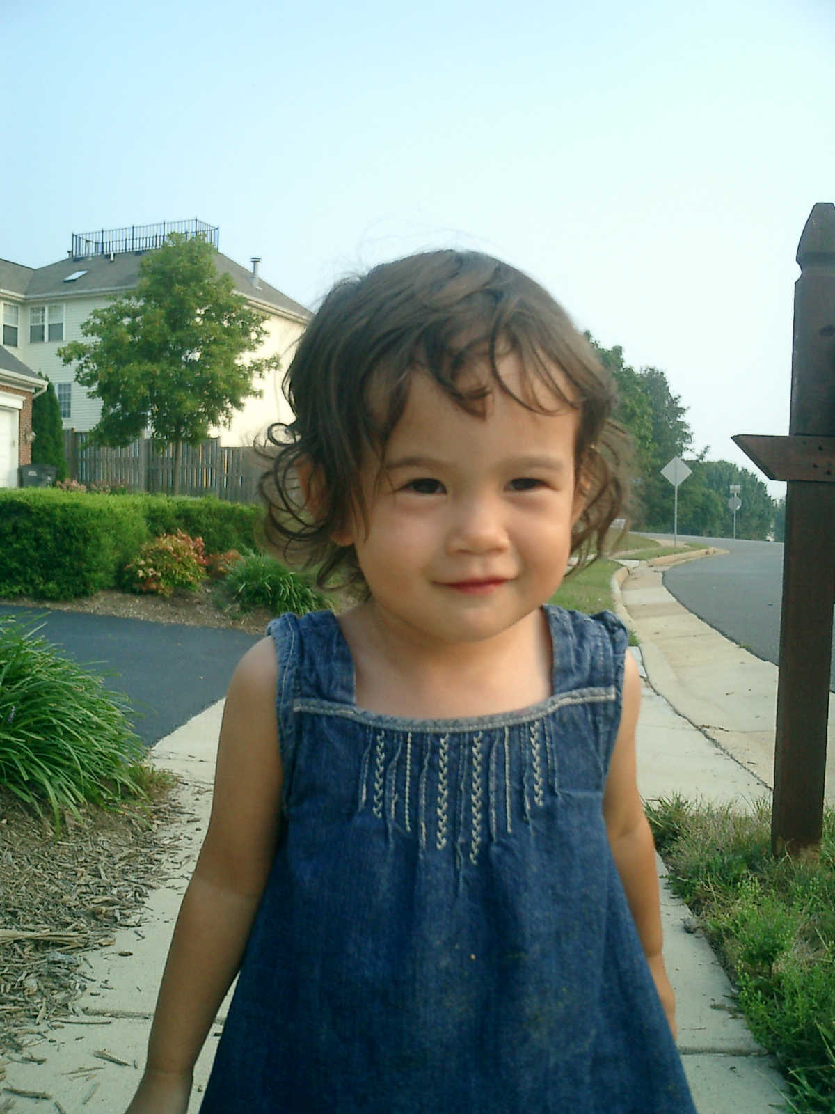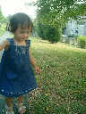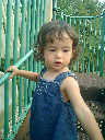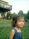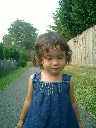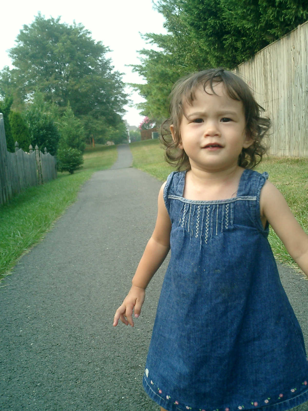 Nadine at 21 months (August 30, 2008), taking a stroll with Daddy to the playground behind the house. Nadine, you sure are brave going down that slide!