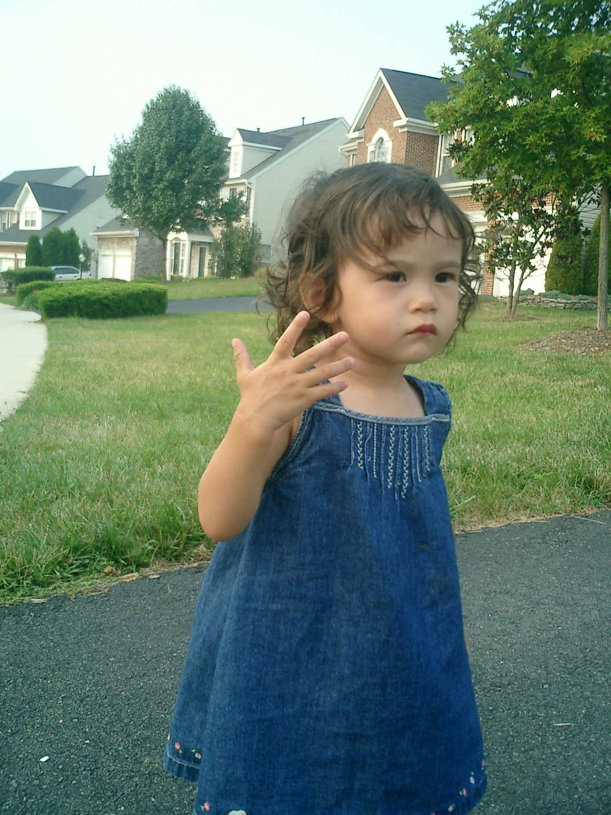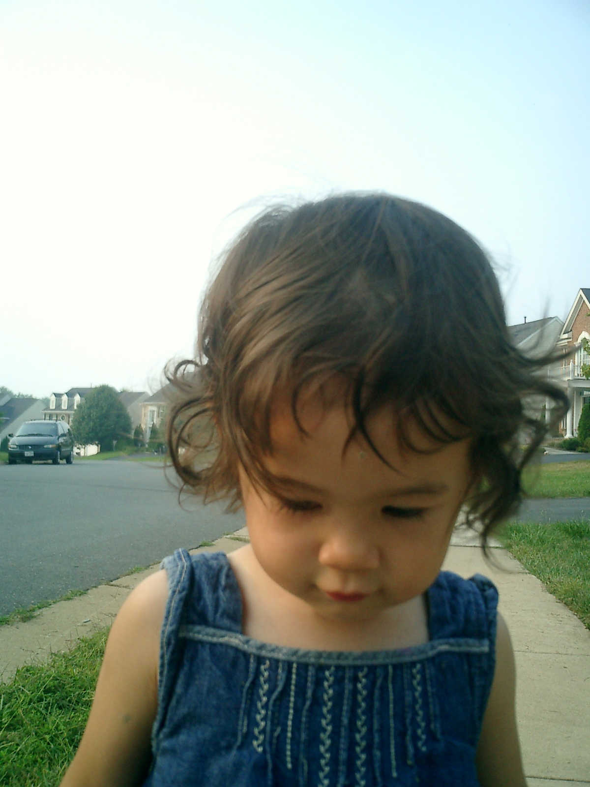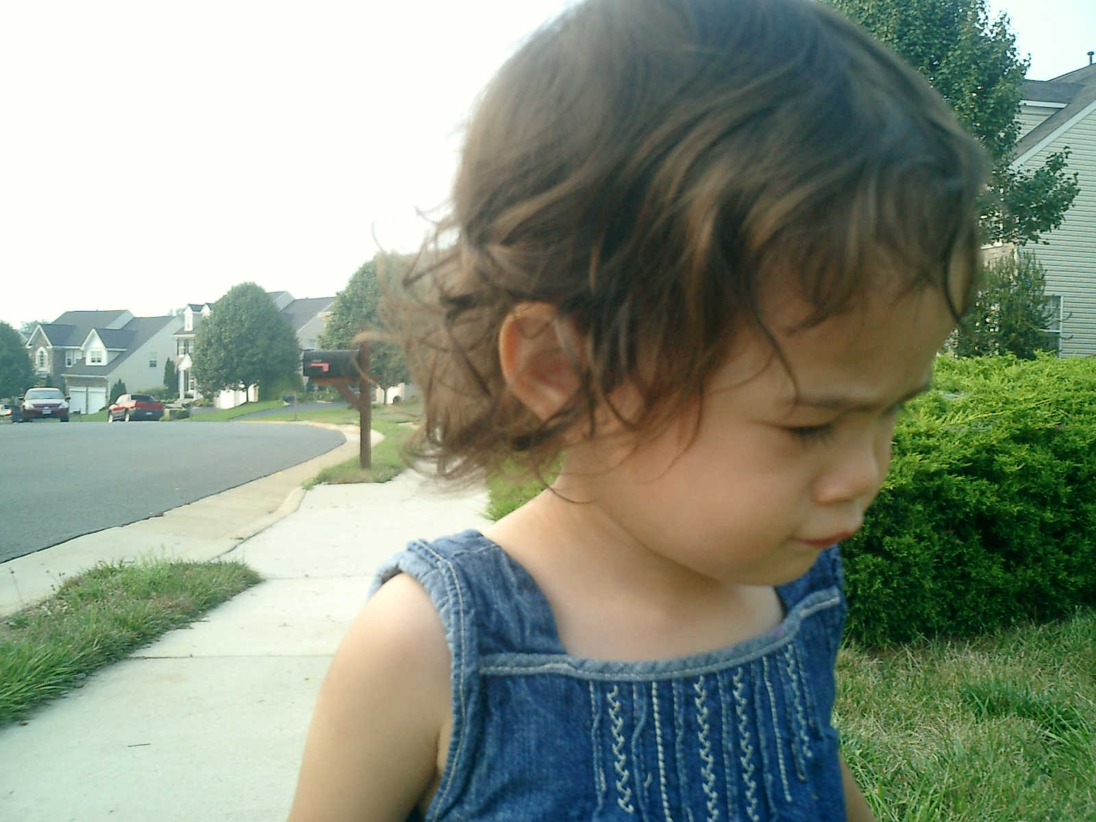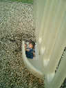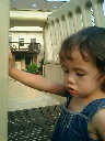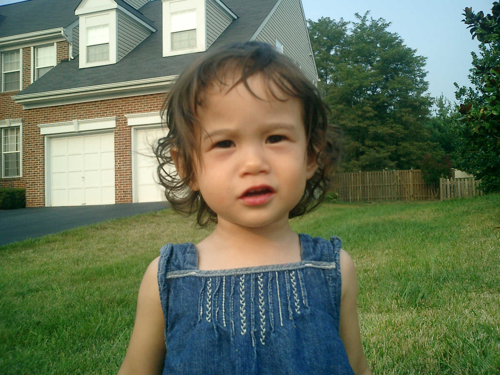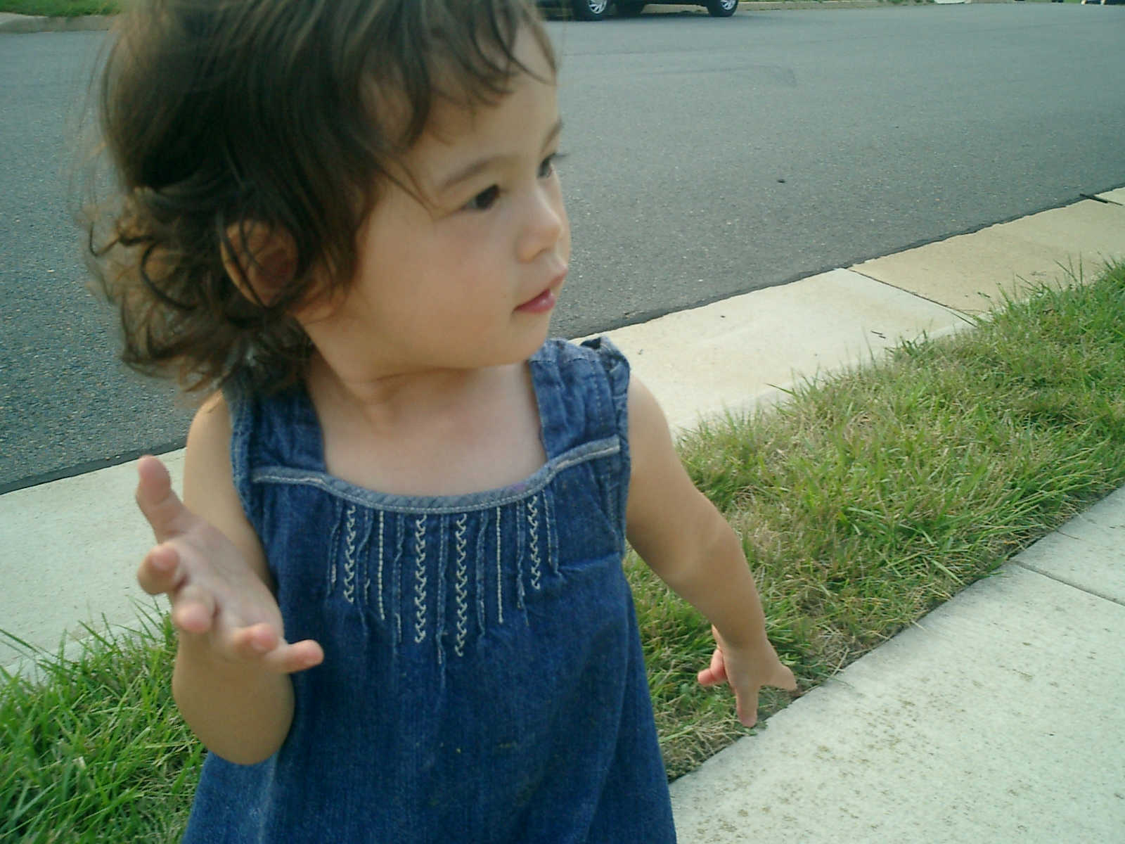 Nadine at 21 months (August 30, 2008), taking a stroll with Daddy to the playground behind the house. Nadine, you sure are brave going down that slide!