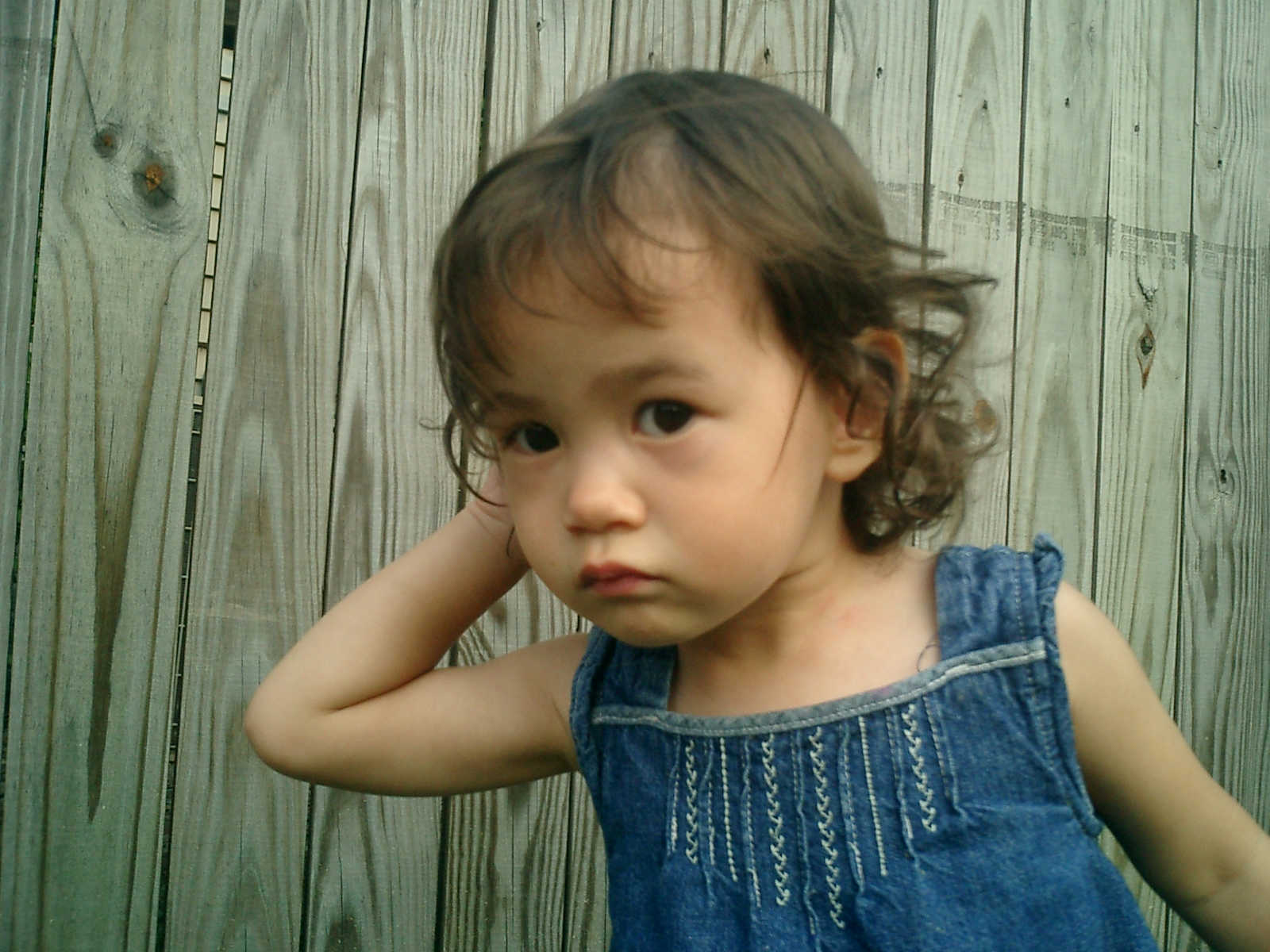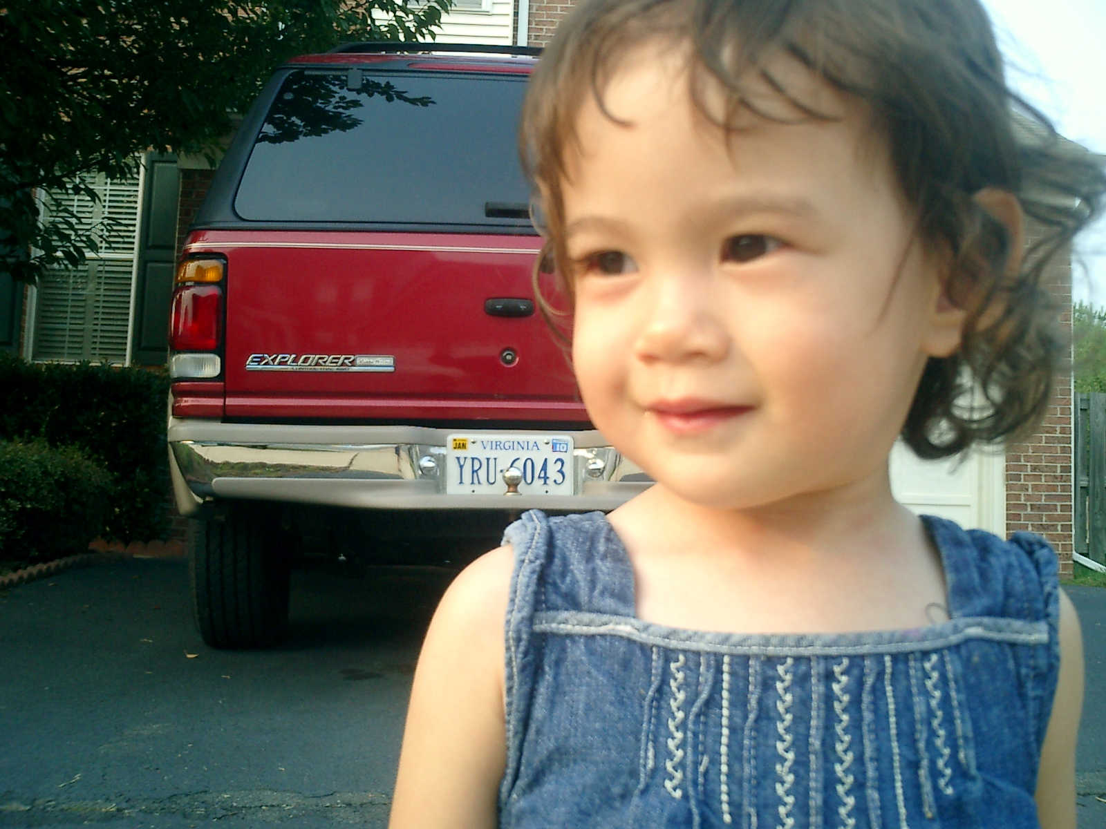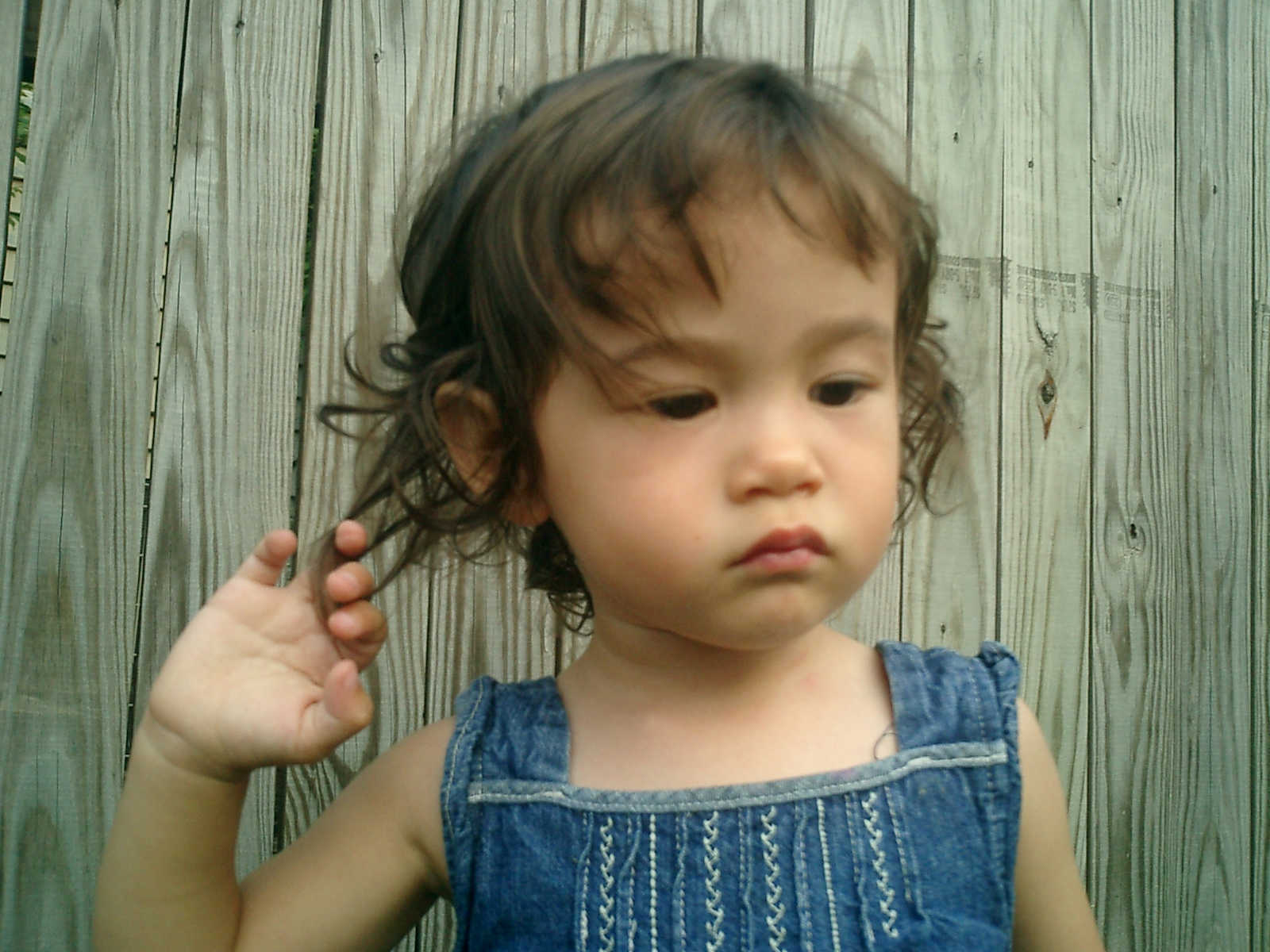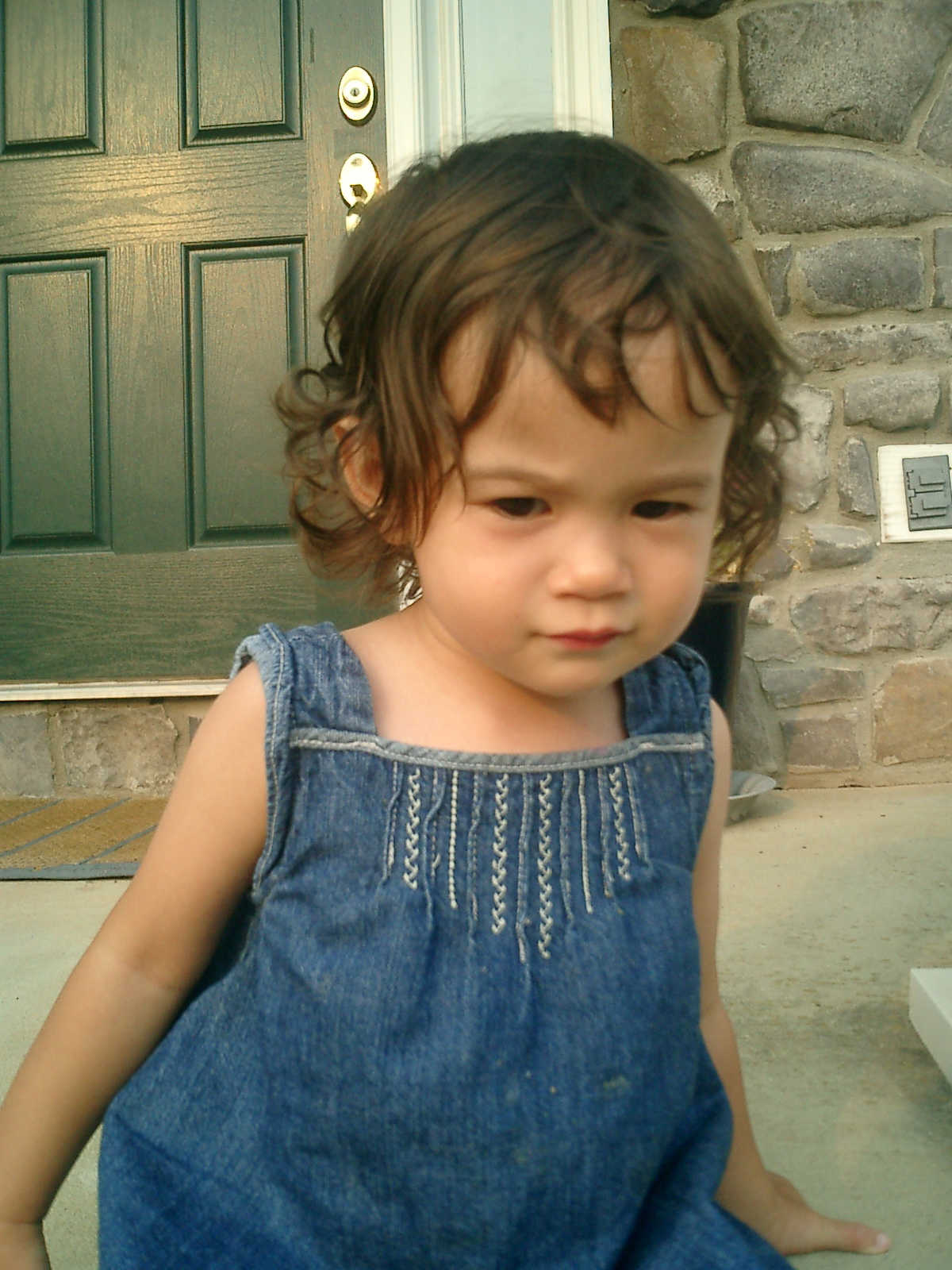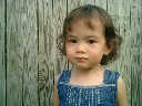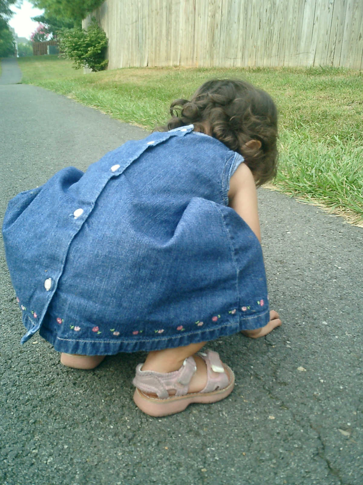 Nadine at 21 months (August 30, 2008), taking a stroll with Daddy to the playground behind the house. Nadine, you sure are brave going down that slide!