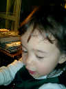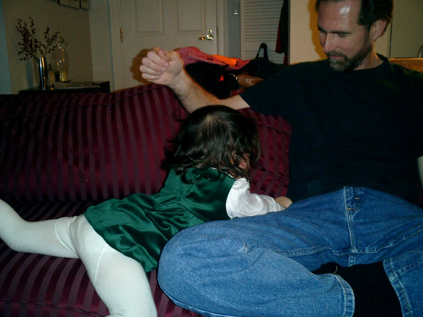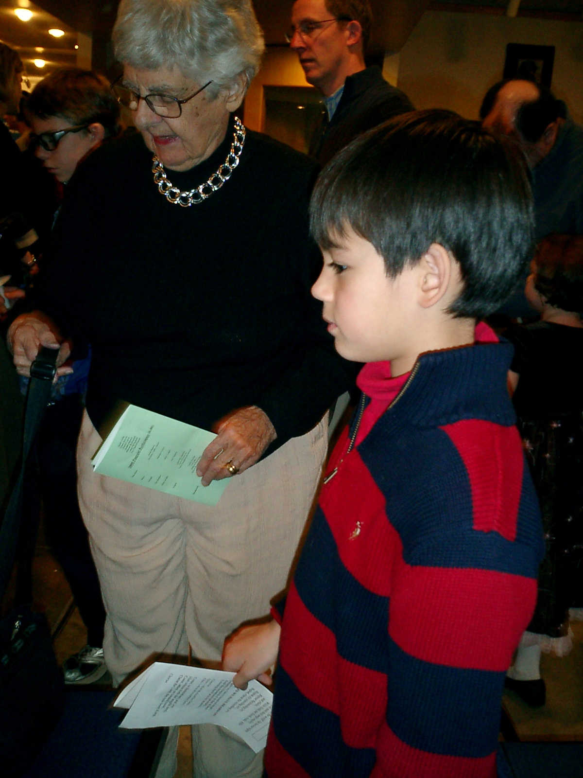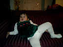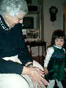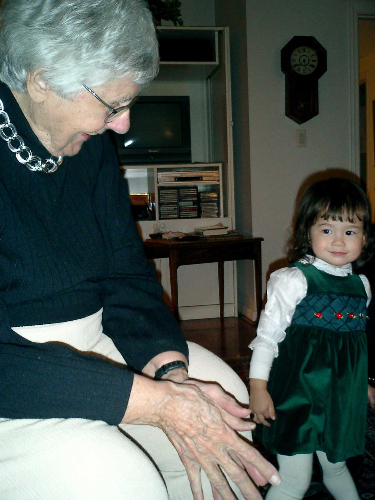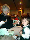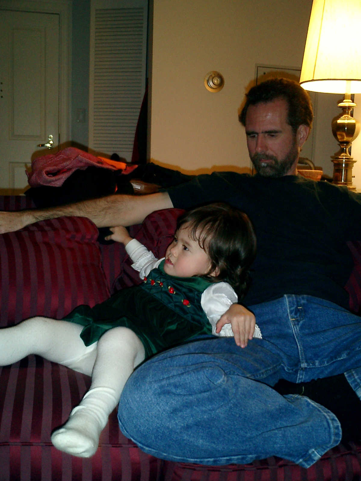 | Nadine at 25 months (December 24, 2008), celebrating Christmas Eve at the Arlington Unitarian Church. Nadine, did you enjoy the candle lighting ceremony? How about the Mitten Tree? We sure had fun at Grandma Alexander's house afterwards -- with Uncle David too! |