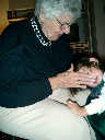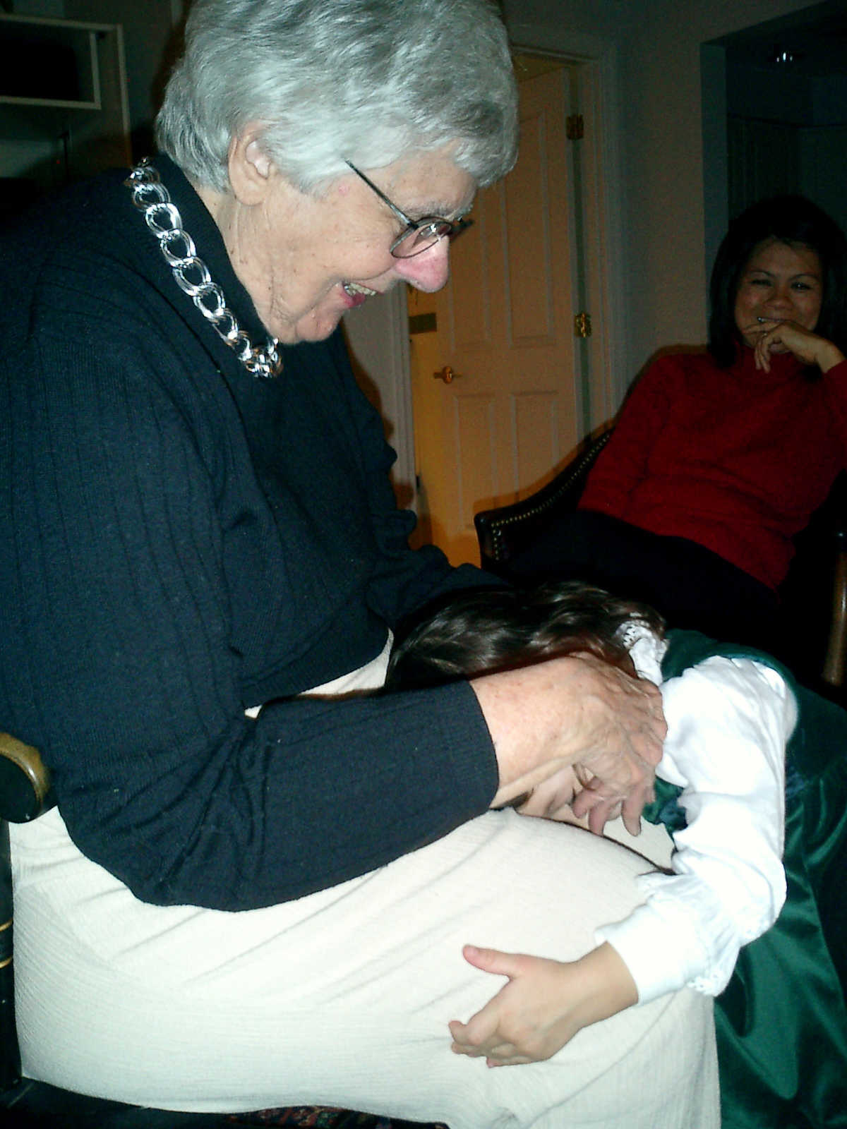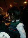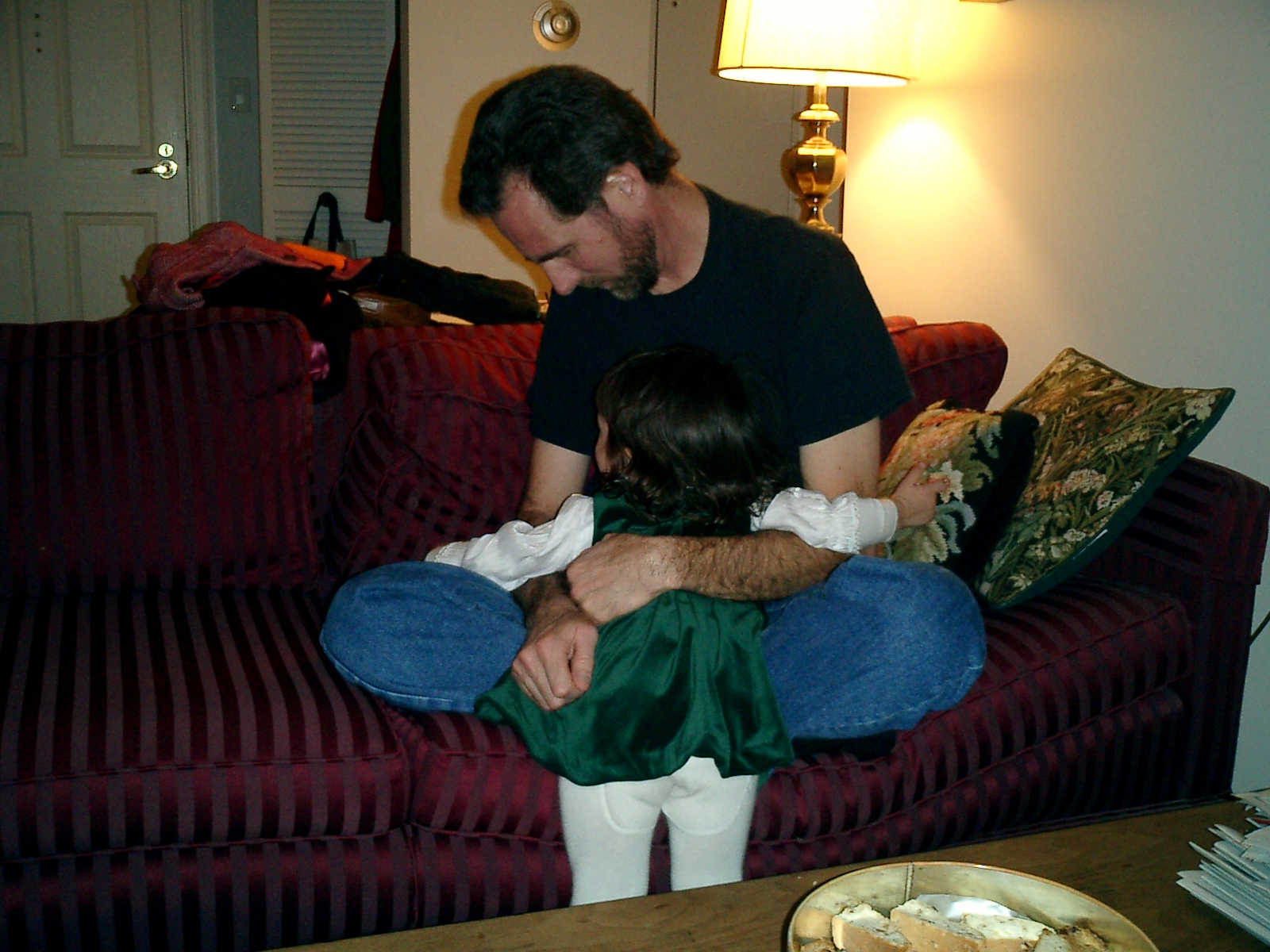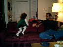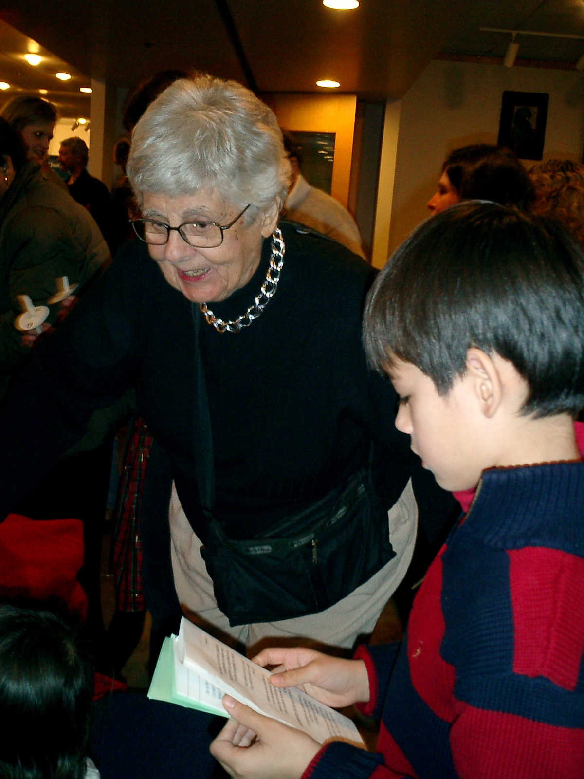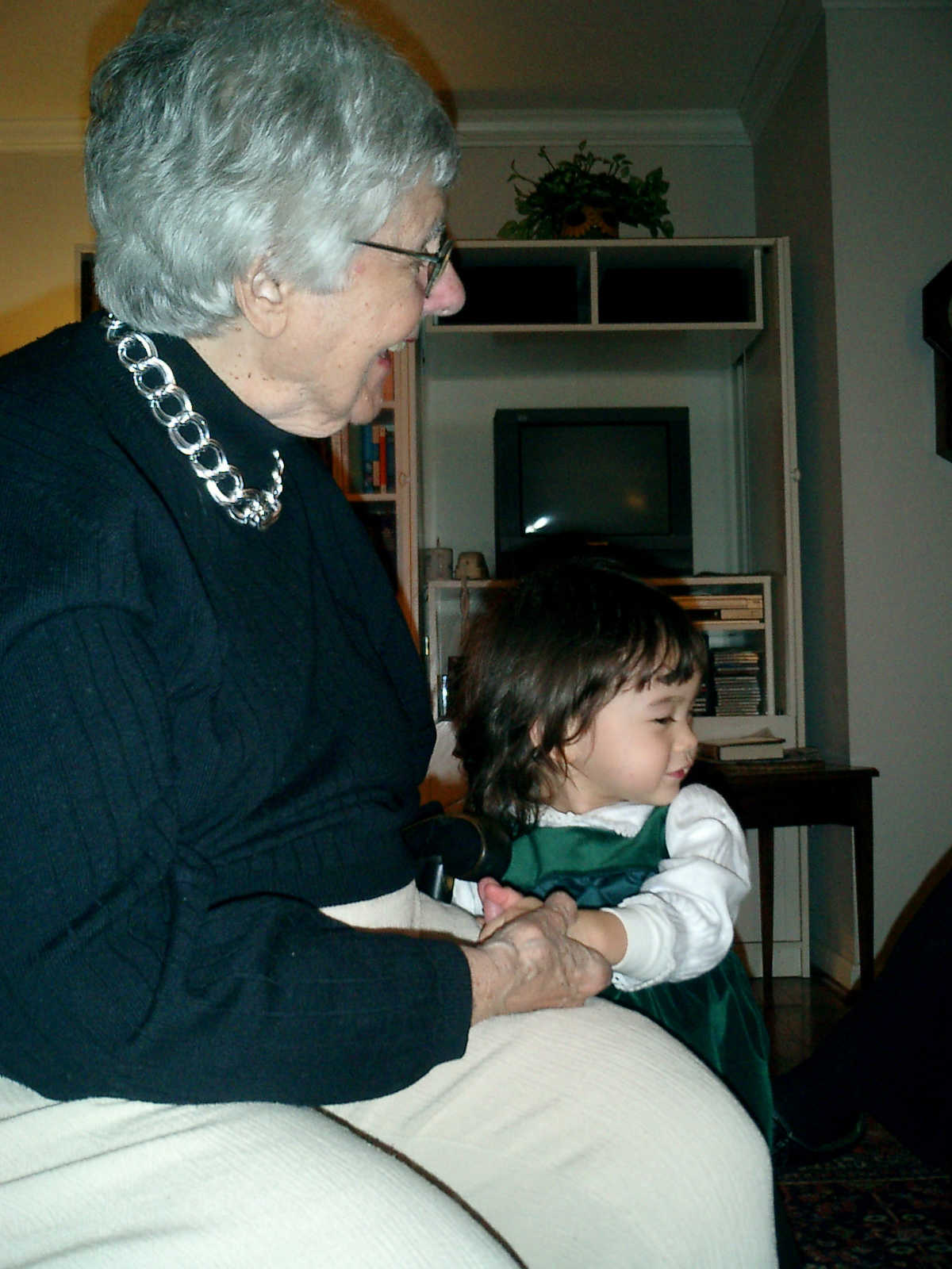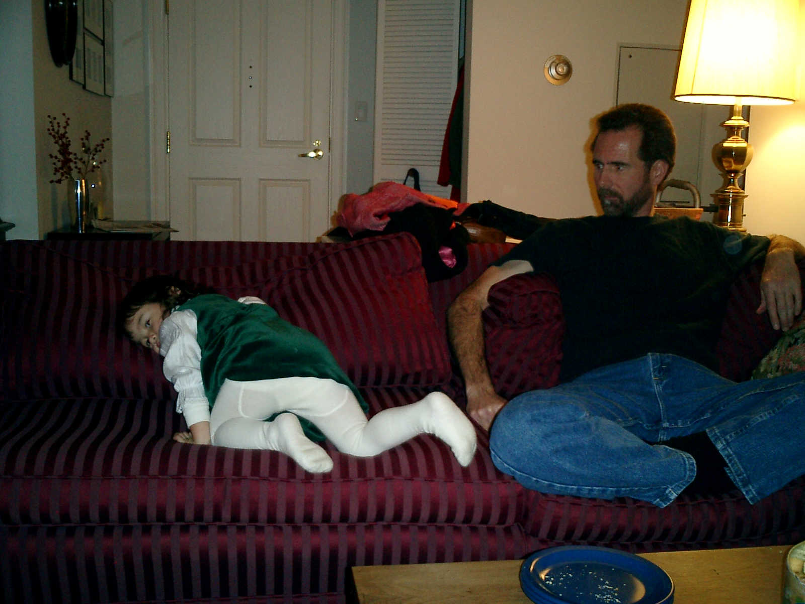 | Nadine at 25 months (December 24, 2008), celebrating Christmas Eve at the Arlington Unitarian Church. Nadine, did you enjoy the candle lighting ceremony? How about the Mitten Tree? We sure had fun at Grandma Alexander's house afterwards -- with Uncle David too! |
