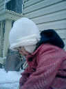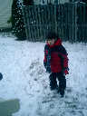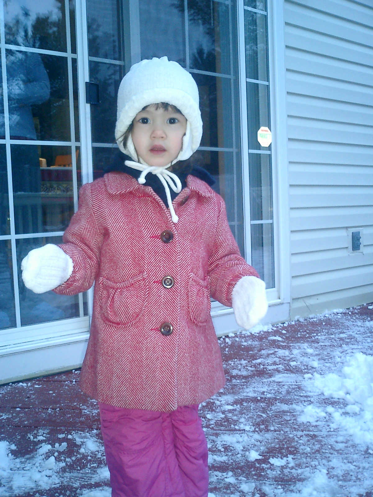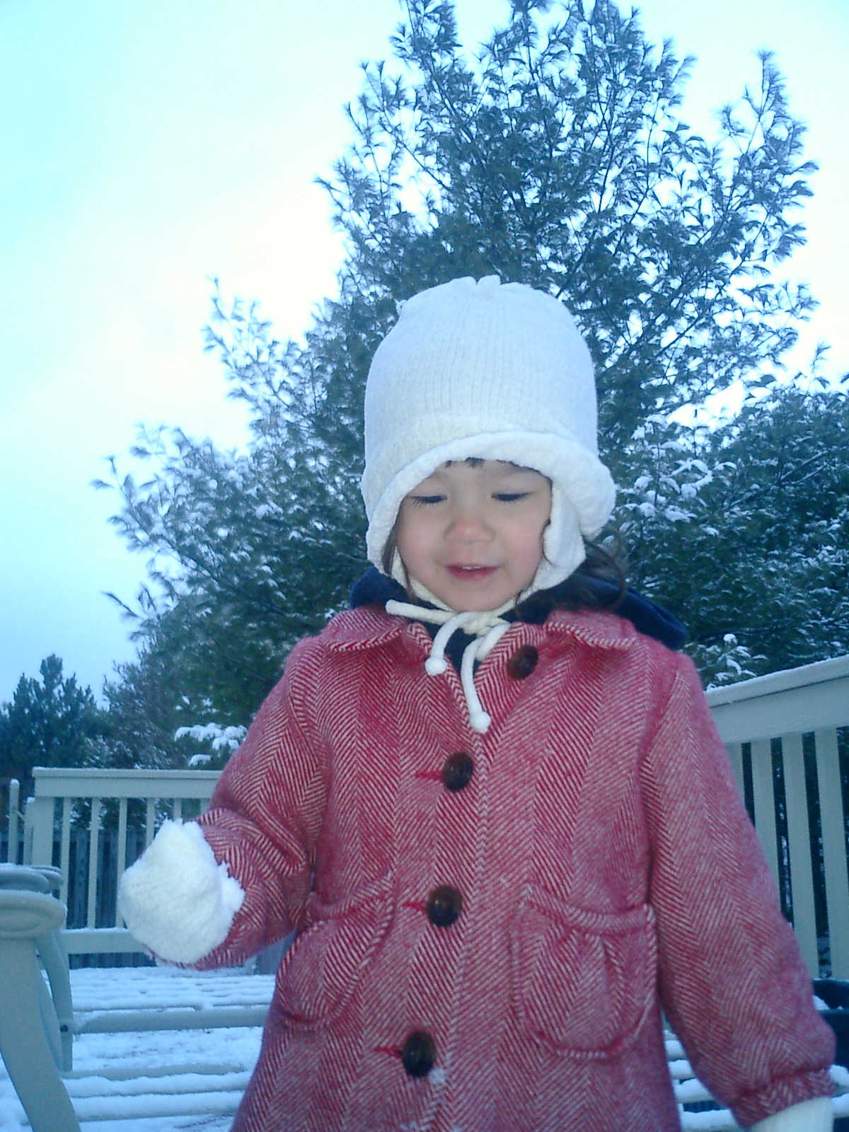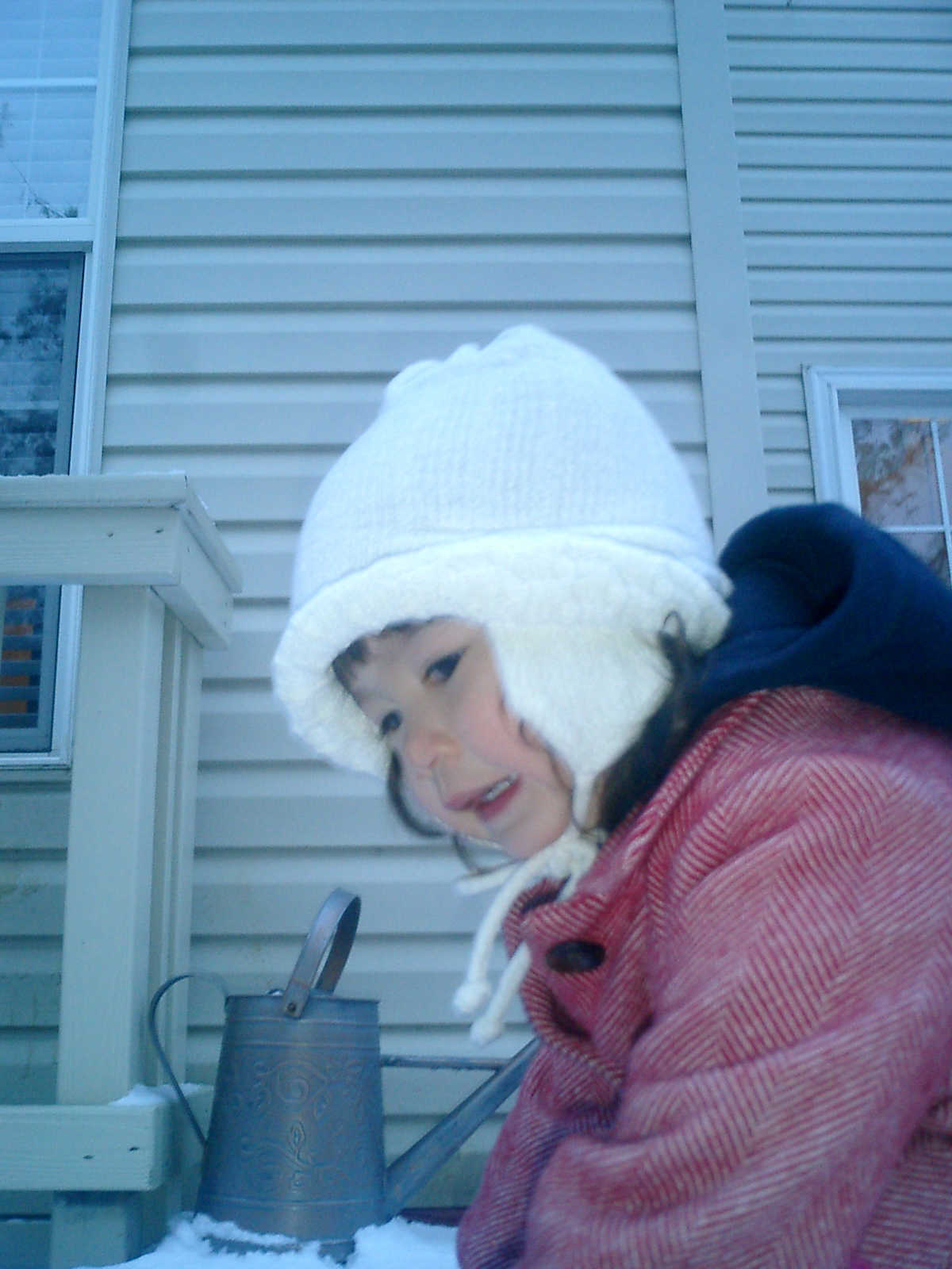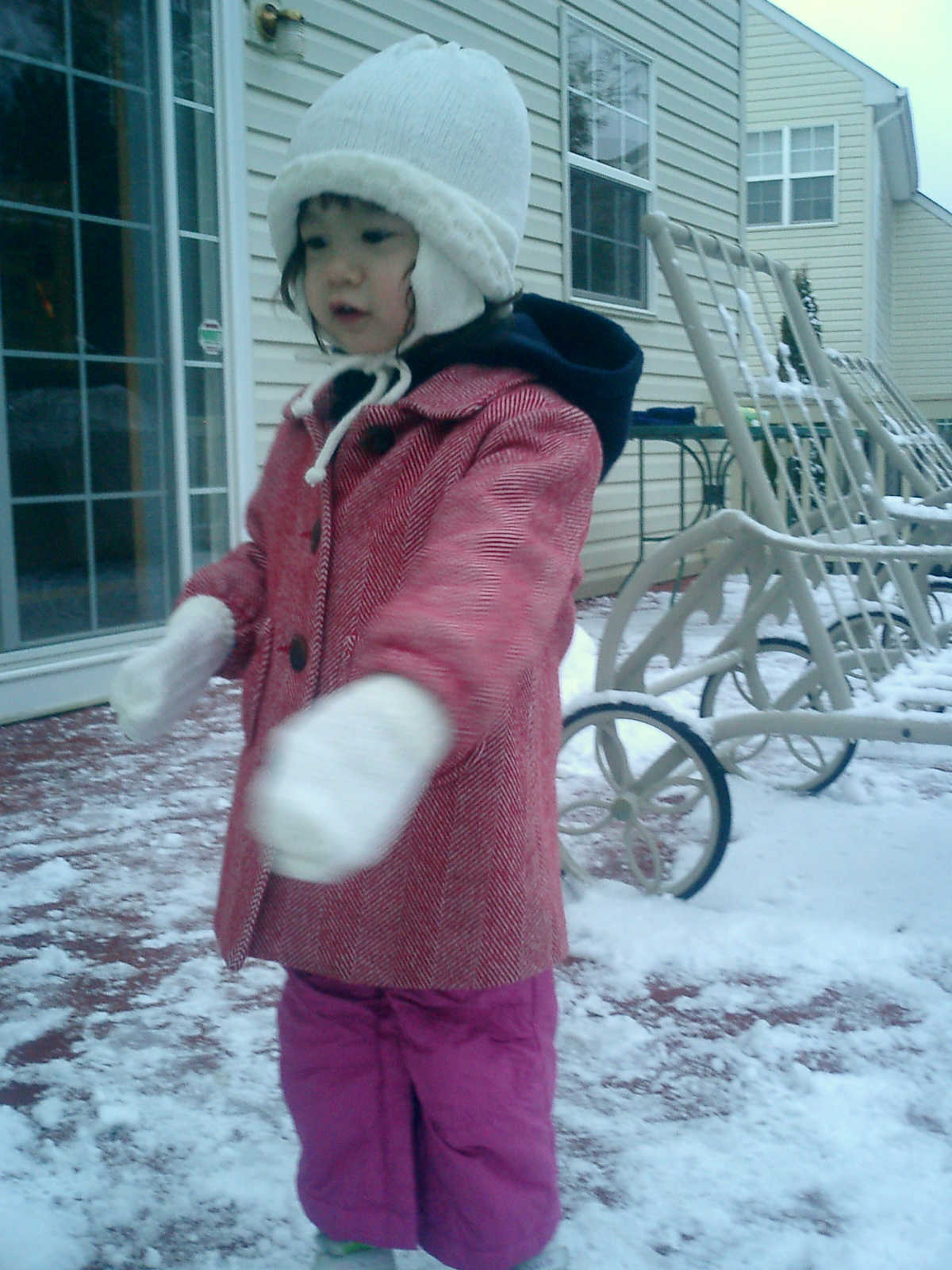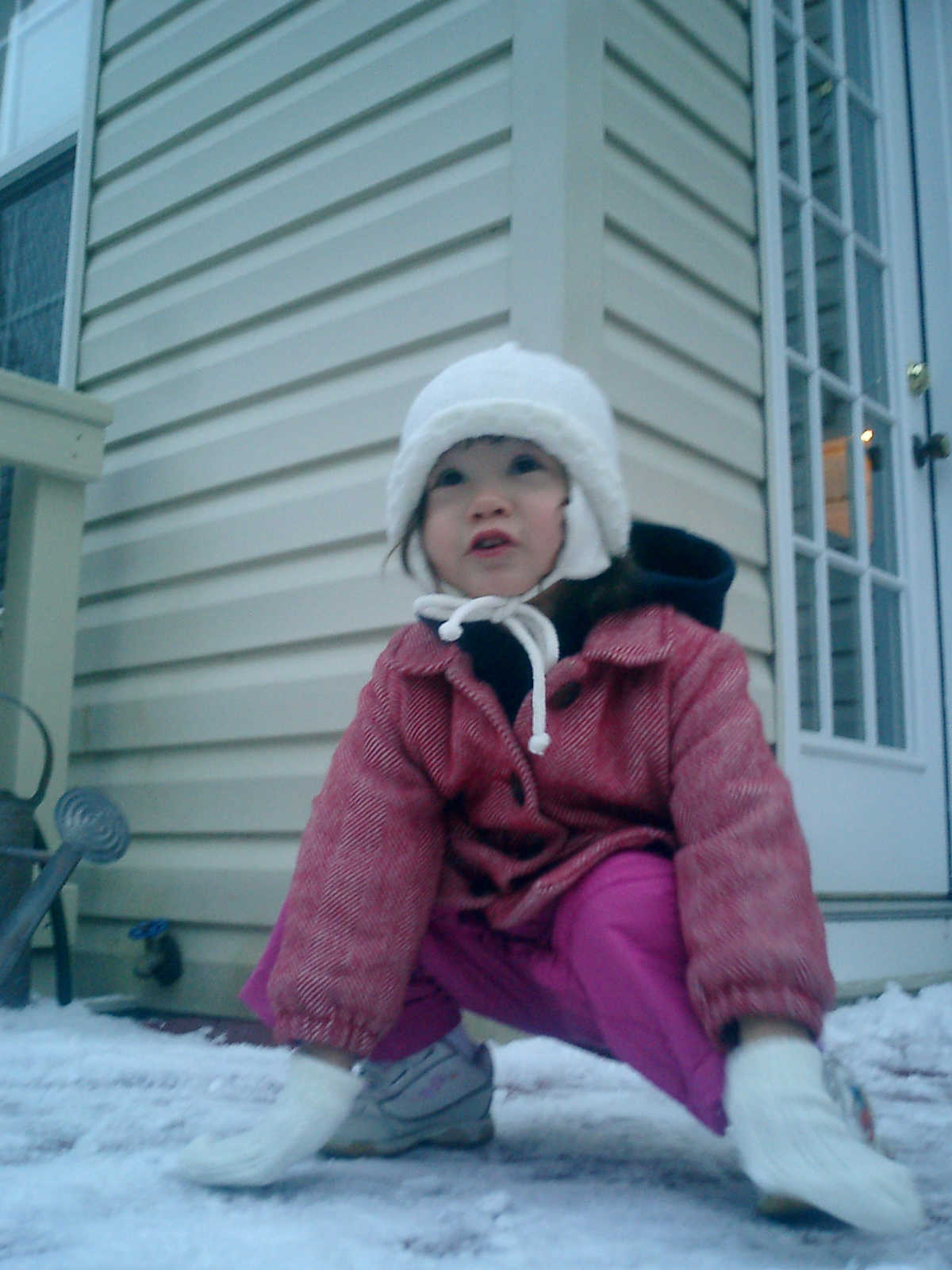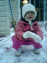 Nadine at 2 years and 2 months (January 19, 2009), enjoying the first real snow of the season. Nadine, that's a nice warm hat you're wearing!