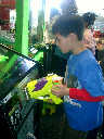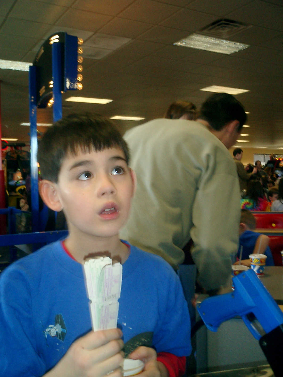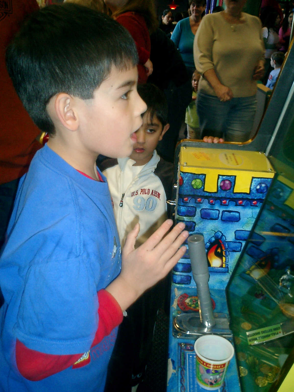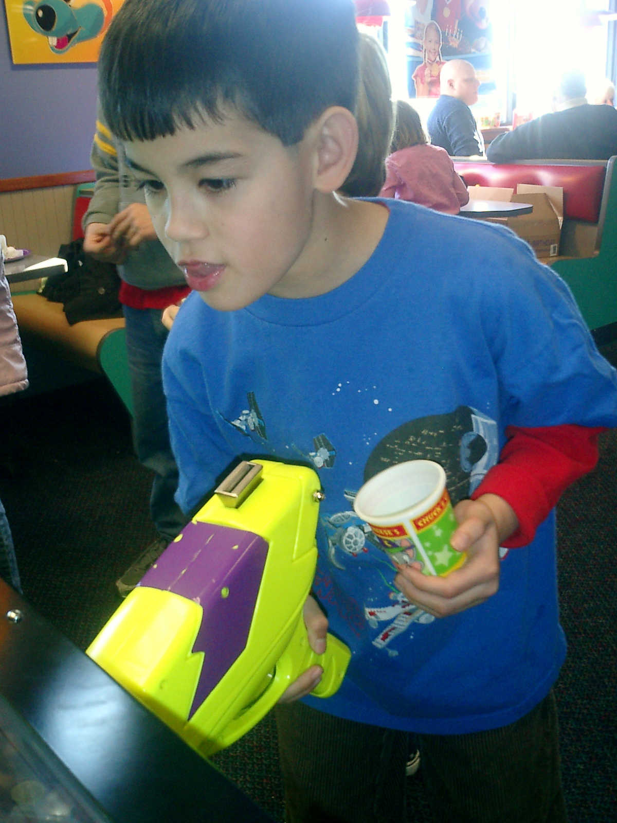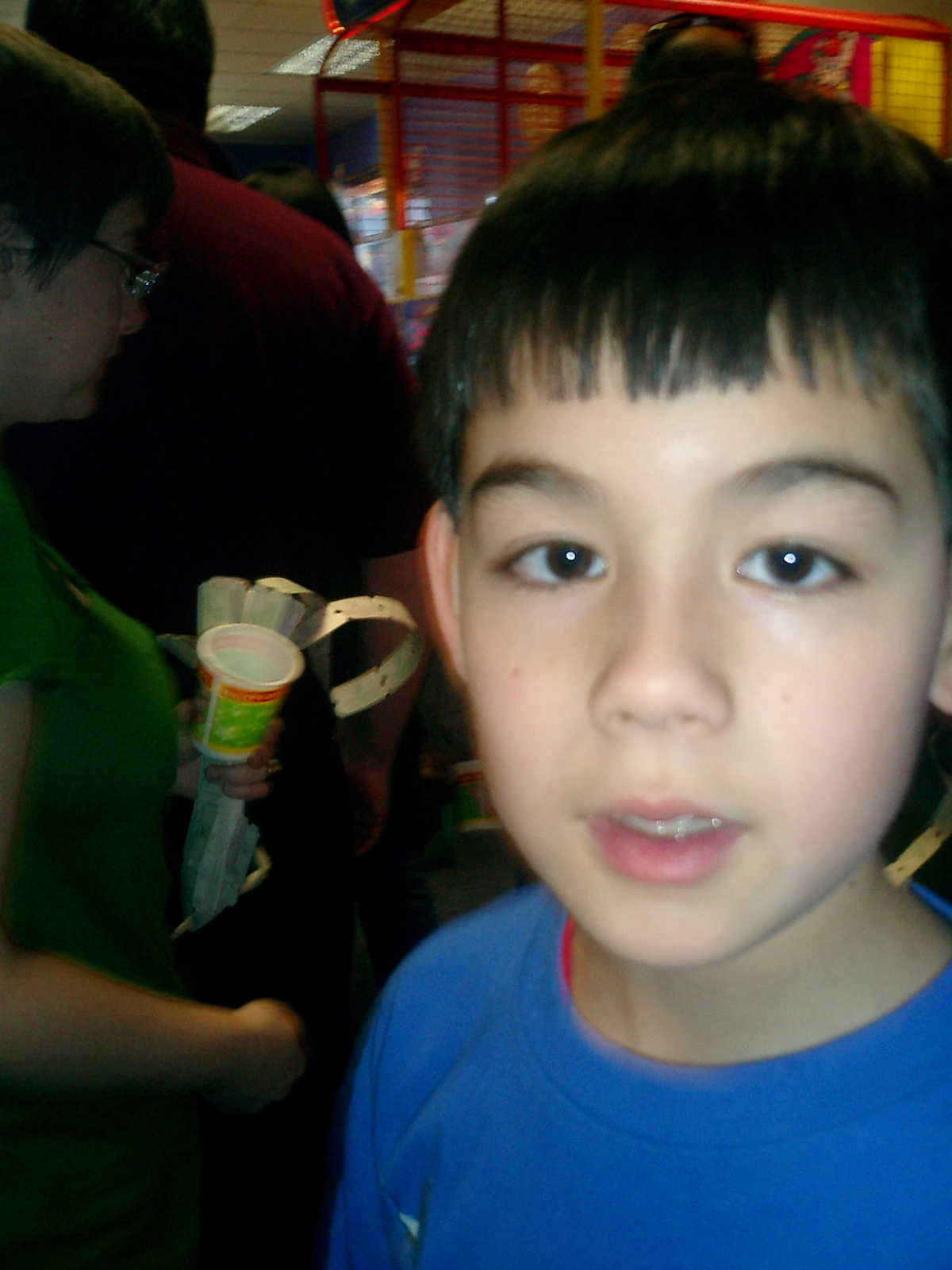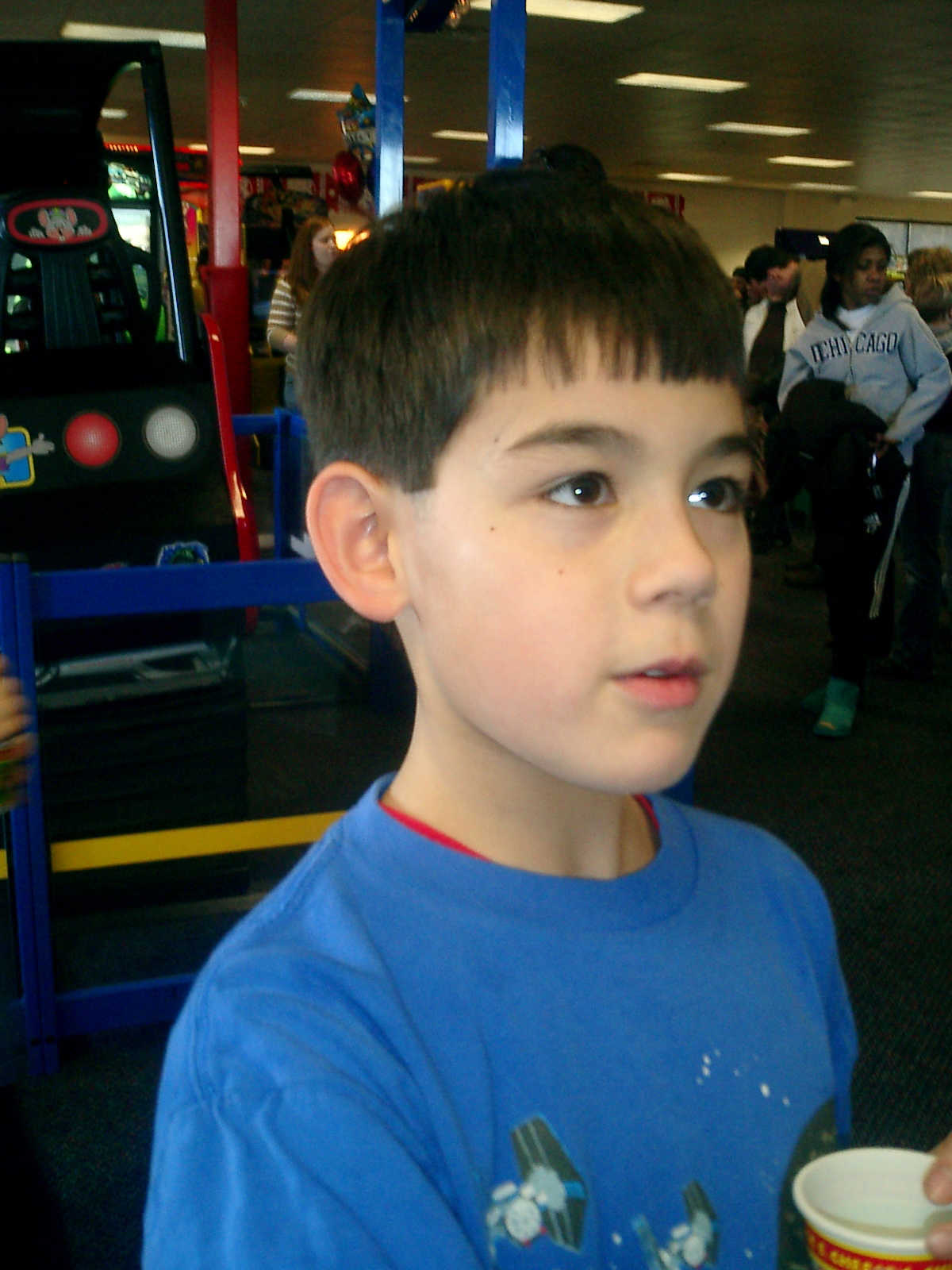 Nadine at 2 years and 2 months (January 31, 2009), on an outing to Chuck-E-Cheese's. Nadine, did you have fun riding in the car with Chuck-E-Cheese? (I know you did!)