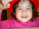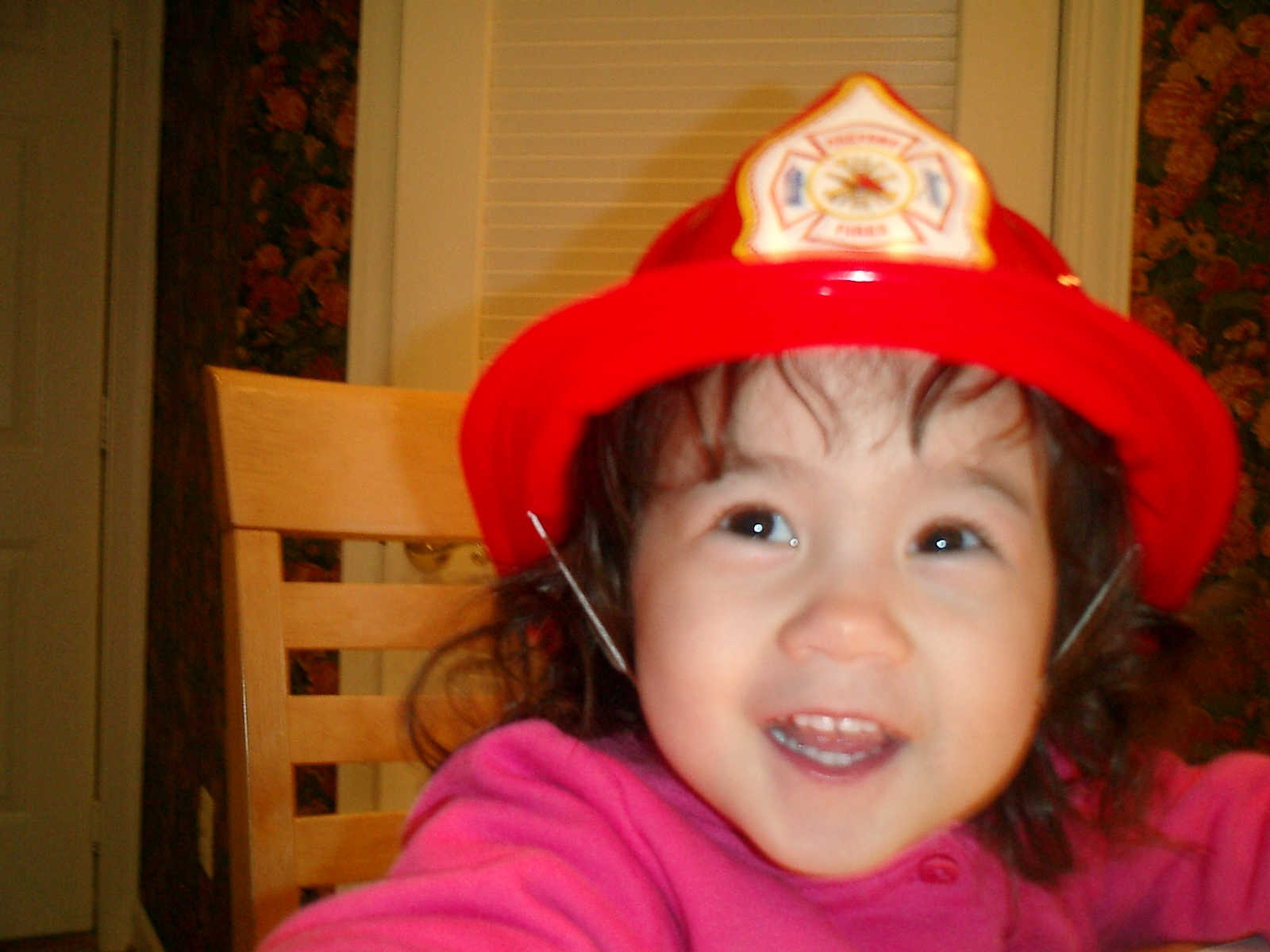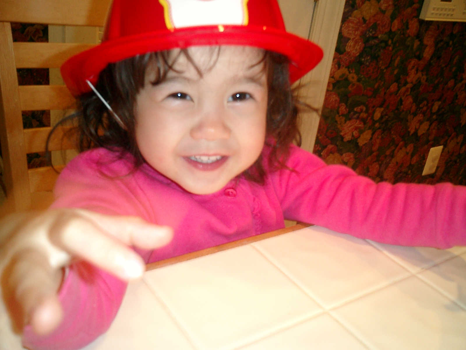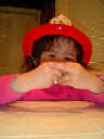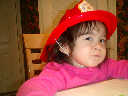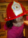 Nadine at 2 years and 3 months (February 16, 2009), showing off her fireman's hat! (Nadine, is that your favorite hat?)