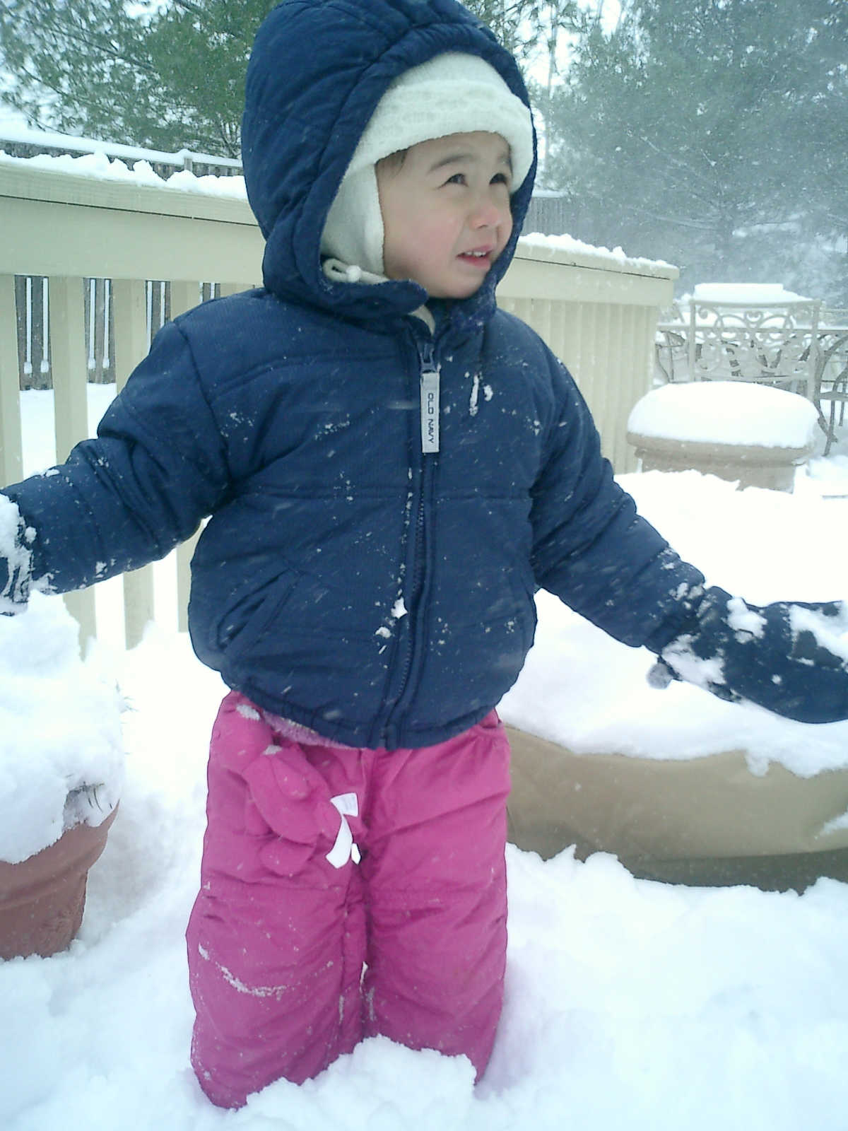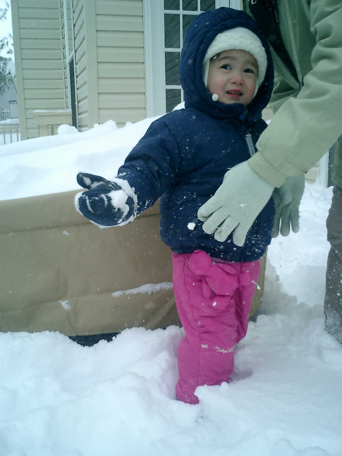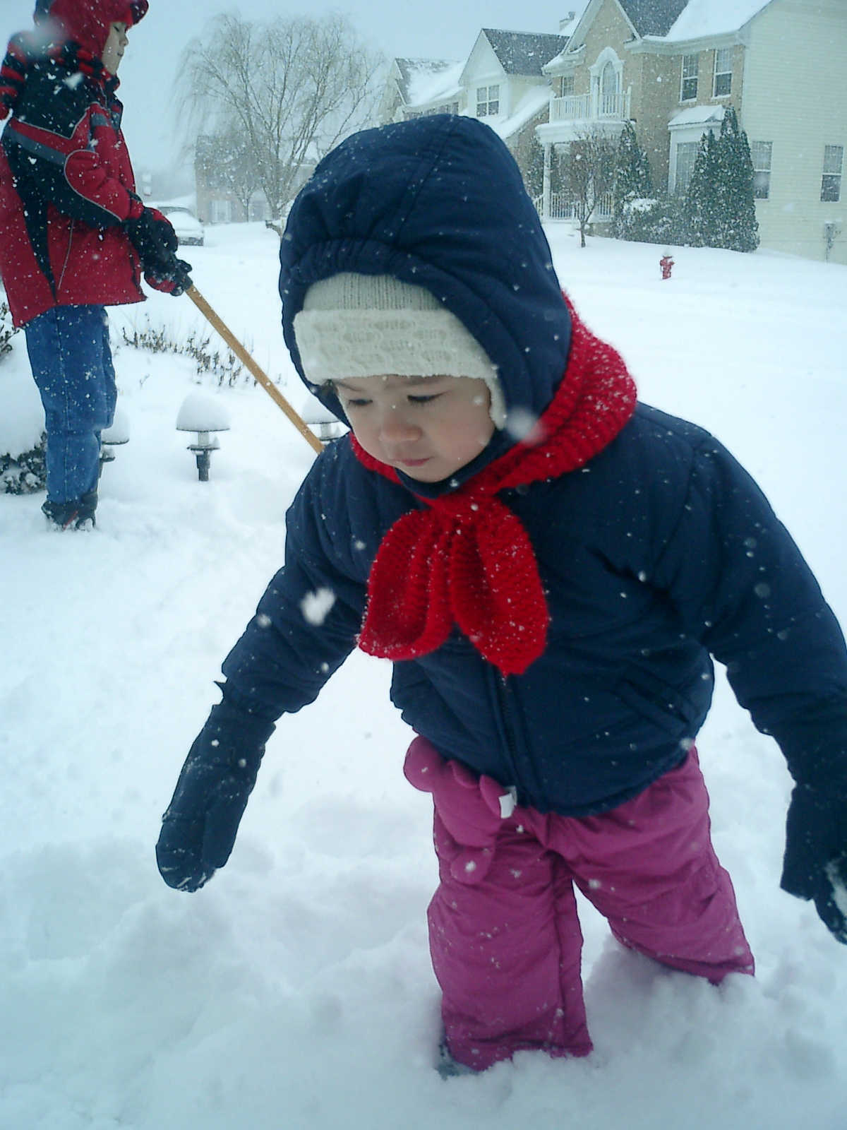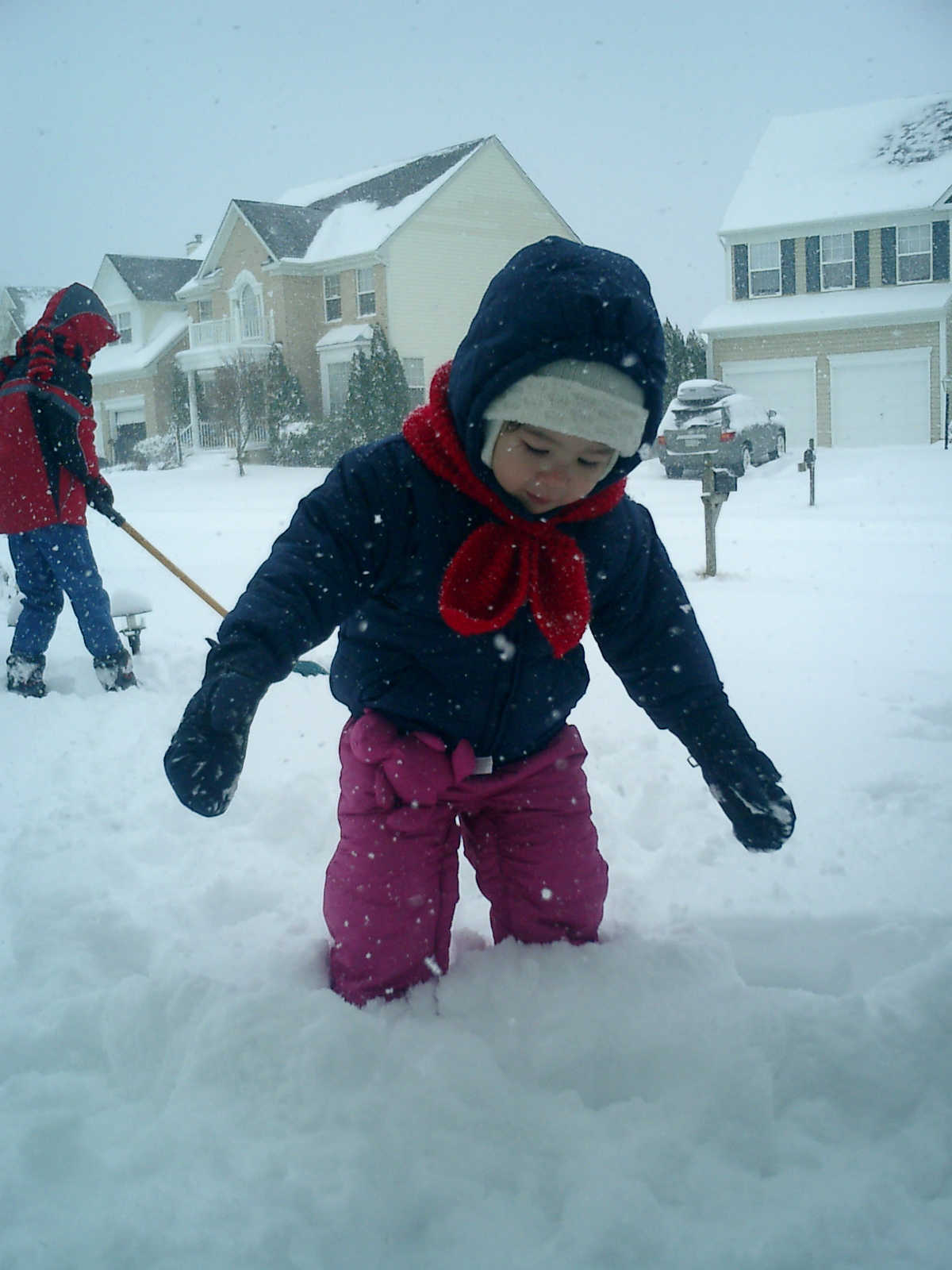 Nadine at 2 years and 3 months (March 2, 2009), playing in the snow with Nolan. Nadine, the snow is so deep, we almost lost you!