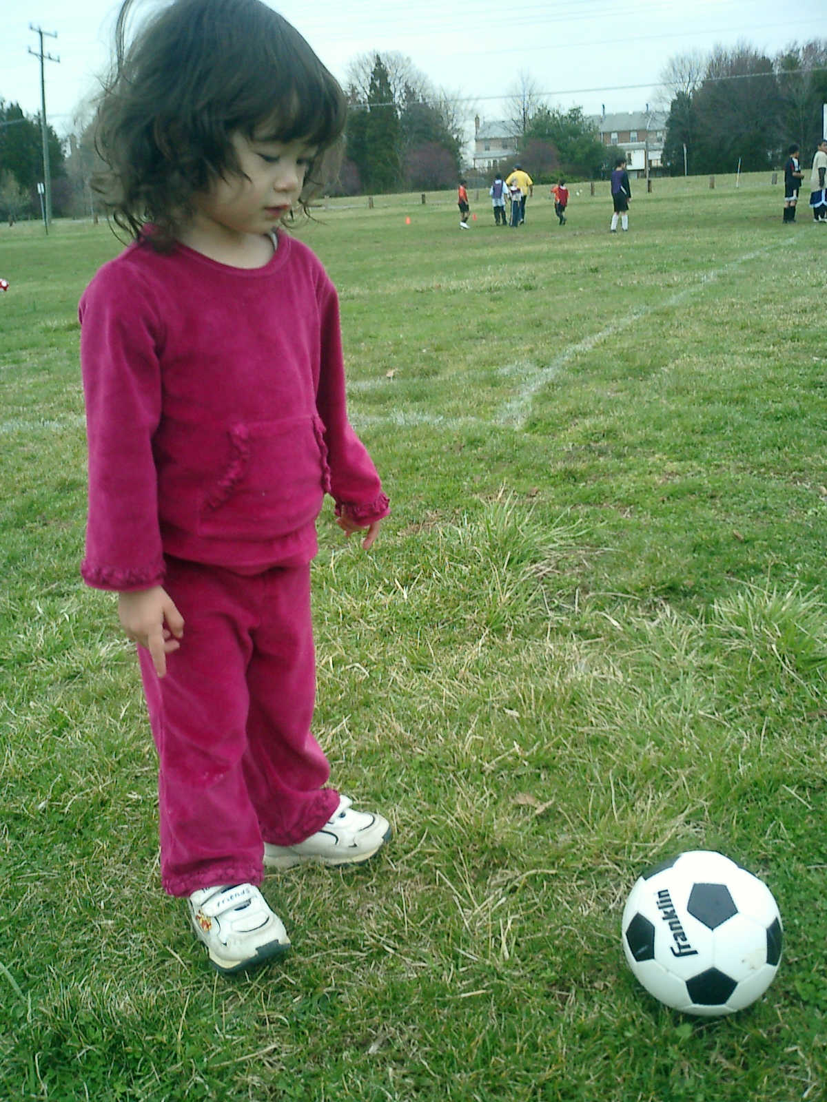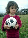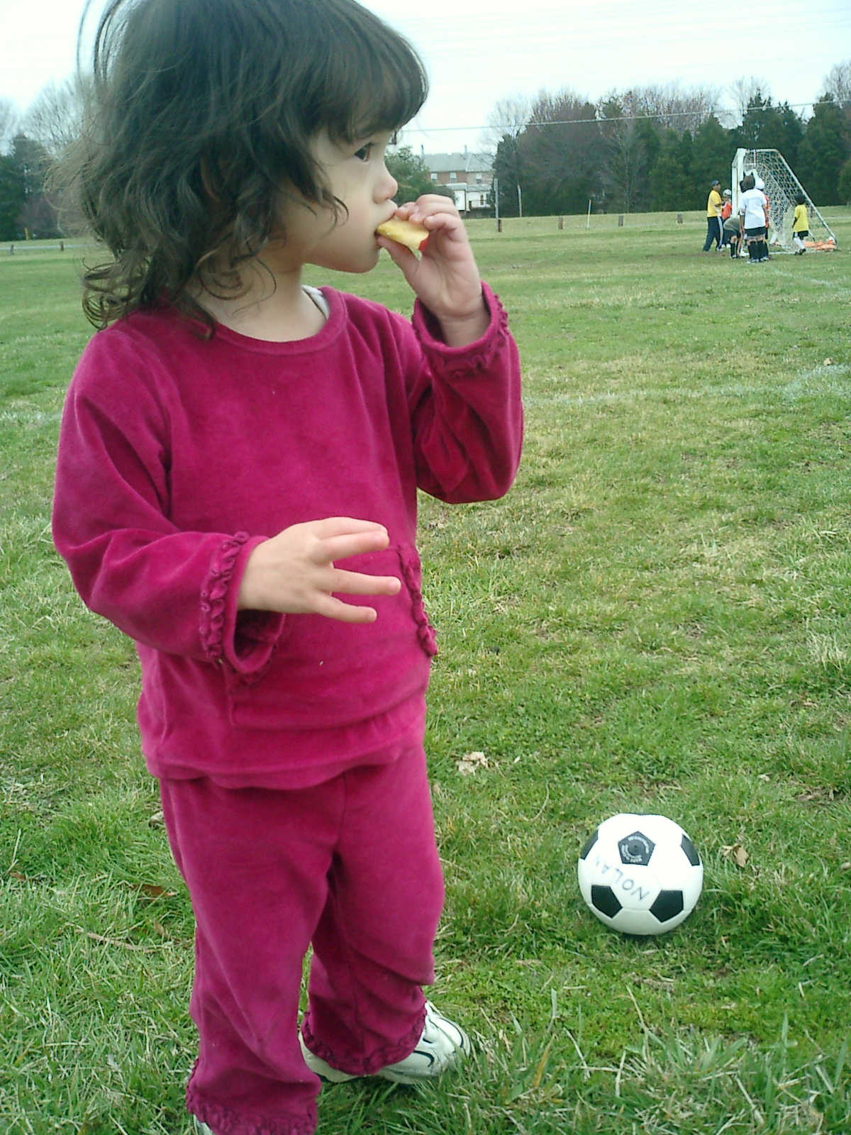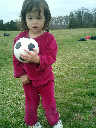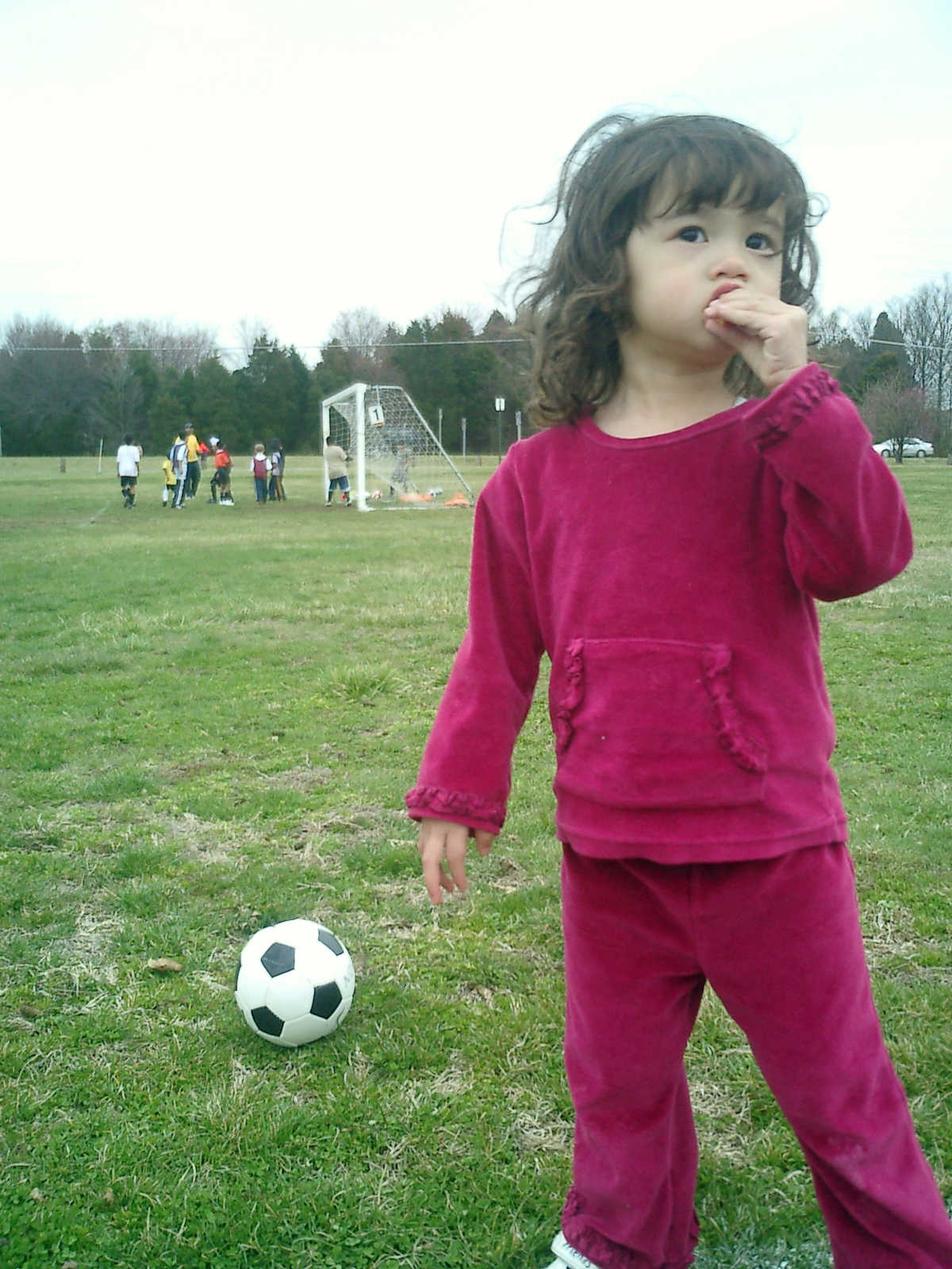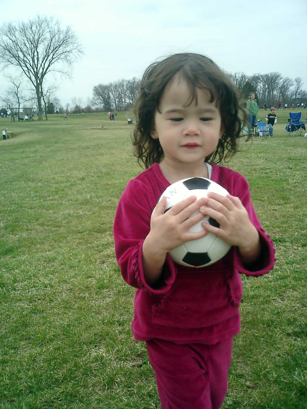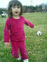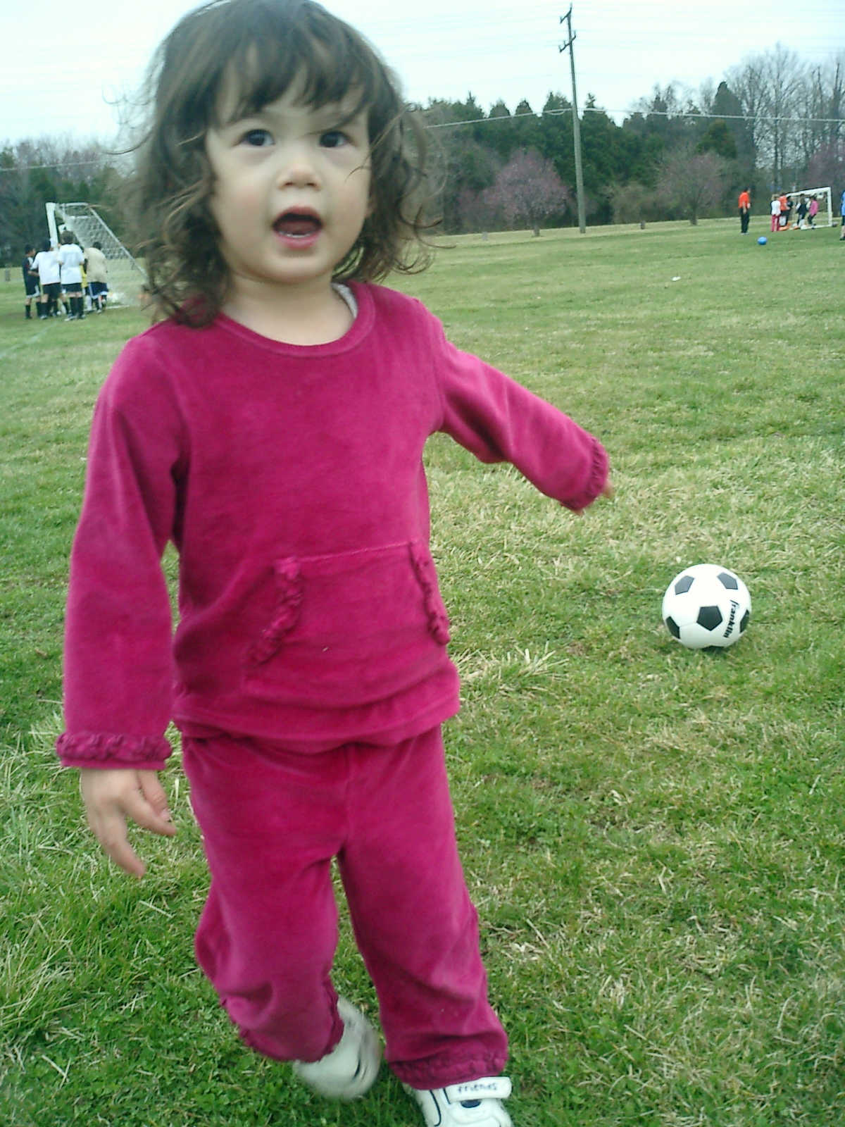 Nadine at 2 years and 4 months (March 27, 2009), visiting Nolan's soccer practice. Nadine, do you want to play soccer too? You can really kick the ball already!