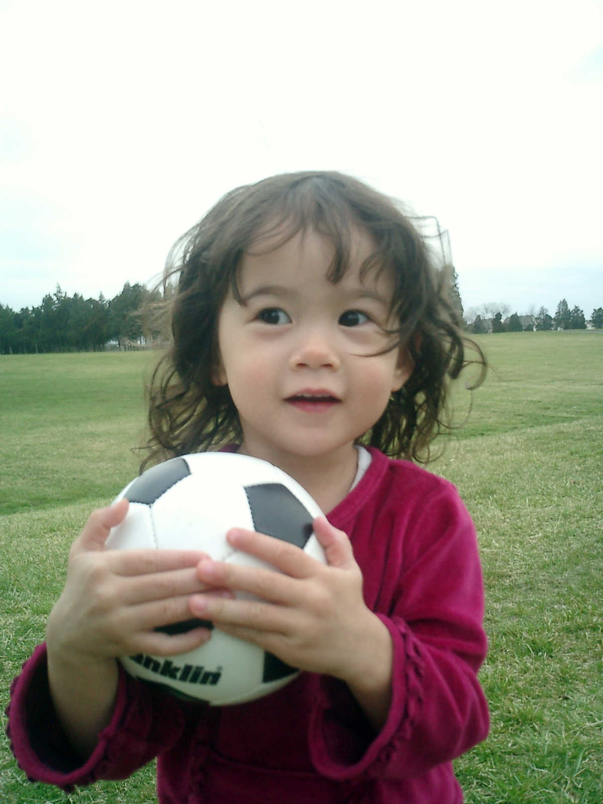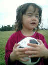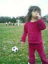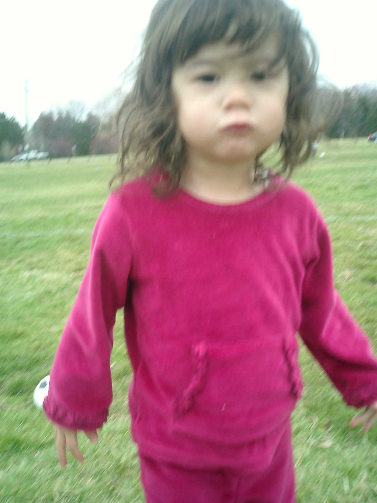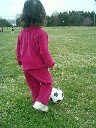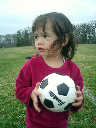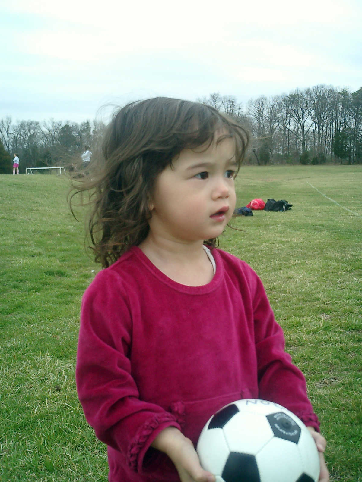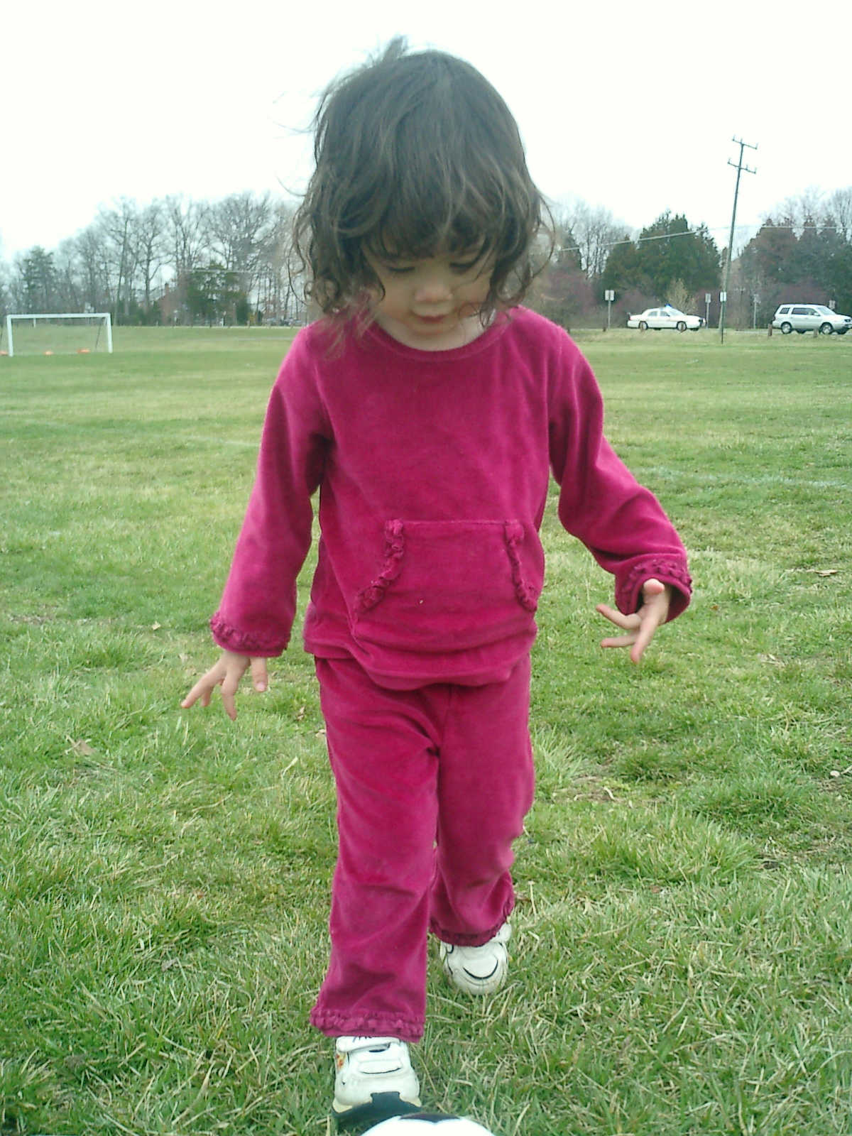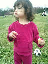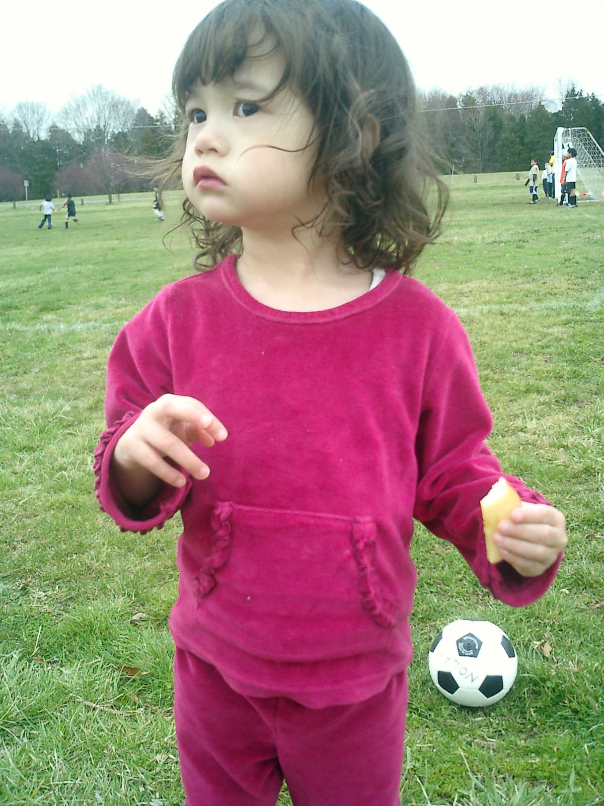 Nadine at 2 years and 4 months (March 27, 2009), visiting Nolan's soccer practice. Nadine, do you want to play soccer too? You can really kick the ball already!