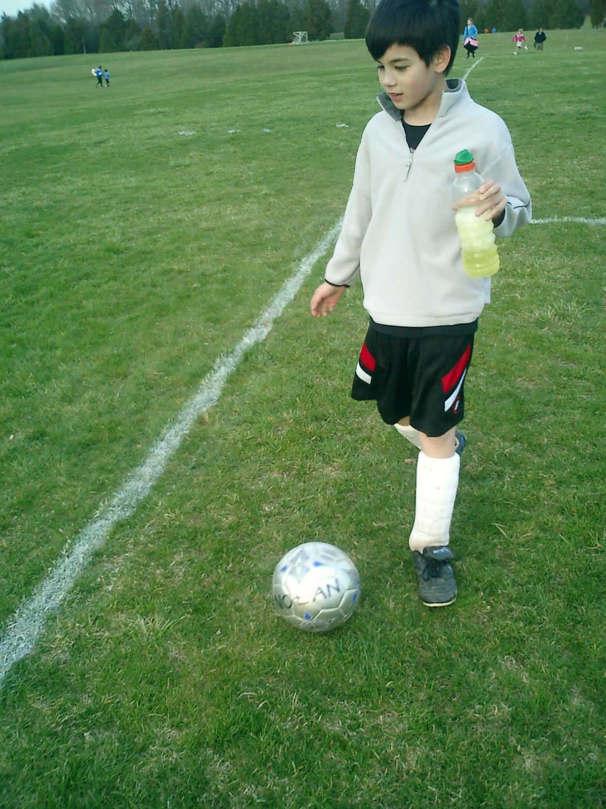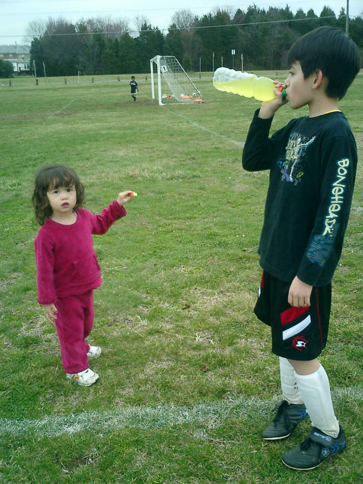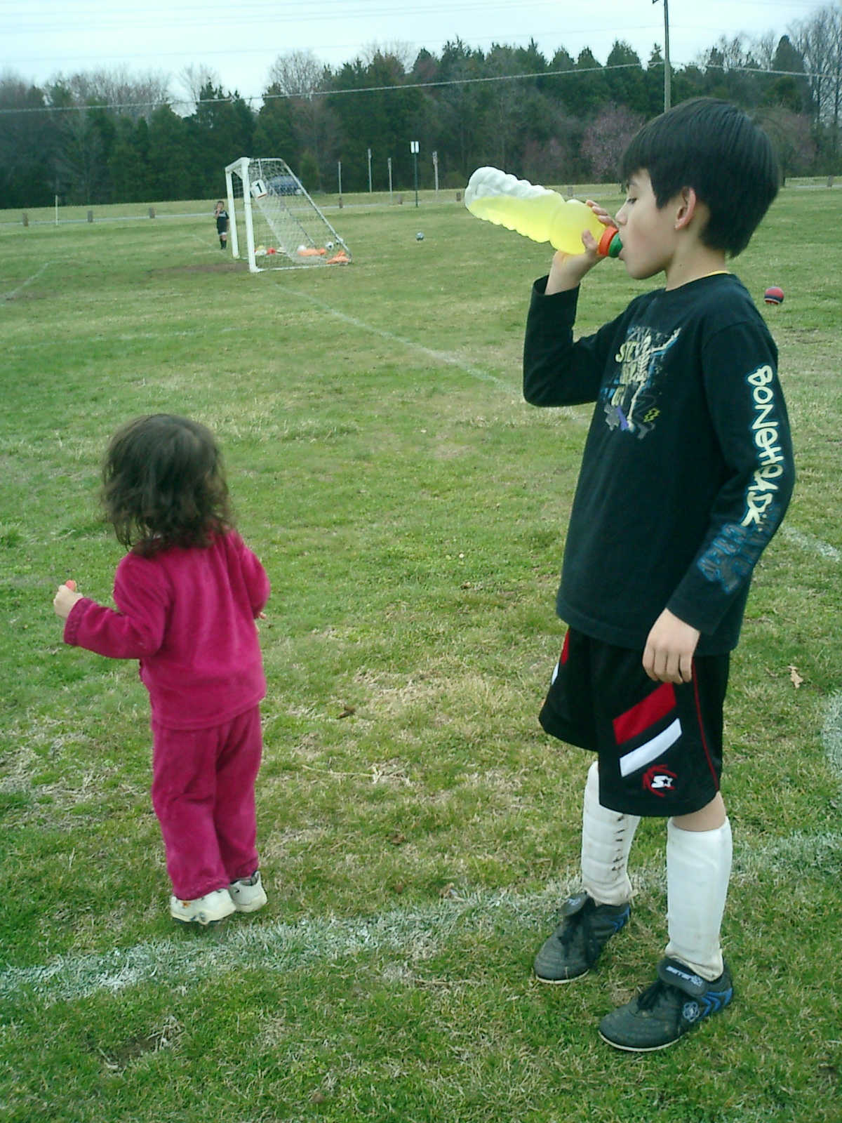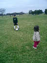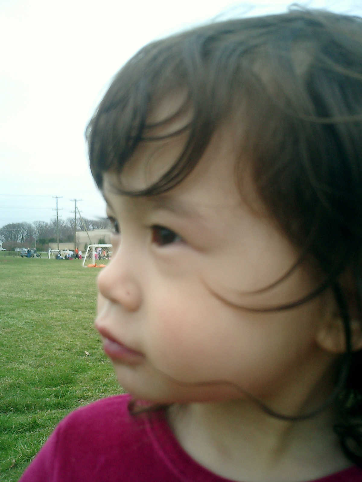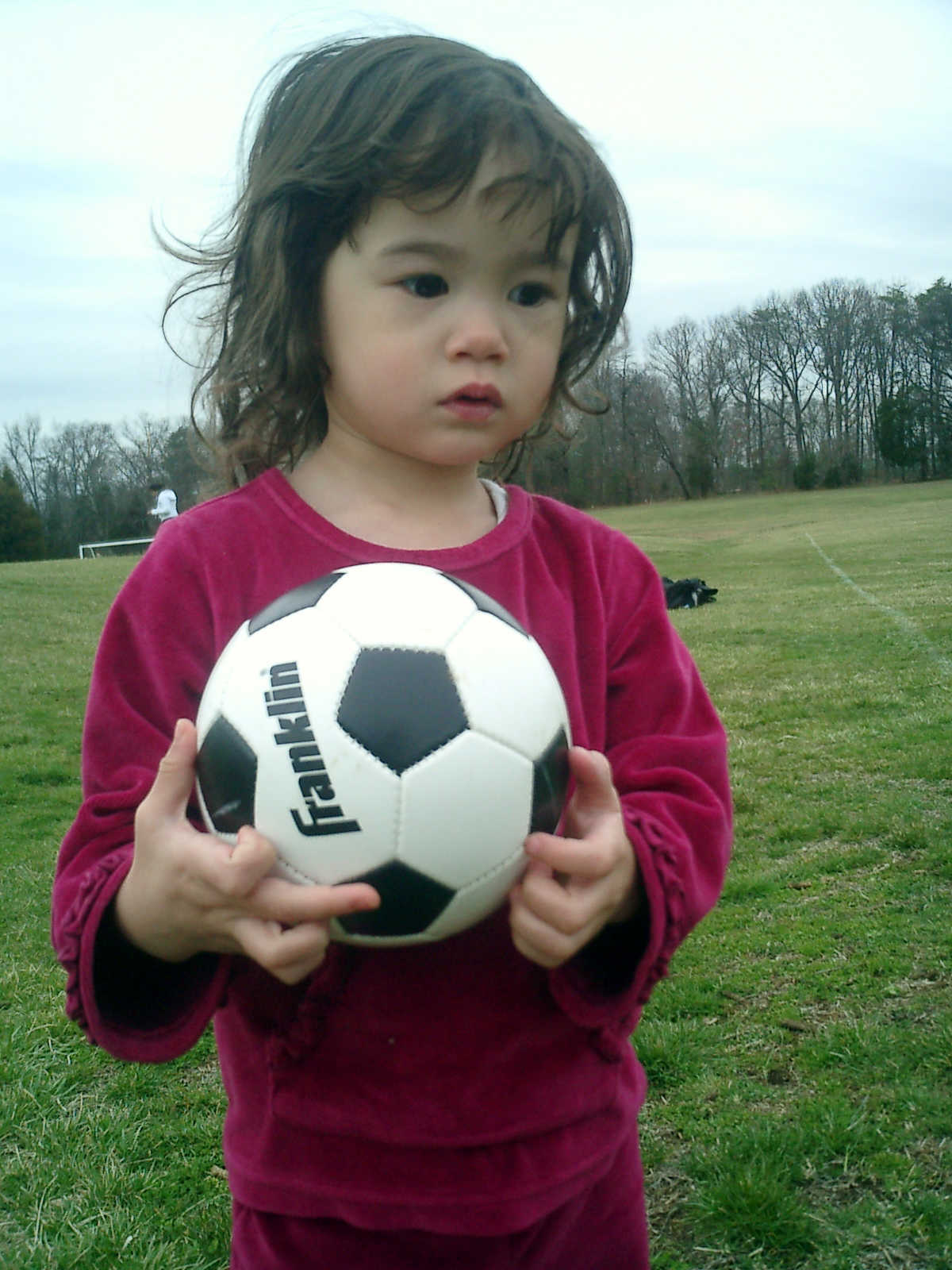 Nadine at 2 years and 4 months (March 27, 2009), visiting Nolan's soccer practice. Nadine, do you want to play soccer too? You can really kick the ball already!