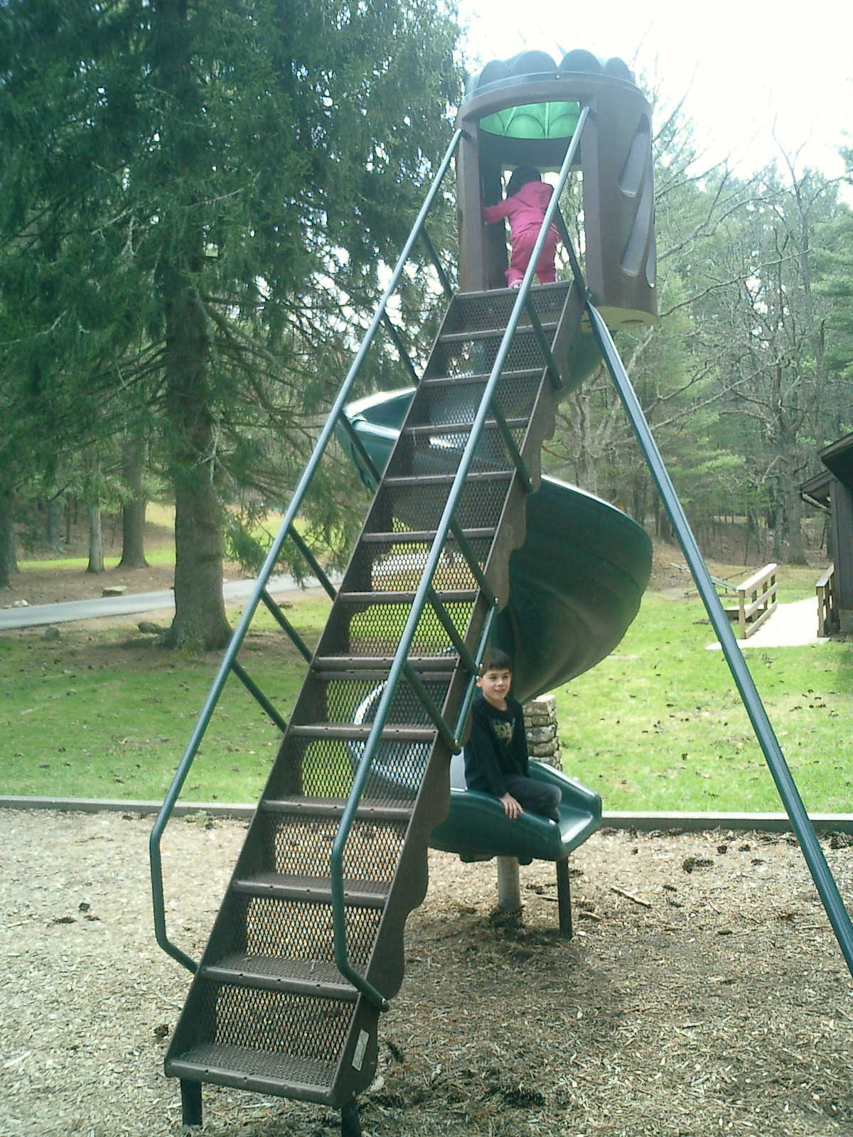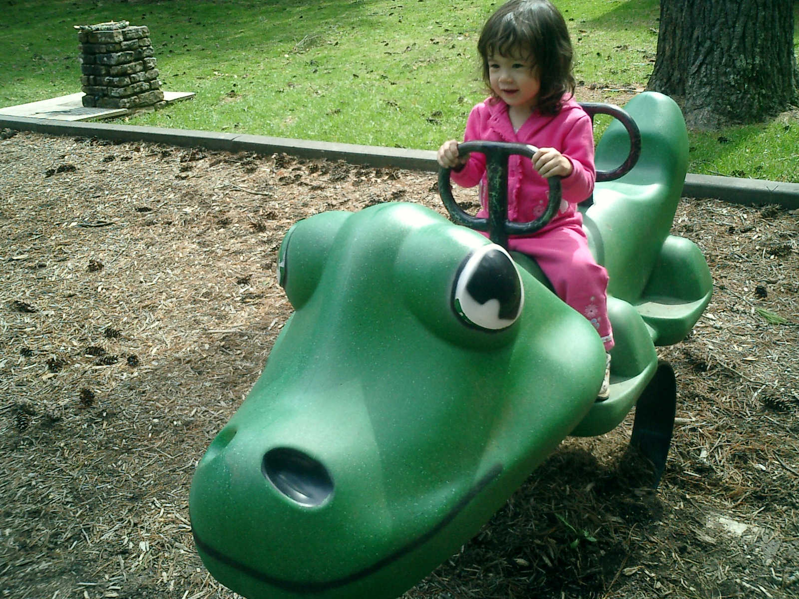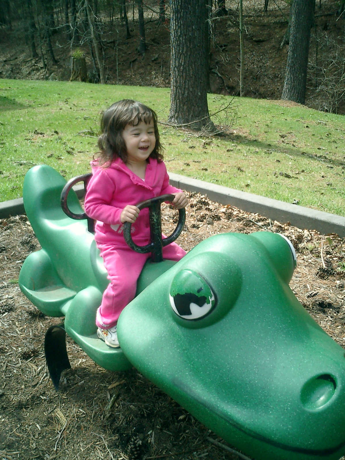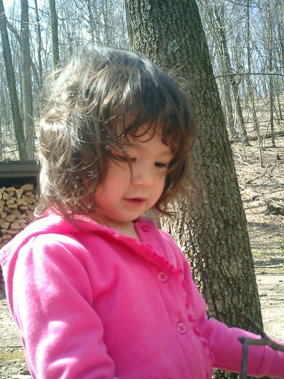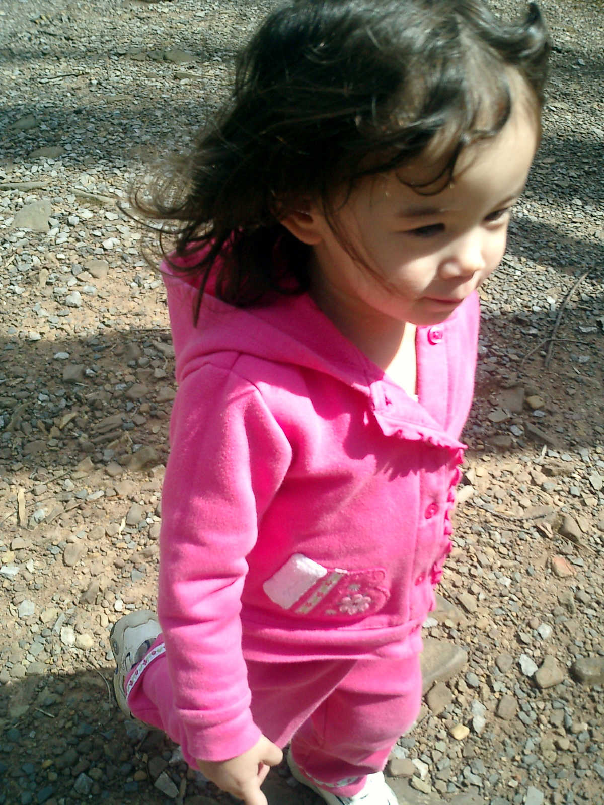 Nadine at 2 years and 4 months (April 5, 2009), enjoying Lost River State Park, including the stream running down the mountainside, and the playground.