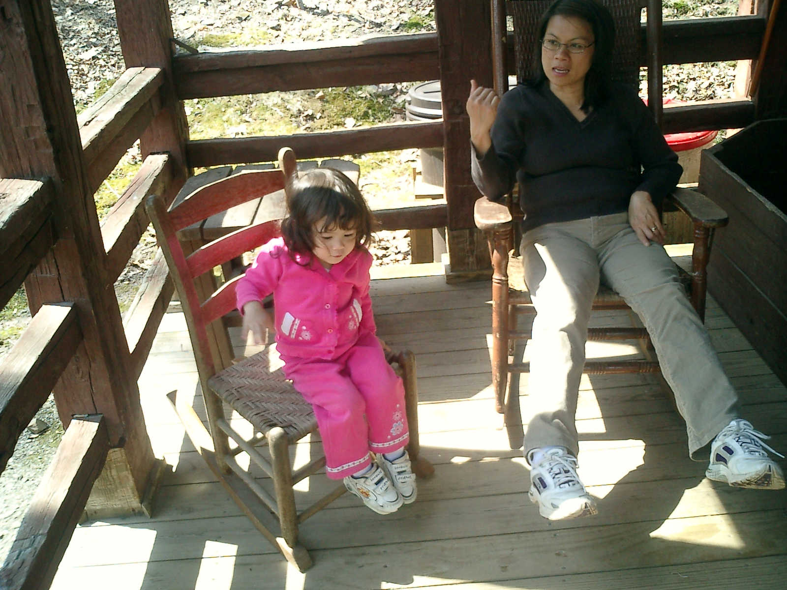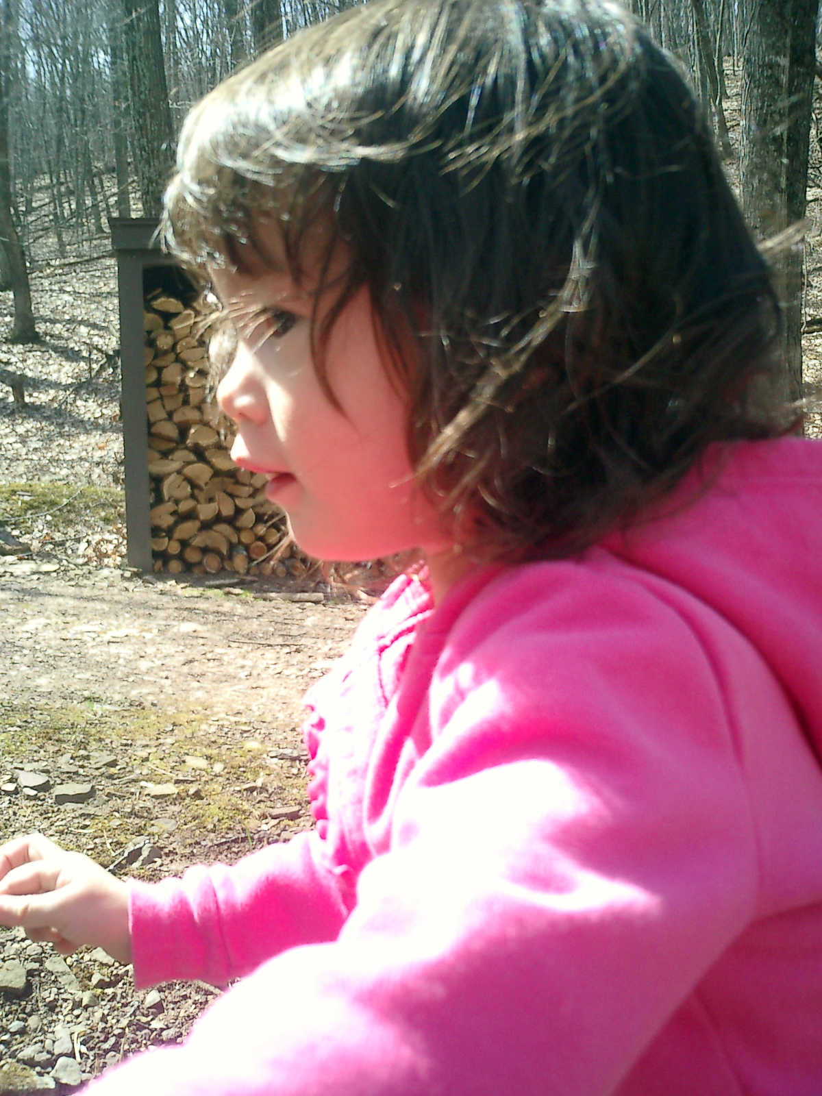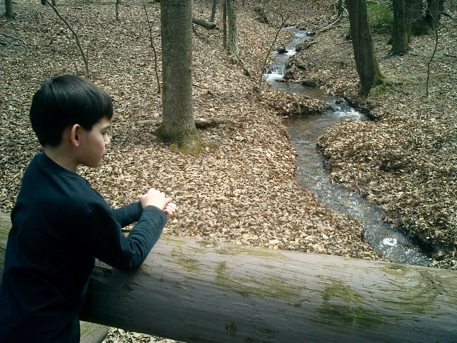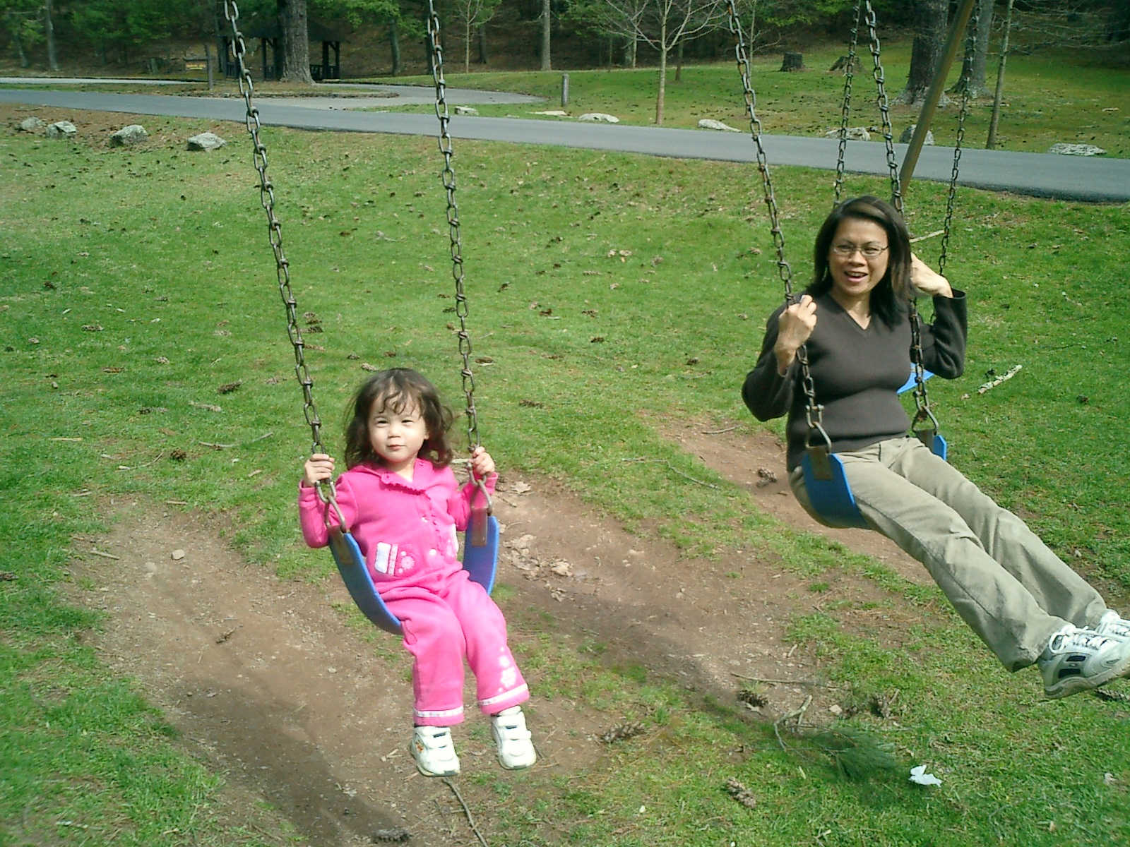 Nadine at 2 years and 4 months (April 5, 2009), enjoying Lost River State Park, including the stream running down the mountainside, and the playground.