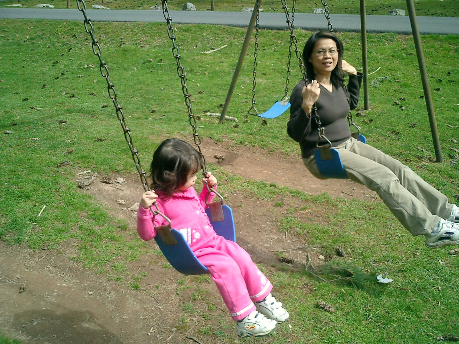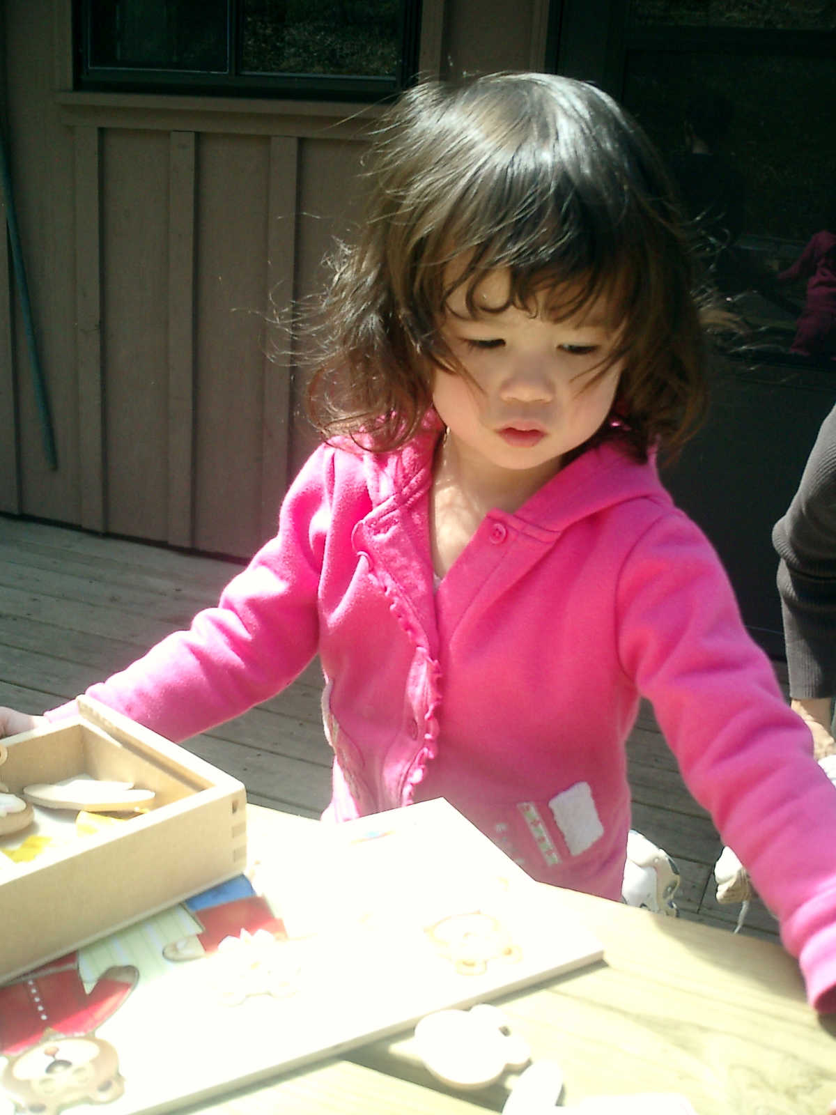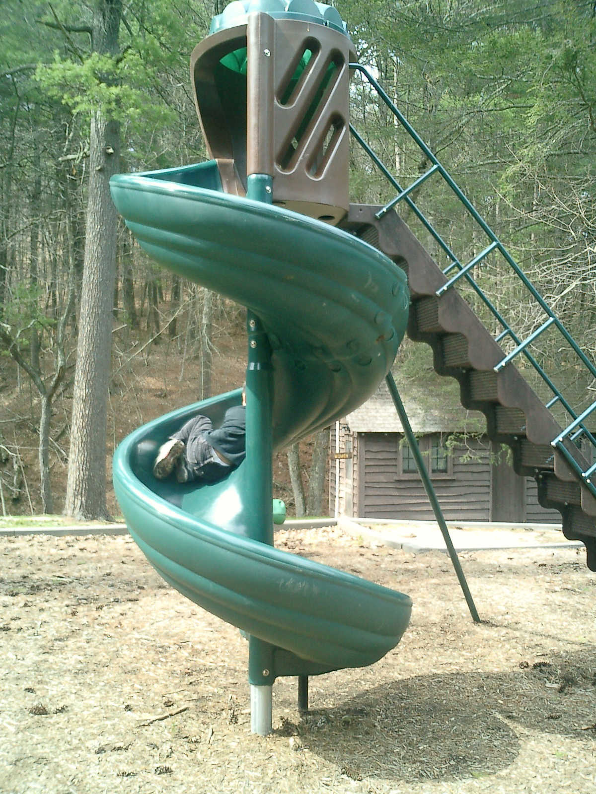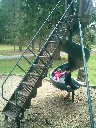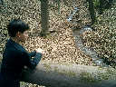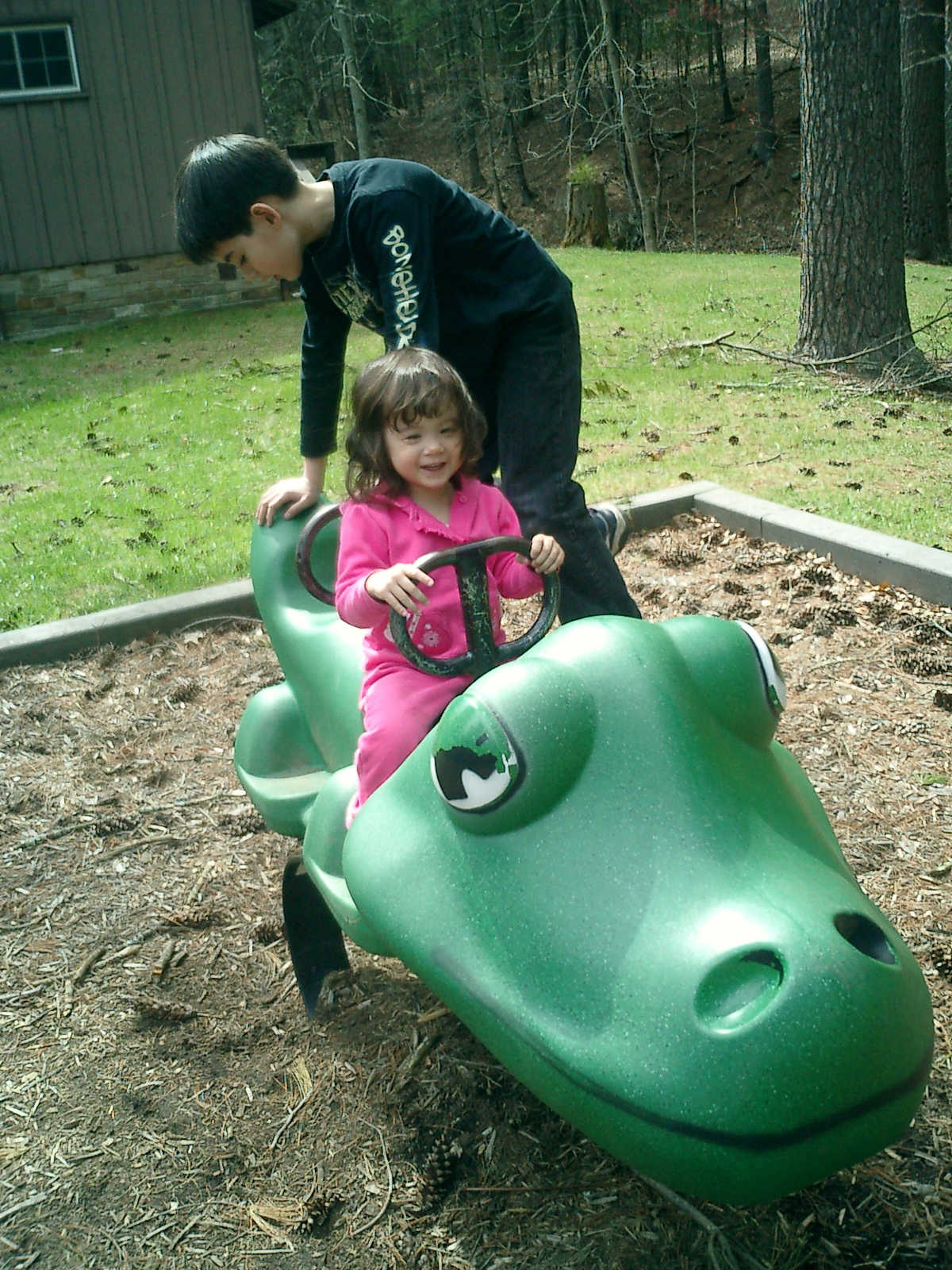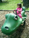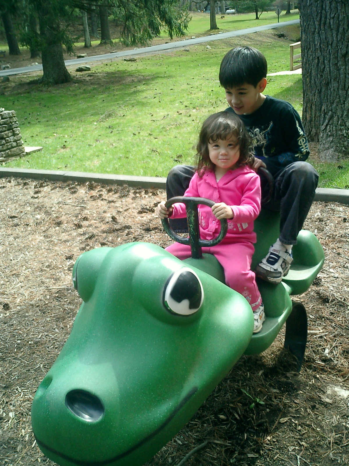 Nadine at 2 years and 4 months (April 5, 2009), enjoying Lost River State Park, including the stream running down the mountainside, and the playground.