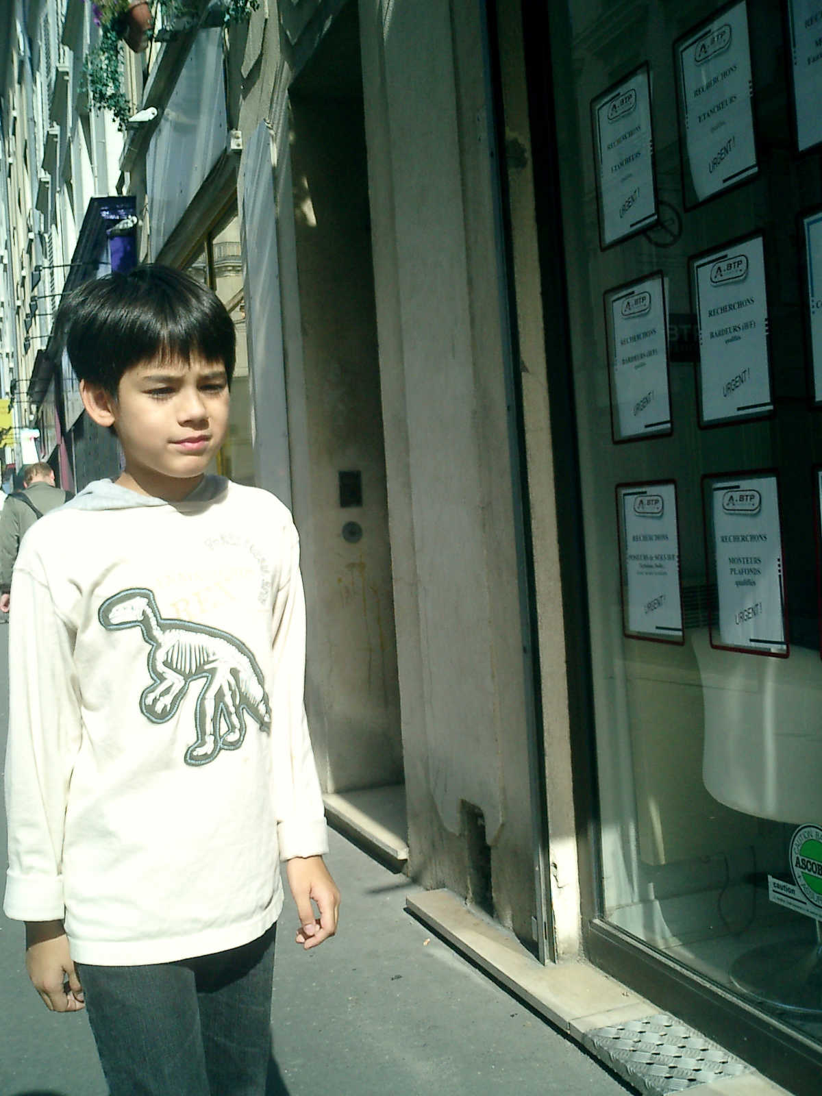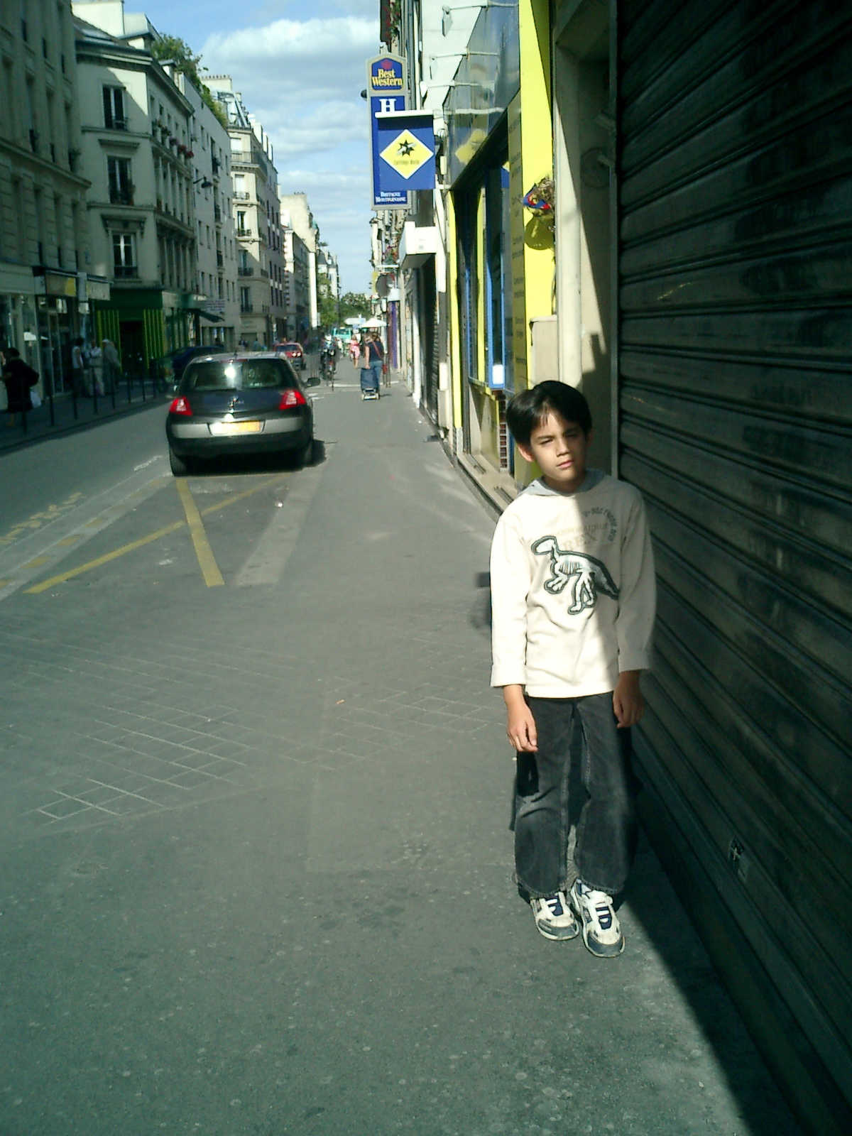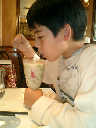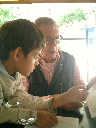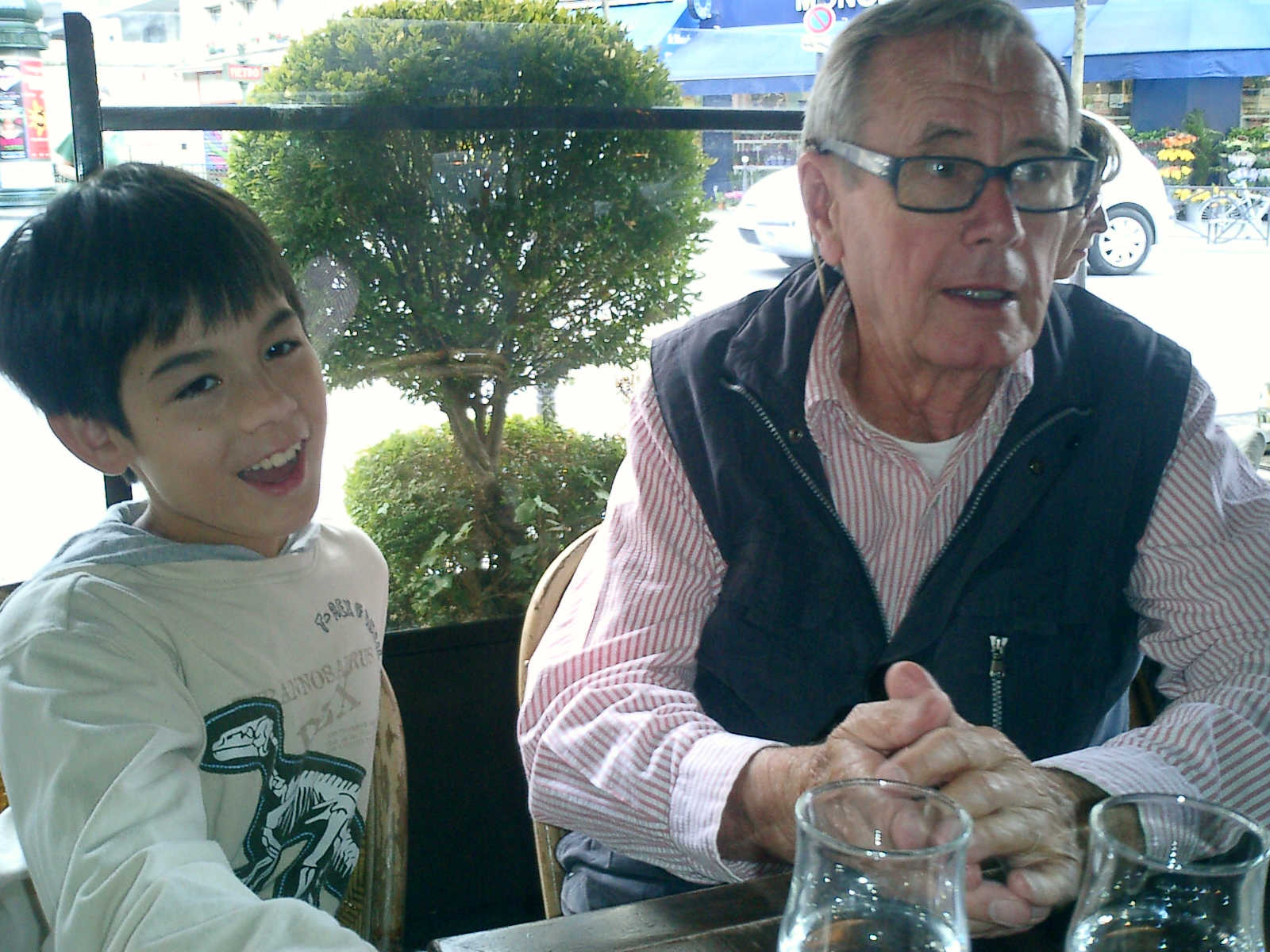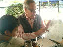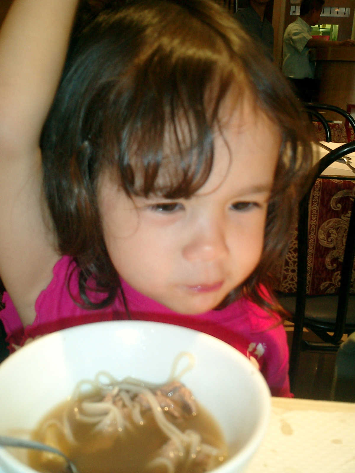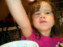 | Nadine at 2 years and 9 months during our 2-week stay in Paris (Aug 18 - Sep 2, 2009), enjoying a wonderful Parisian lunch with our good friend Jazz Decou, current Paris resident. Later that day, off to the Chinese quarter for Thai and Lao food -- yummy! |