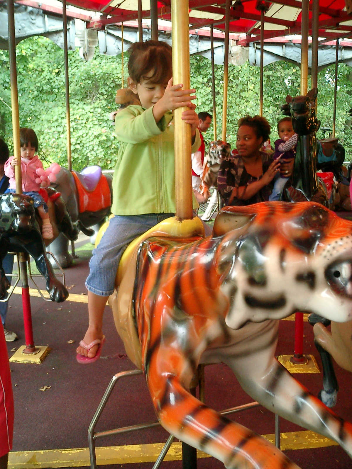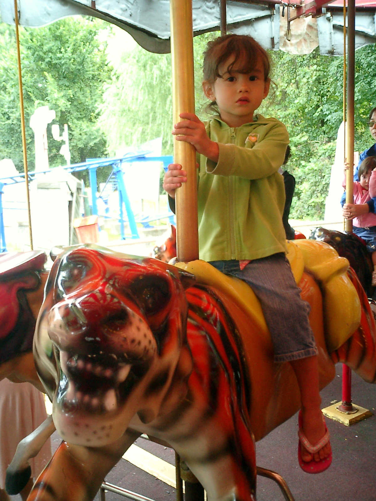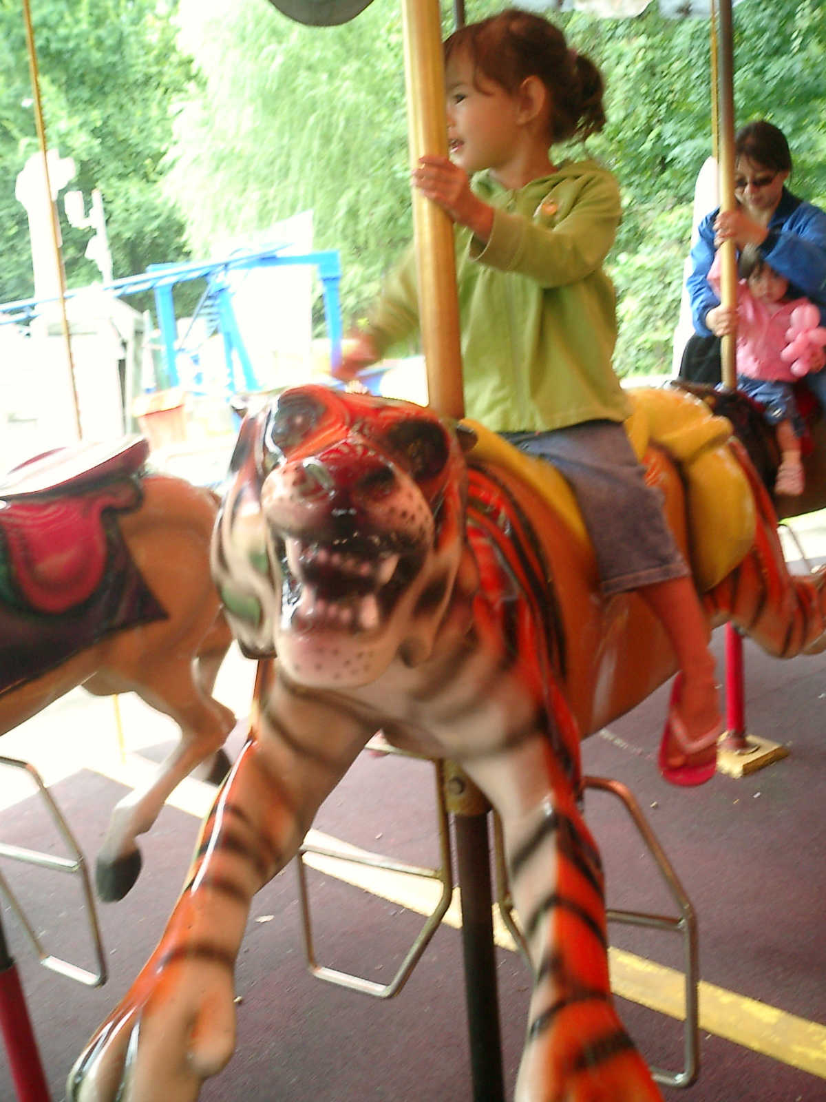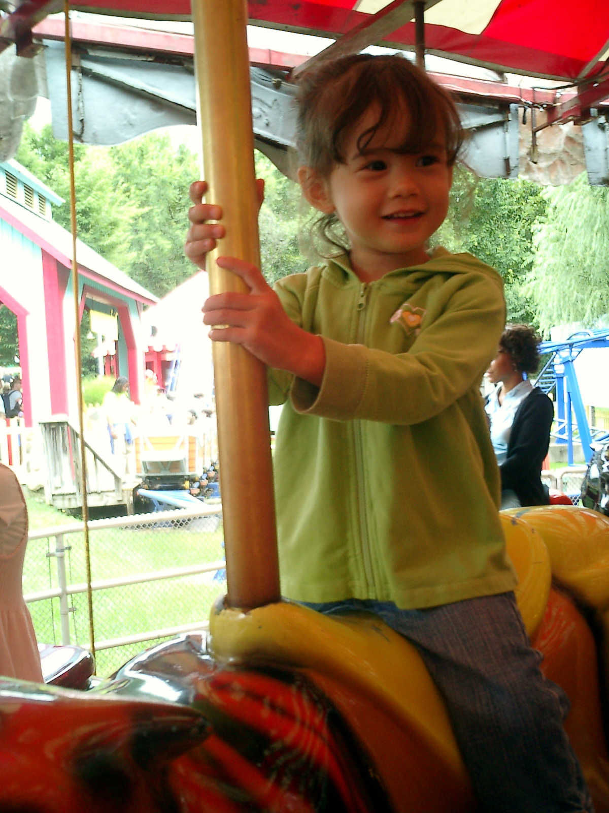Nadine at 2 years and 10 months (Sep 12, 2009), visiting Six Flags Amusement Park. Nadine, you sure had fun on the merry-go-round and other rides!