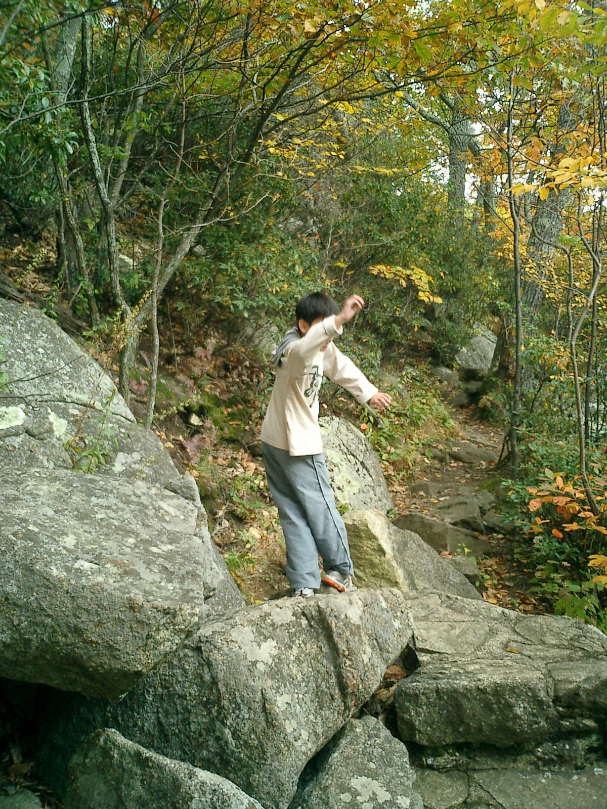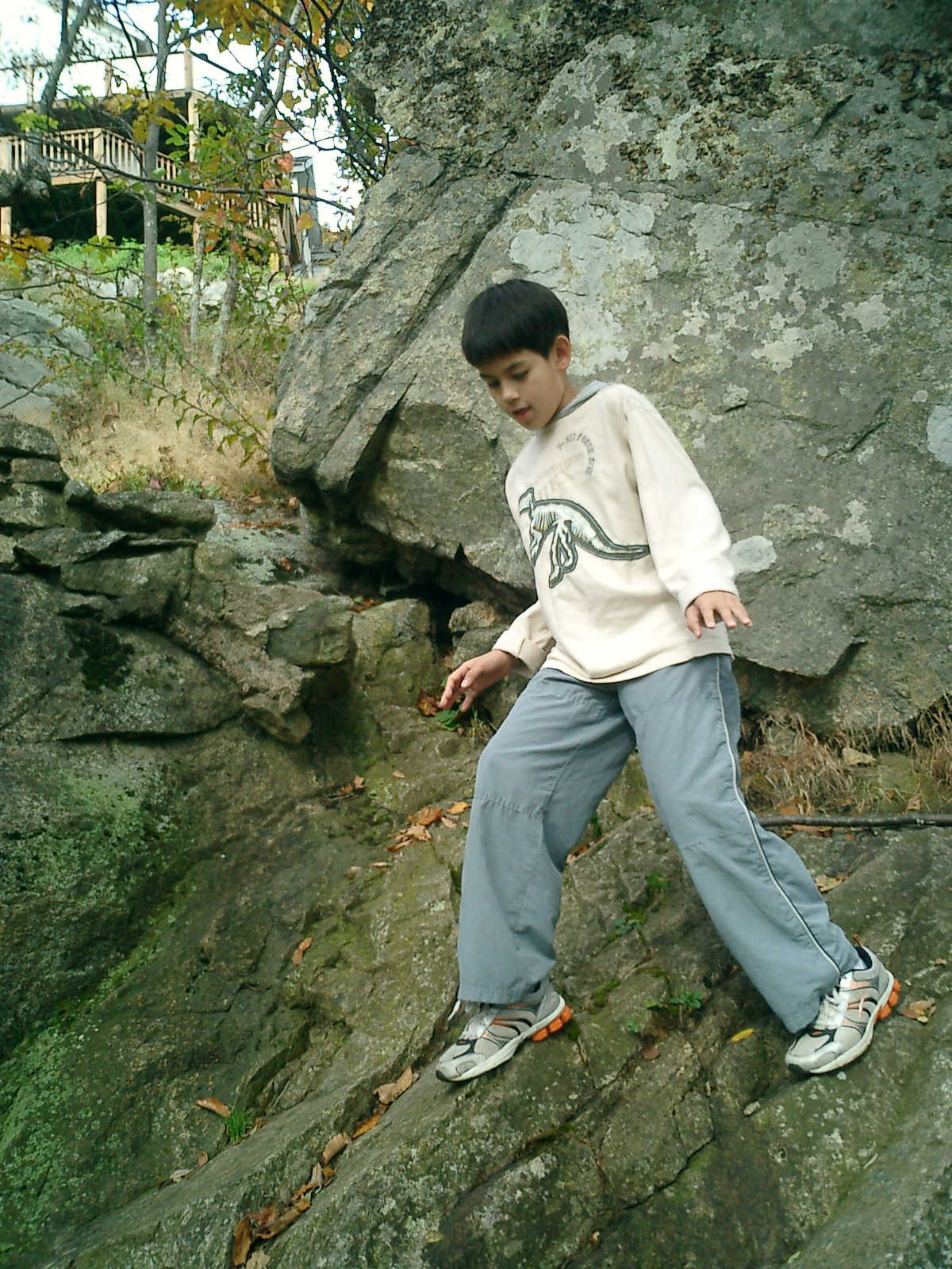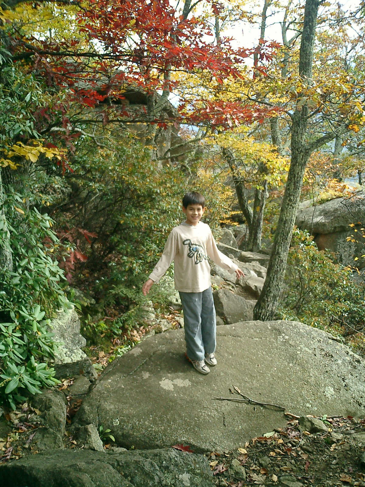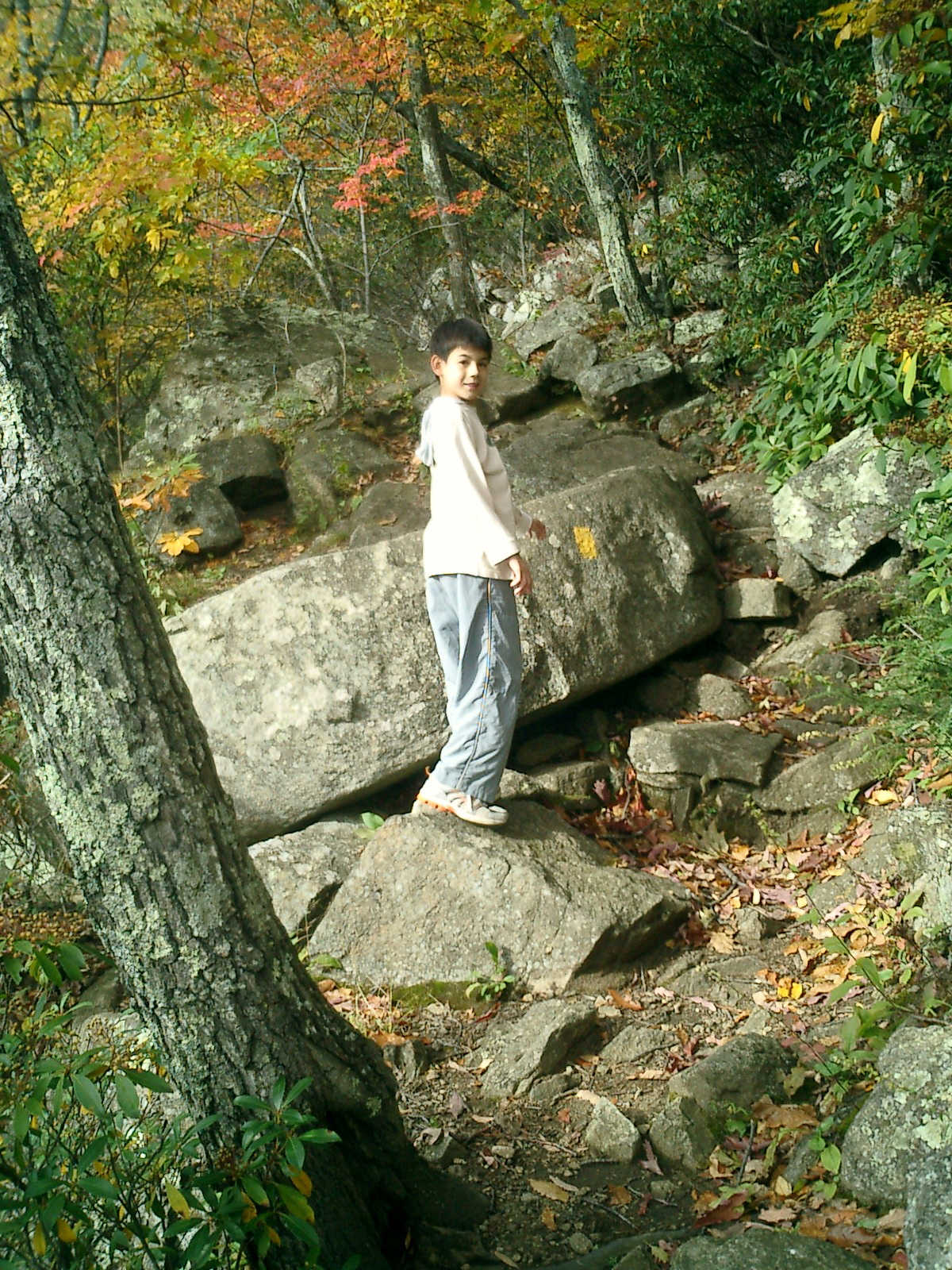 Nadine at 2 years 11 months (Oct 10, 2009), on a weekend trip to Wintergreen ski resort near Charlottesville, VA. Nadine, how do you like the mountains? And Nolan, you sure do like climbing on this rocks!
