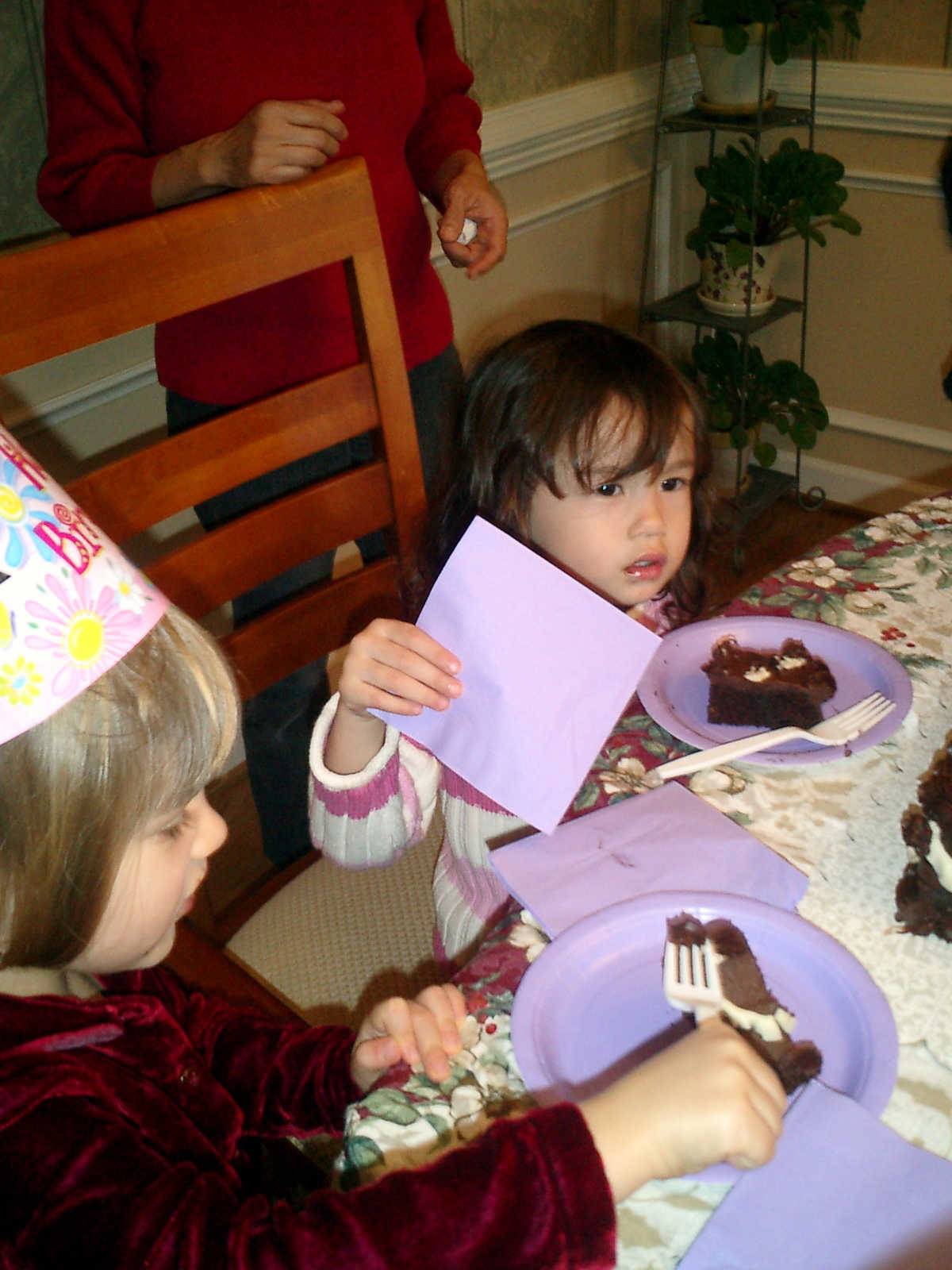 Nadine at 3 years (Dec 5, 2009), celebrating her birthday with her neighborhood playgroup friends. Wow Nadine, so many little girls, wearing their cute princess crowns, and eating cake!