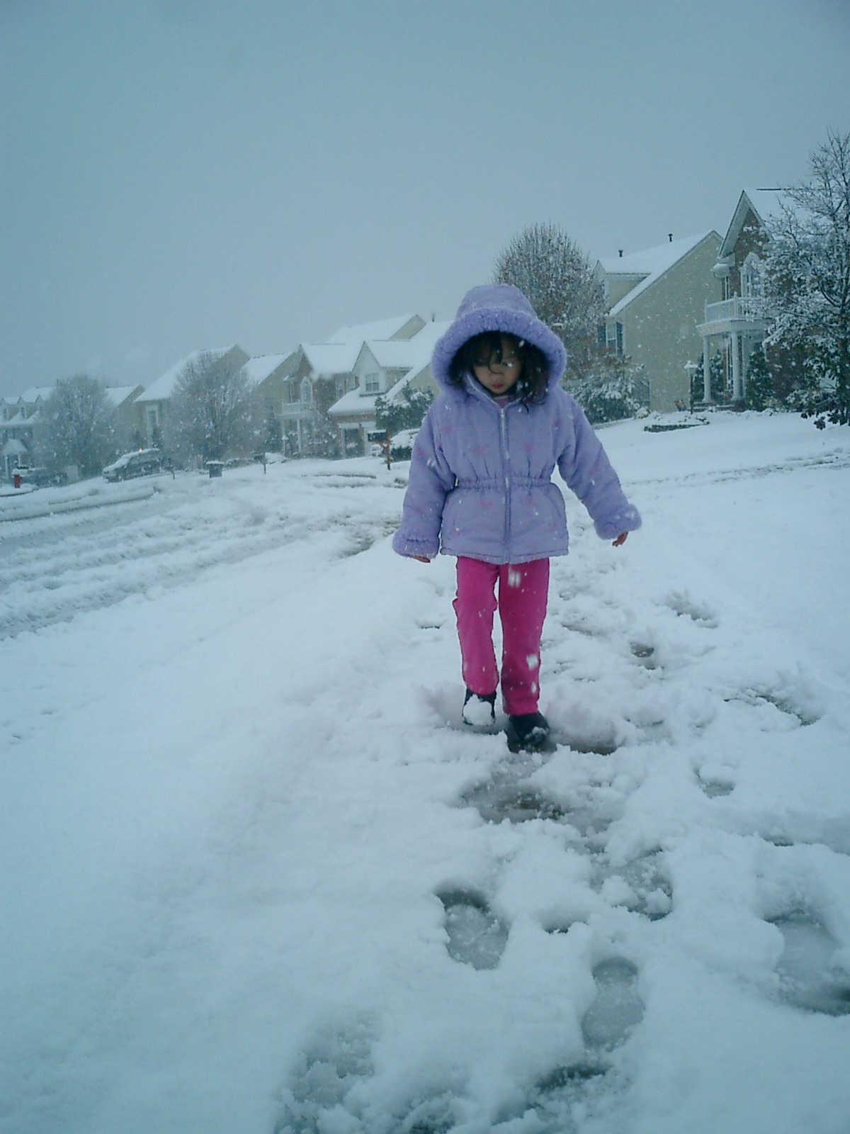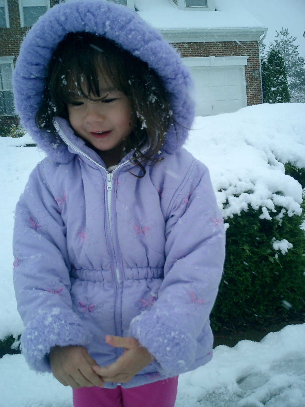 Nadine at 3 years (Dec 5, 2009), enjoying the first real snow of the year. Nadine, that's a big piece of snow you picked up!