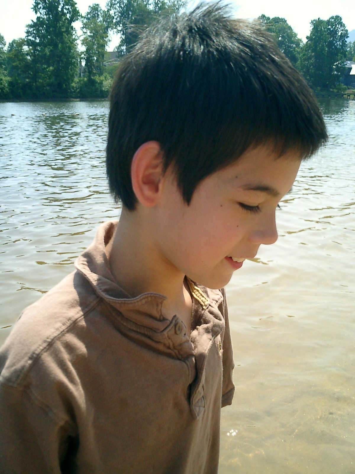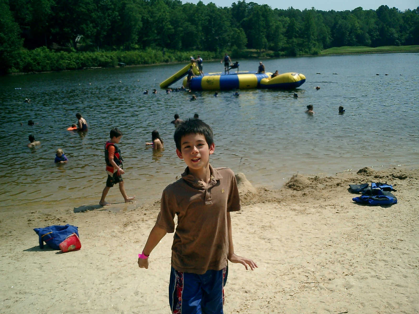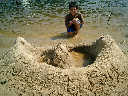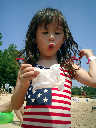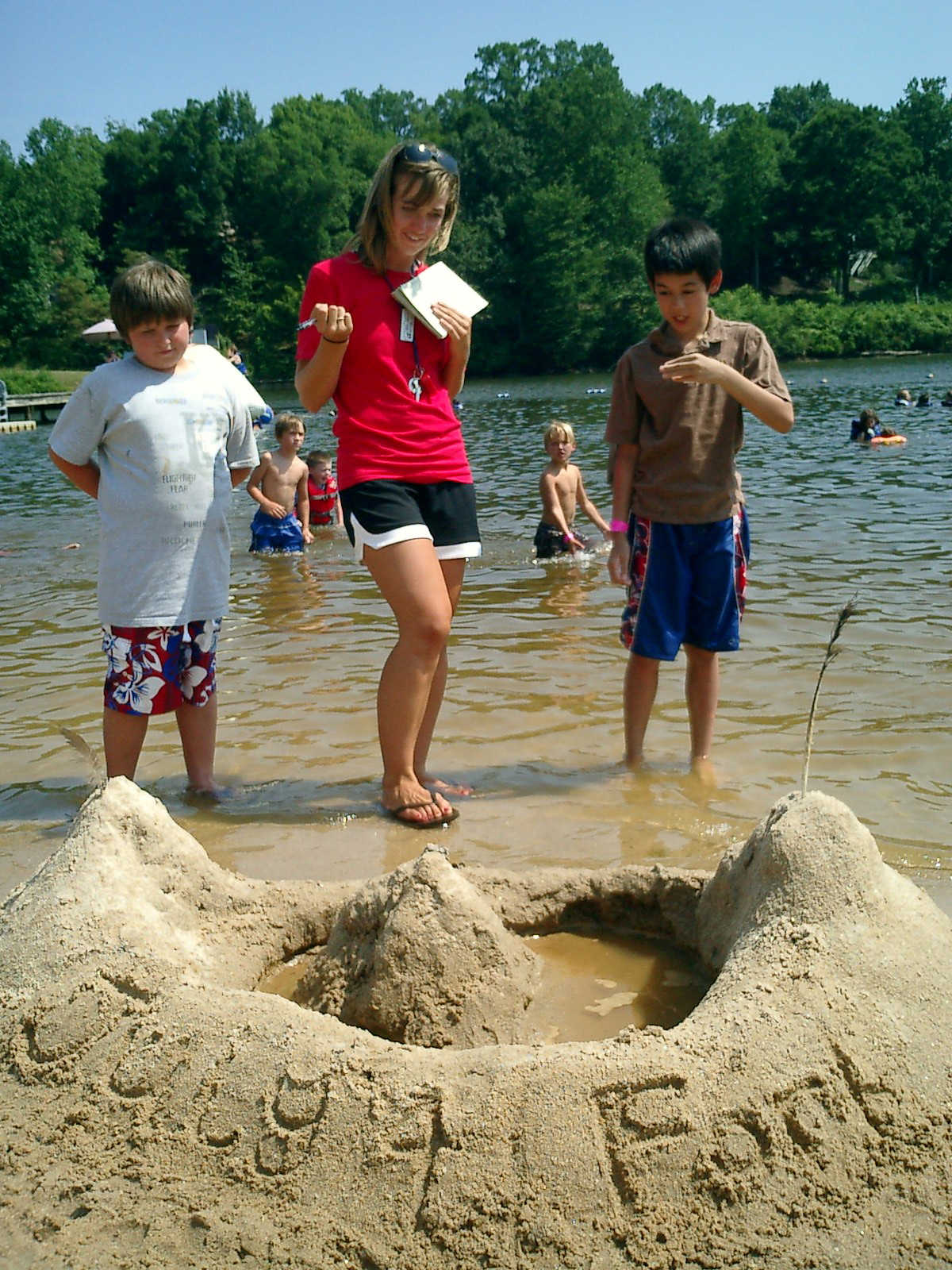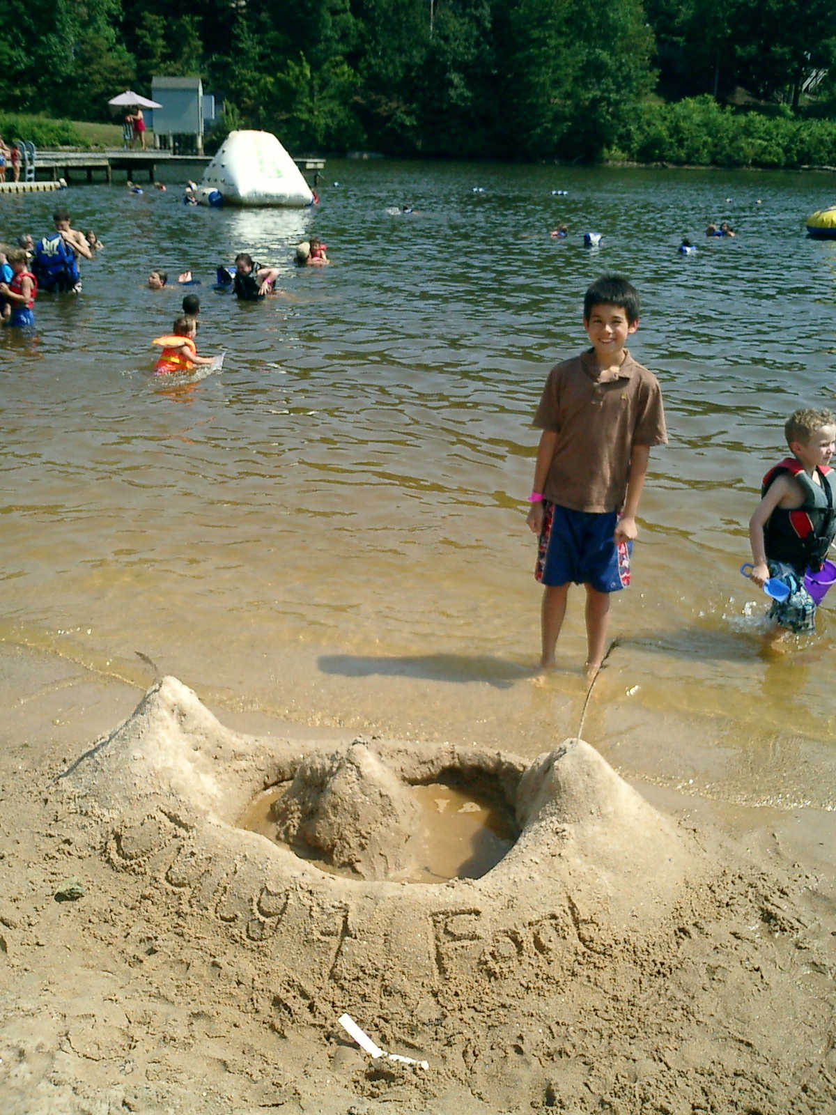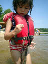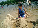 Nadine at 3 years and 8 months (July 5, 2010), at the iWintergreen lake, enjoying the water and helping build Nolan's sand castle!