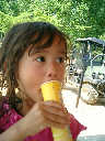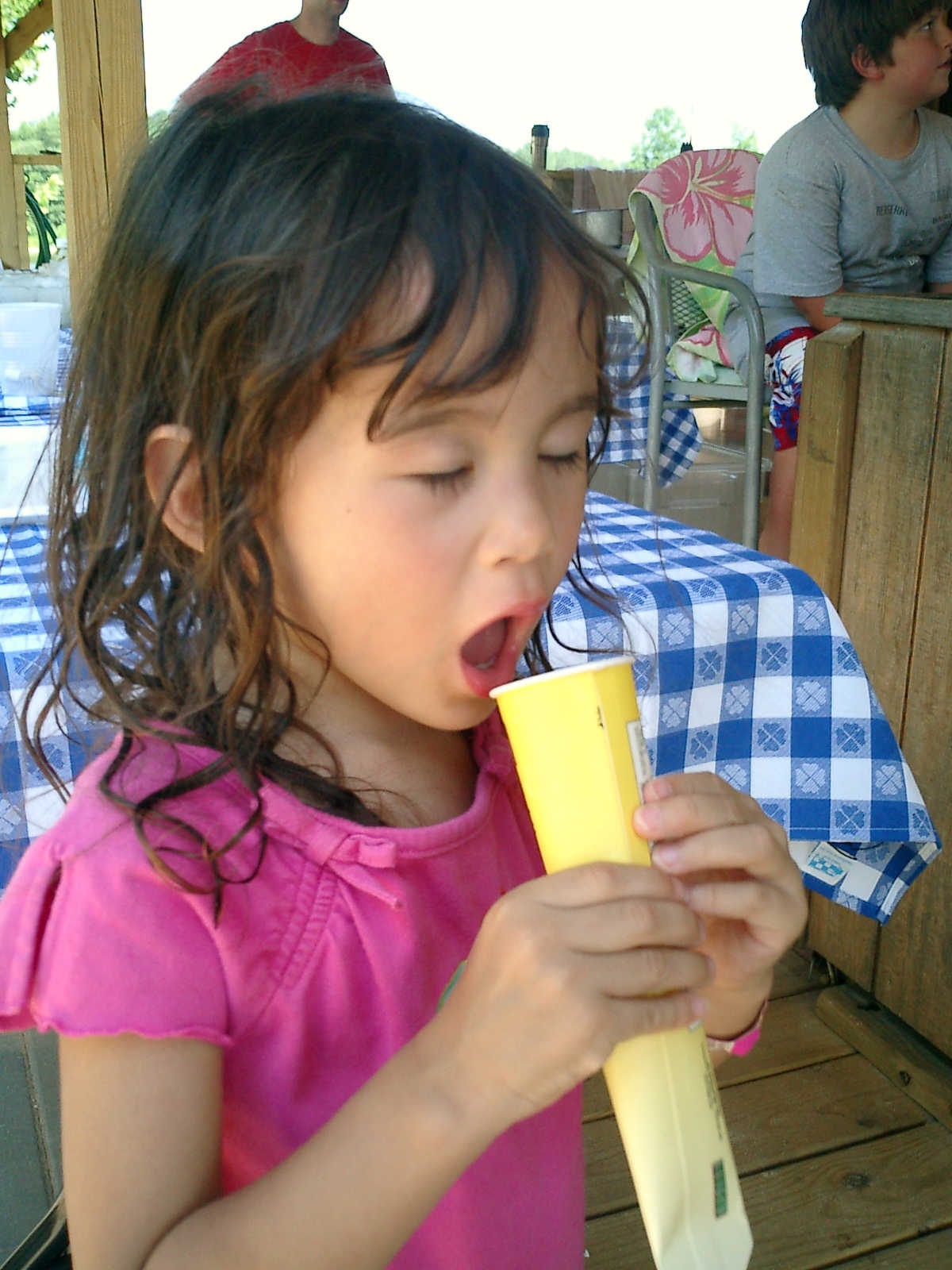 Nadine at 3 years and 8 months (July 5, 2010), enjoying a frozen lemondae popsicle. Nadine, you really ate that fast! (Most delicious?)