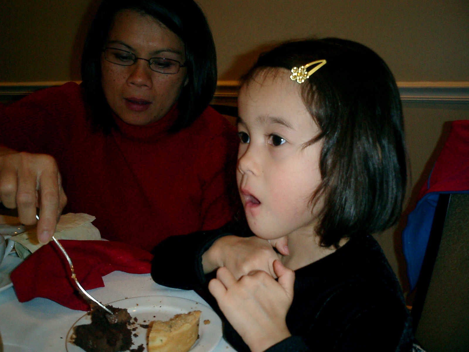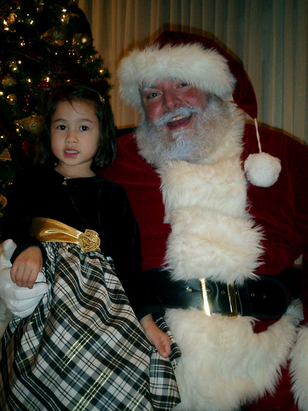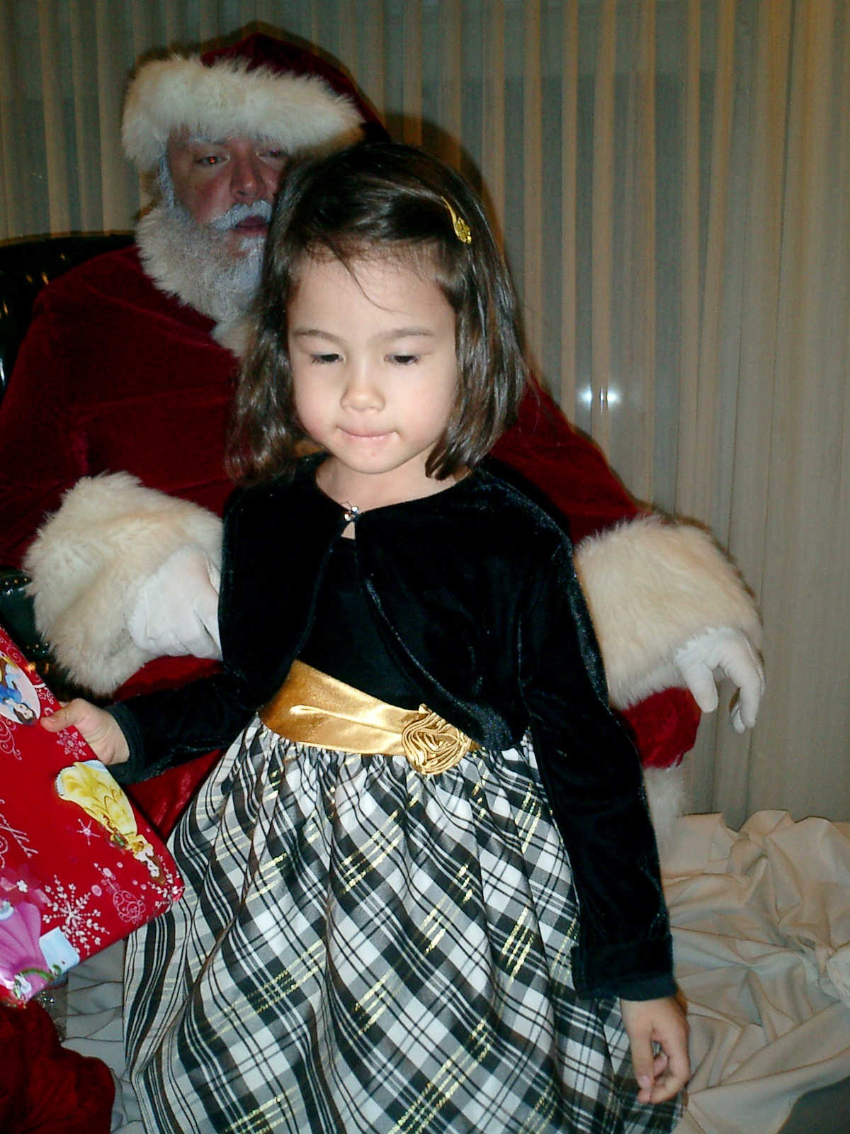 Nadine at 4 years (Dec 7, 2010), visiting Santa Claus at the annual party. Nadine, you look so serious! Did you like all the wonderful food? (You sure did!)