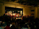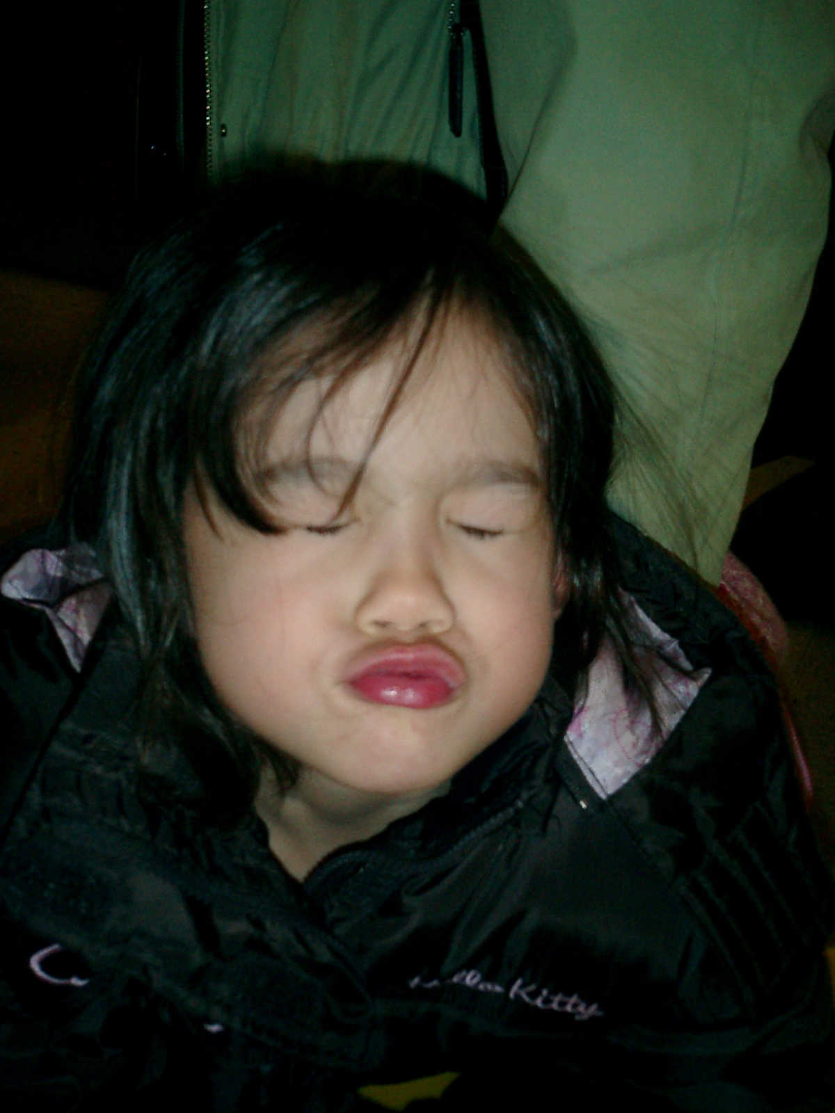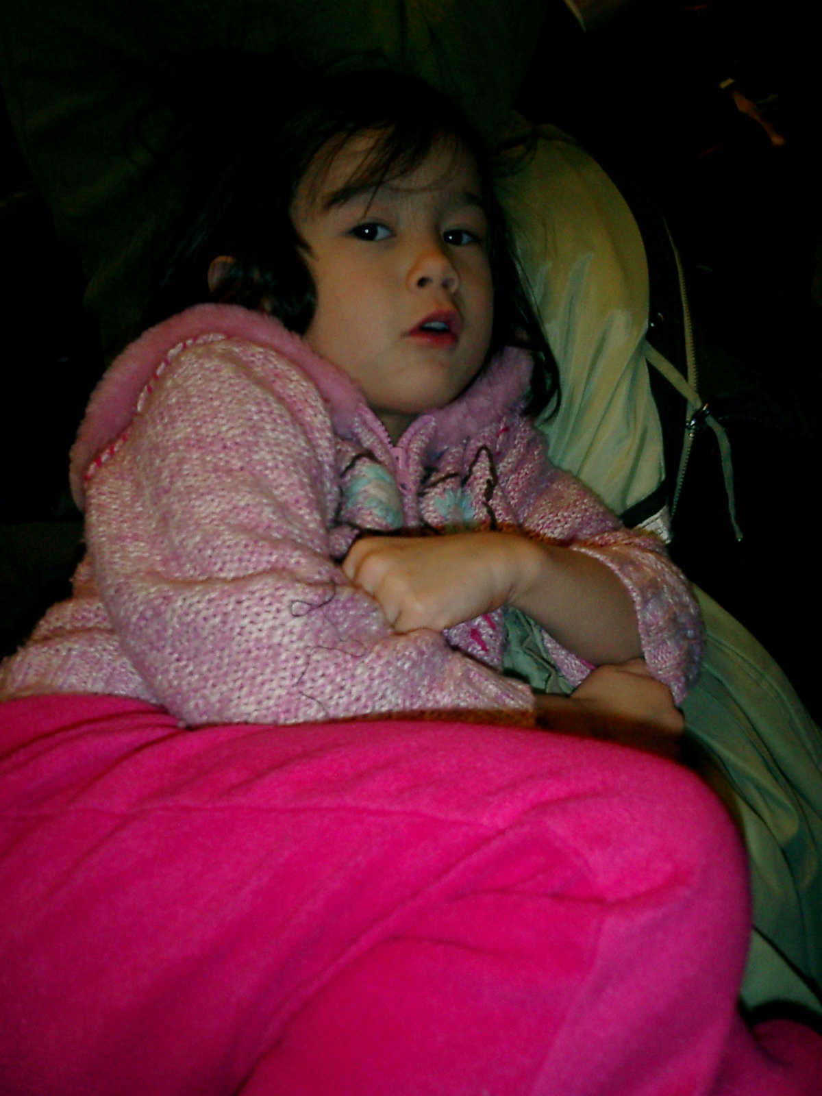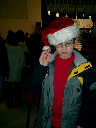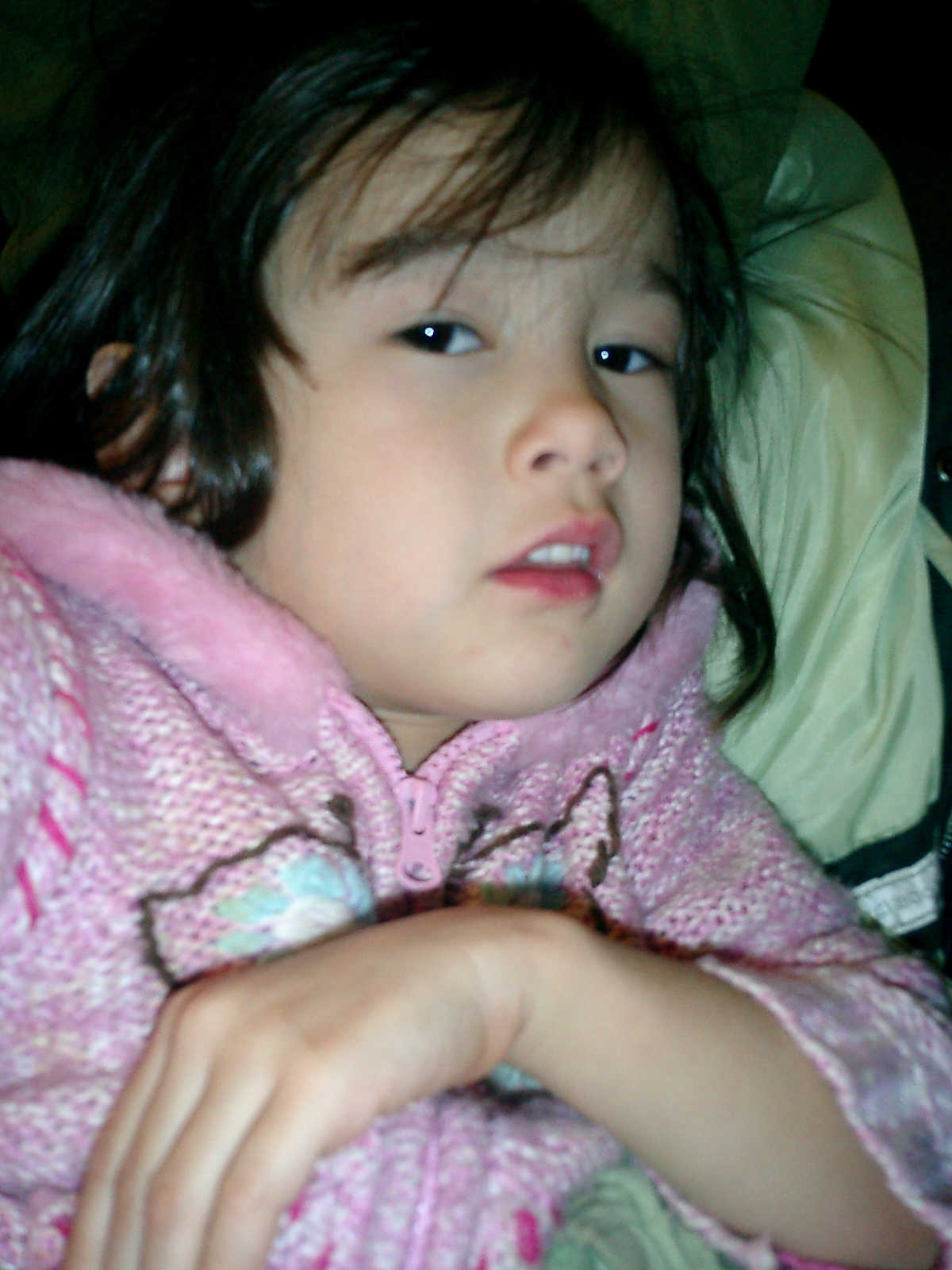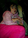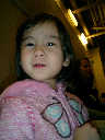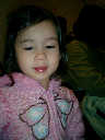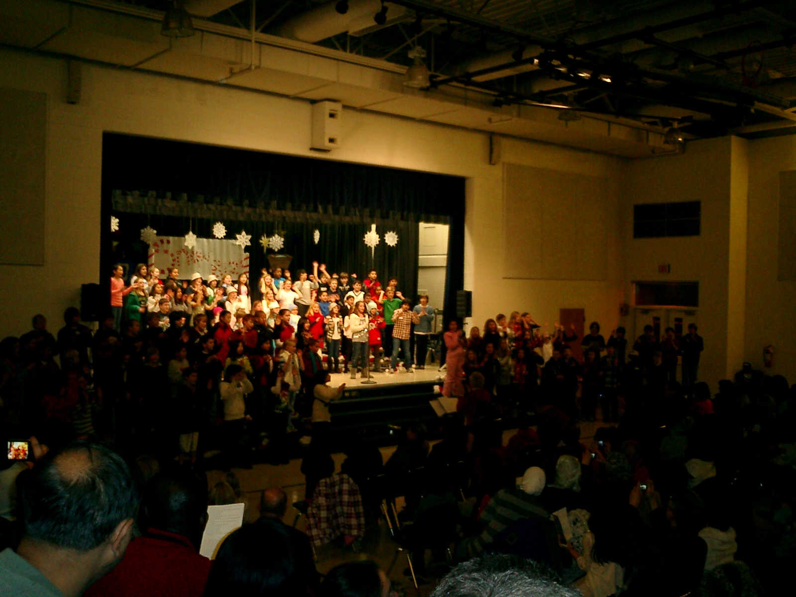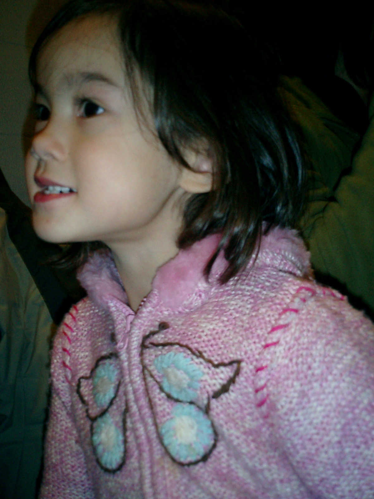 Nadine at 4 years and 1 month (Dec 21, 2010), clowning around at Nolan's school Winter Holiday play. Is that Nolan with the silly hat?