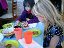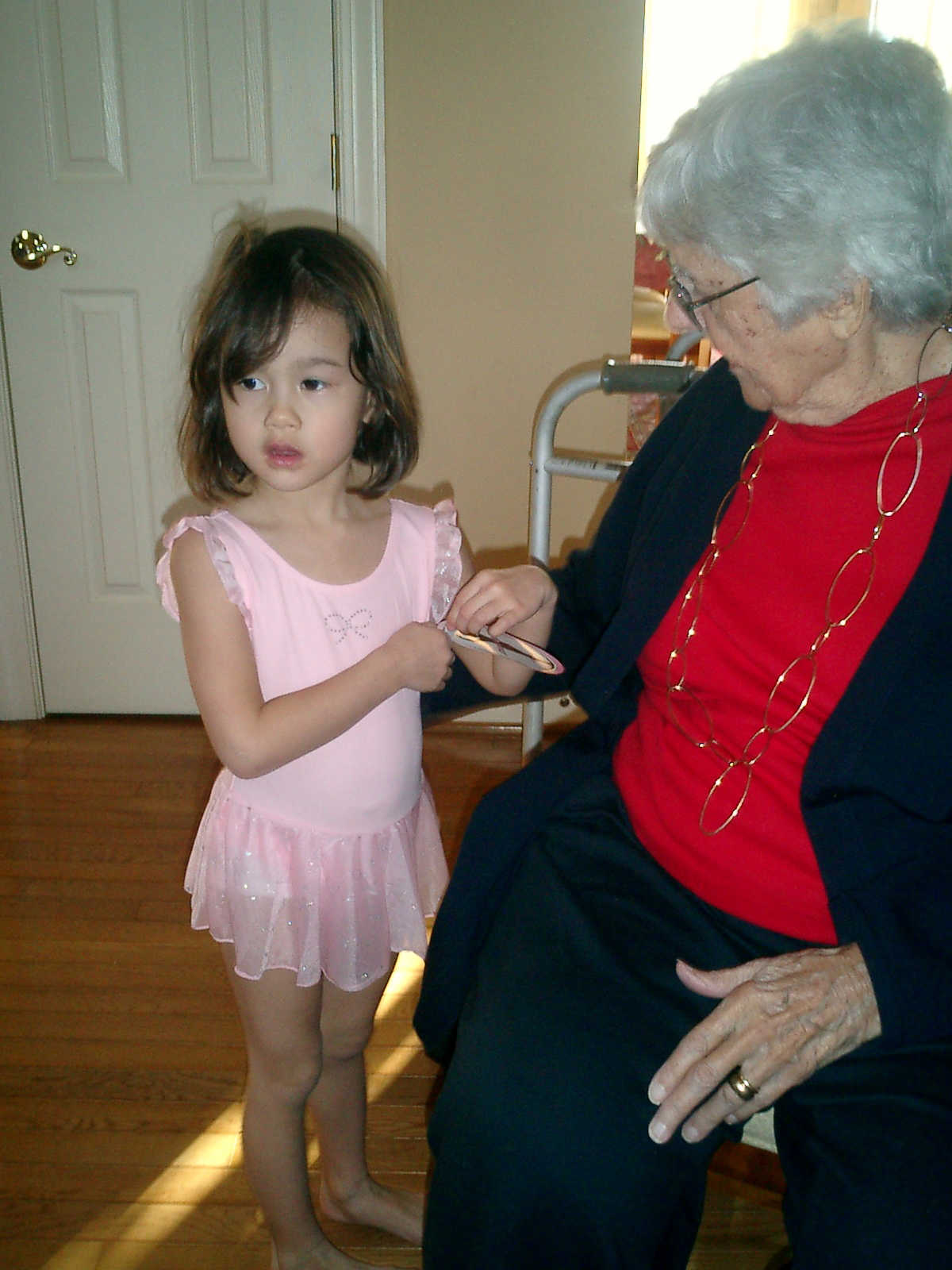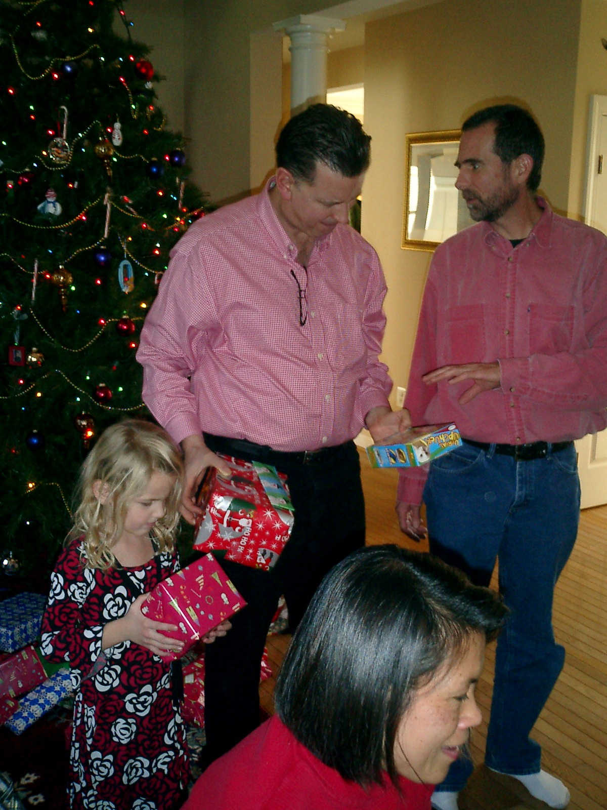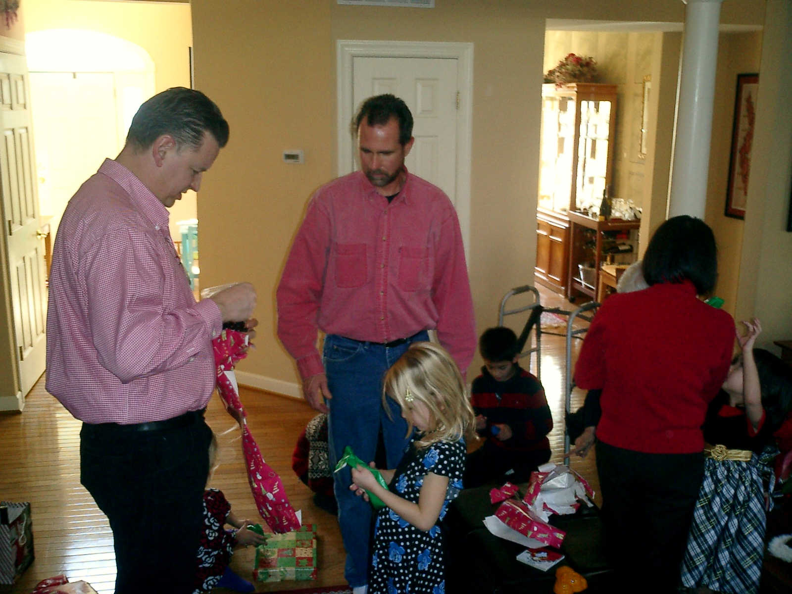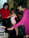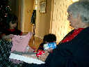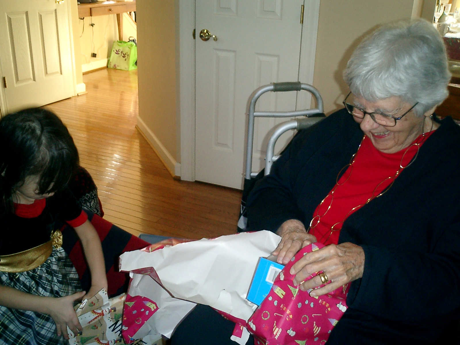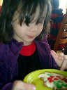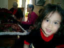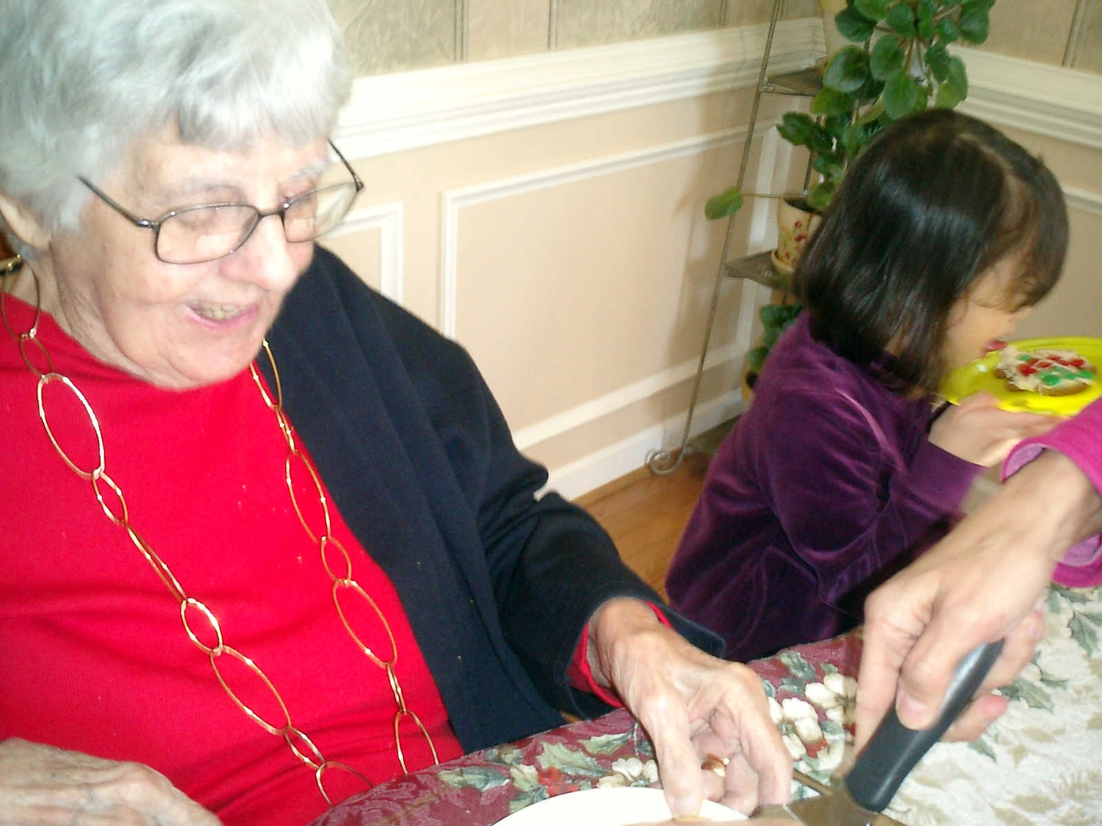 Nadine at 4 years and 1 month (Dec 24, 2010), celebrating Christmas with her cousins Katie, Charlotte, and Kaz. Wow, you got to make gingerbread men, and then got a lot of presents from everyone!