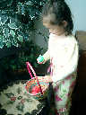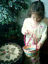 Nadine at 4 years and 5 months (Apr 24, 2011), celebrating Easter at Grandma Alexander's house, with Nolan, Uncle David, Mommy, and Daddy. Nadine, did you have fun finding the eggs, and easter bunnies? You and Nolan sure did!