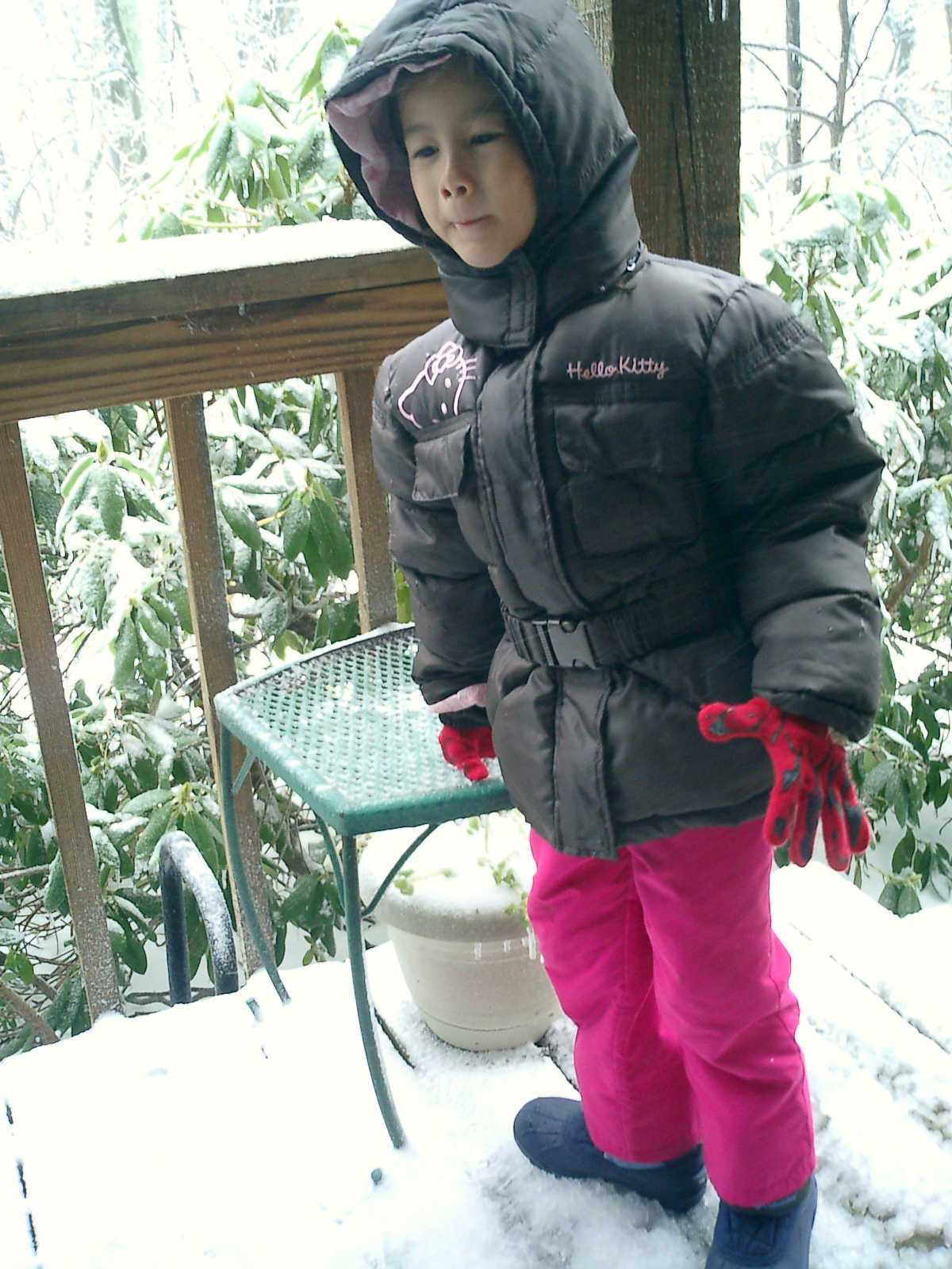 Nadine at 4 years and 11 months (Oct 29, 2011), enjoying the first snow of the year at Wintergreen. The snow tunred to freezing rain, everything was coated in ice!