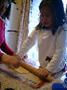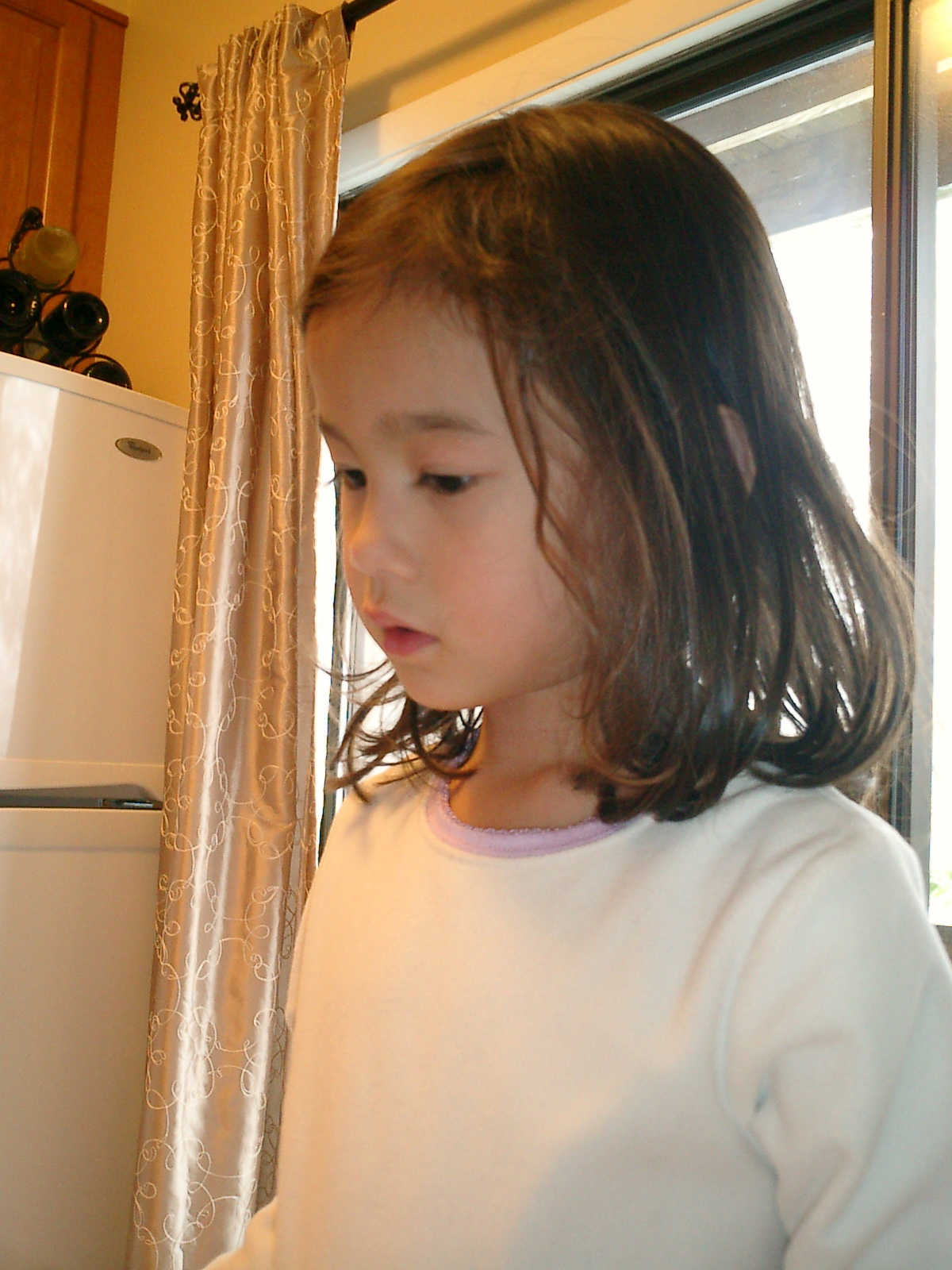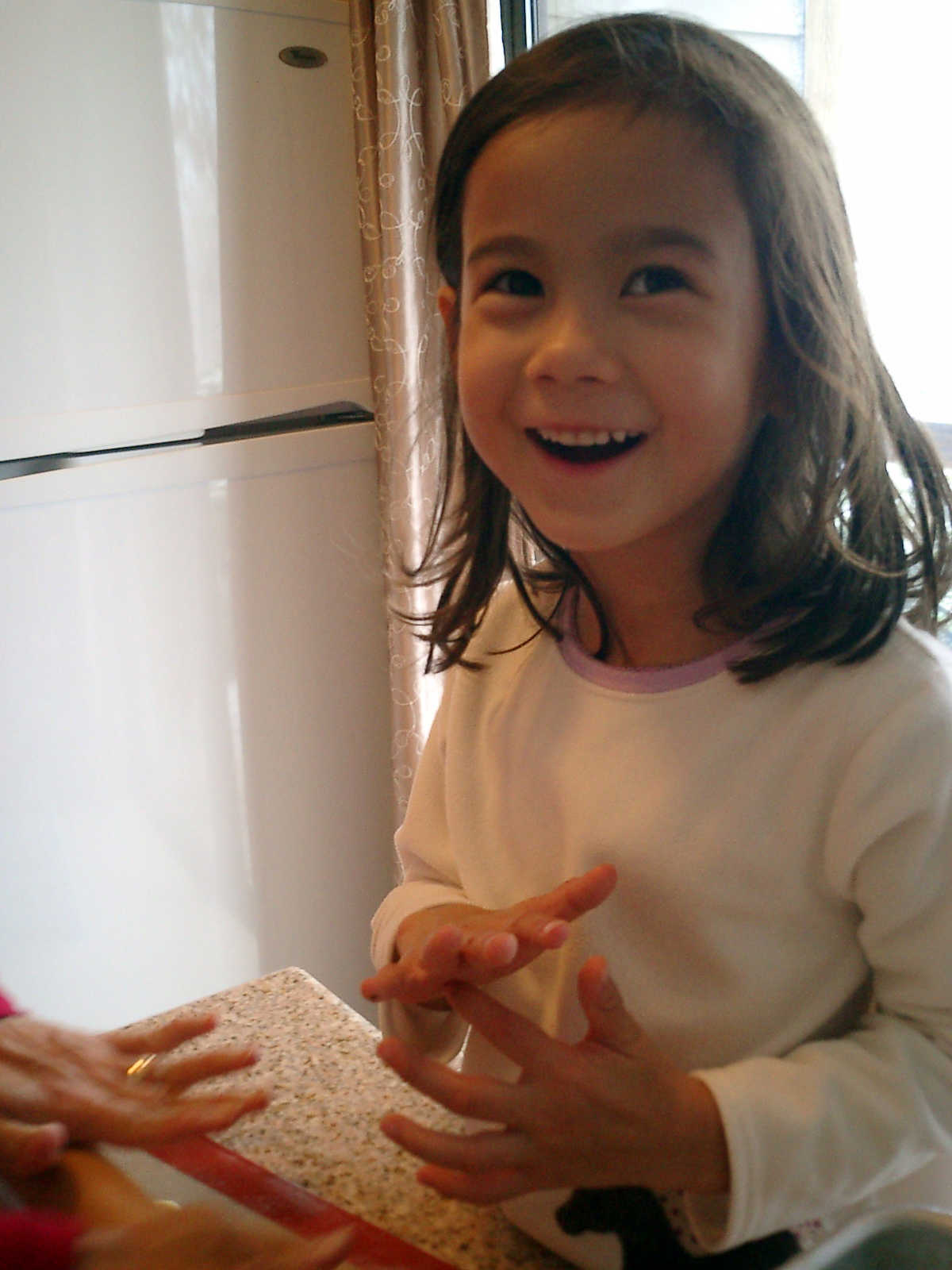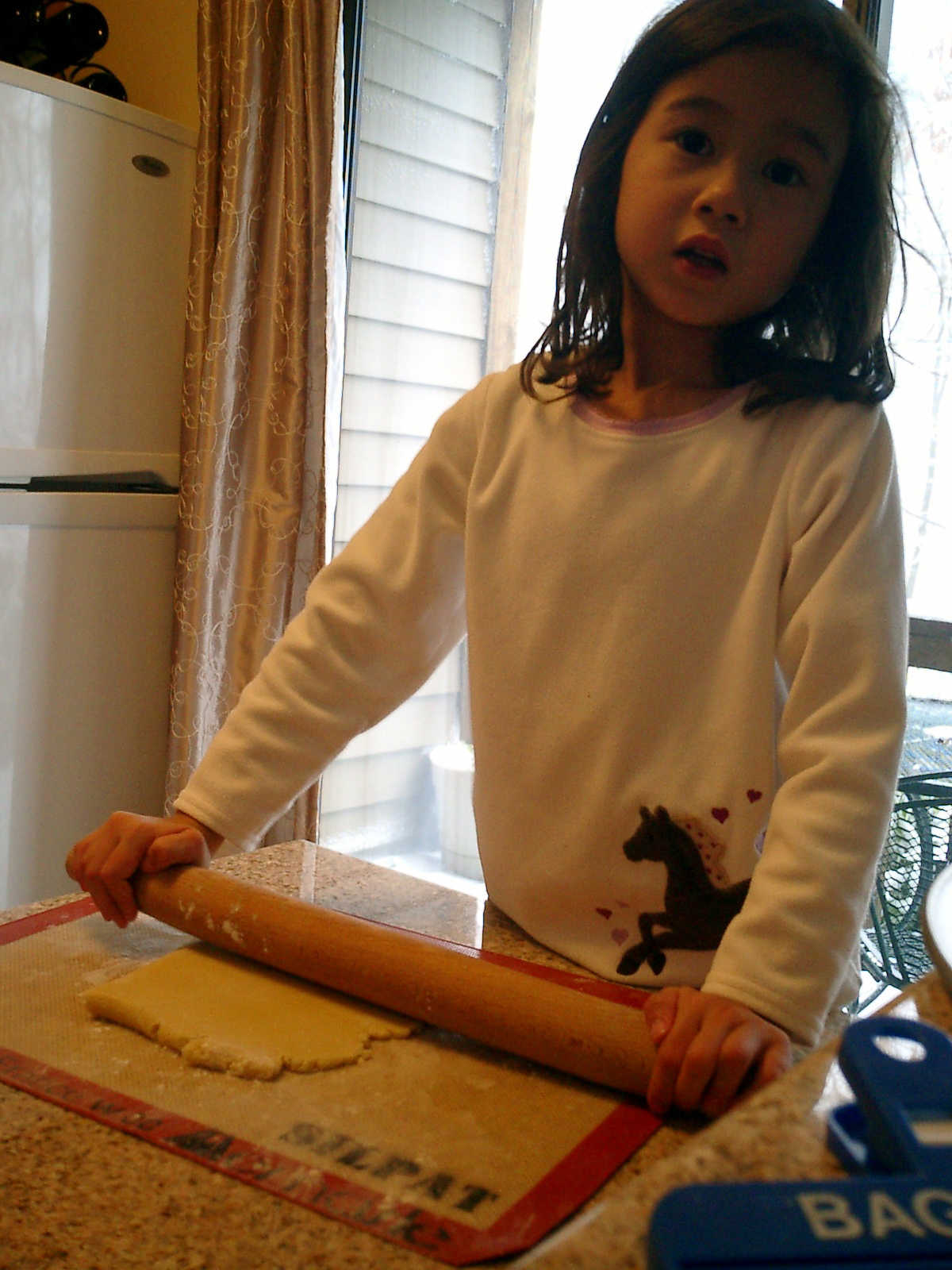 Nadine at 4 years and 11 months (Oct 29, 2011), helping Mommy bake Halloween cookies. It was cold outside, but nice and warm inside with those cookies baking and the fireplace roaring!