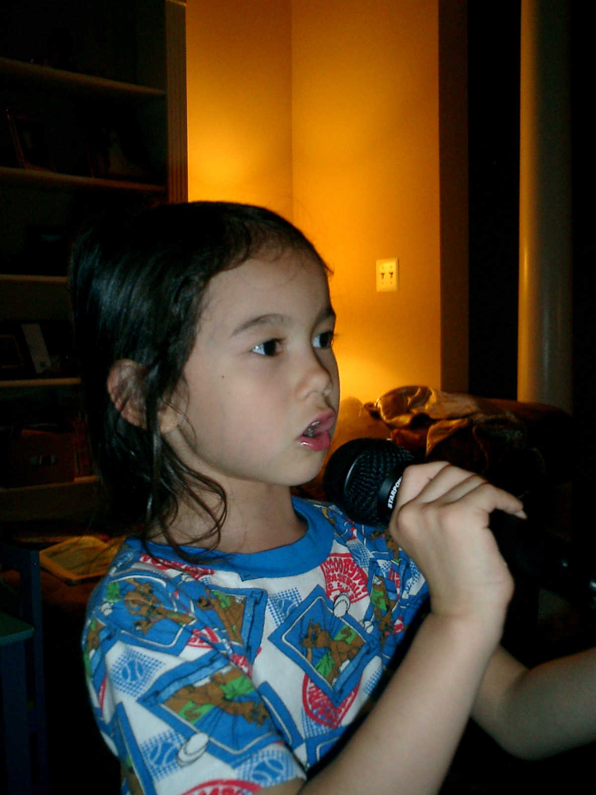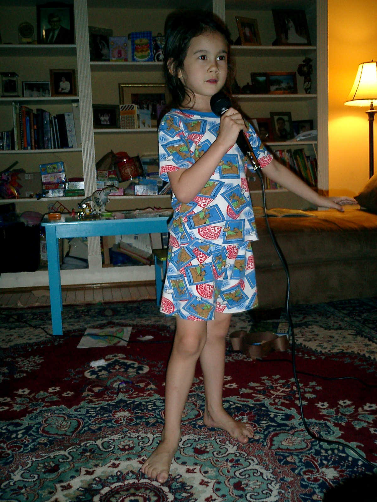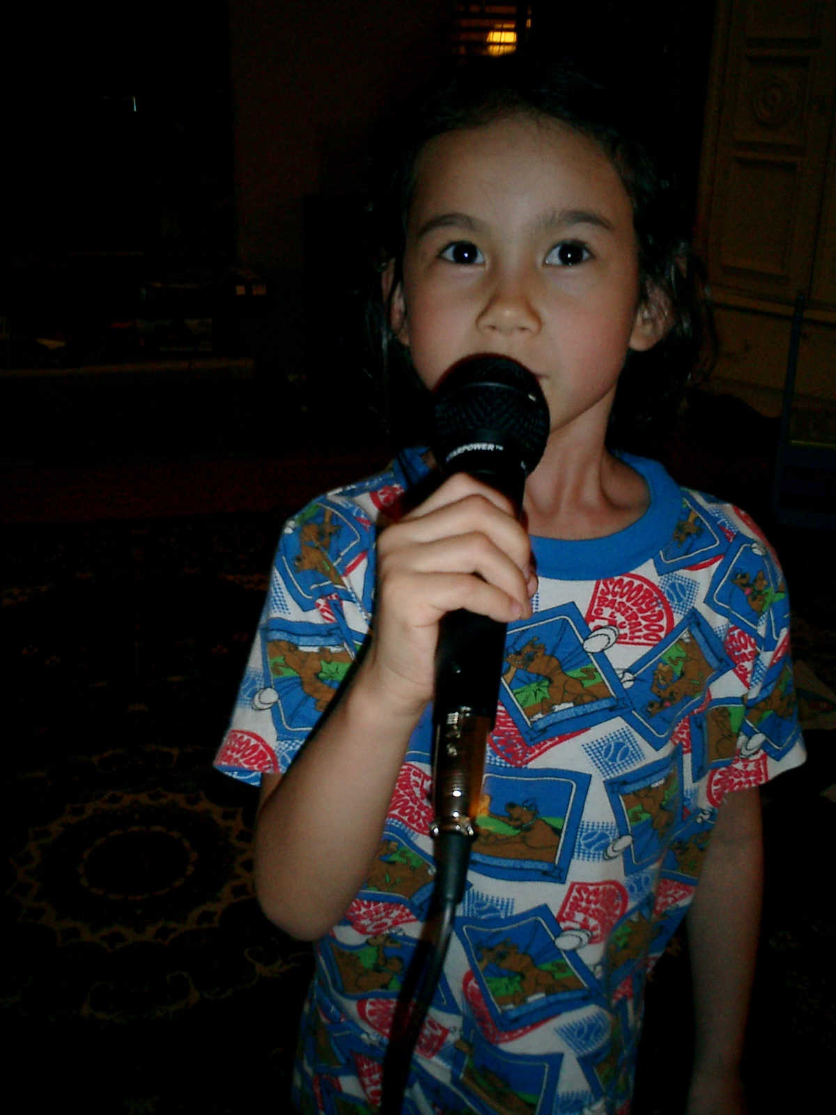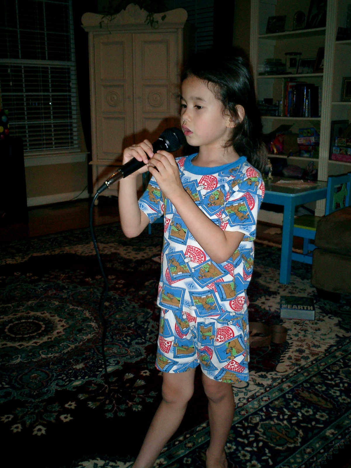 Nadine at 5 years and 6 months (May 9, 2012), showing us her singing skills with the big microphone. Nadine, what a beautiful voice! (And, Nolan too!)