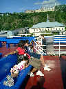 Nadine at 5 years and 8 months (Jul 19, 2012), sightseeing in Quebec City, including taking the ferry across to the town of Levis for ice cream cones. Yummy!