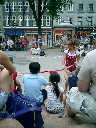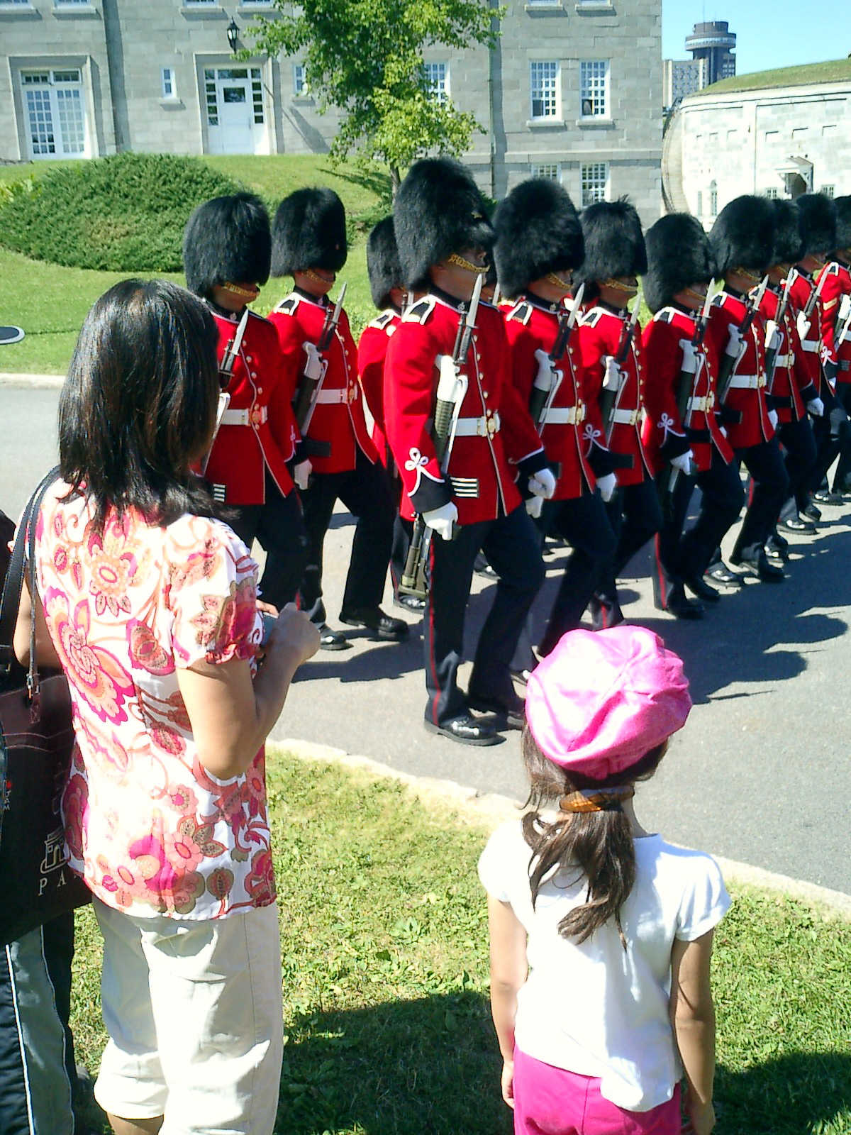 Nadine at 5 years and 8 months (Jul 21, 2012), visiting the Quebec City Citadel for the changing of the guard, and enjoying the street entertainers -- especially the Gypsy / pirate juggling acts. Lots of fun!