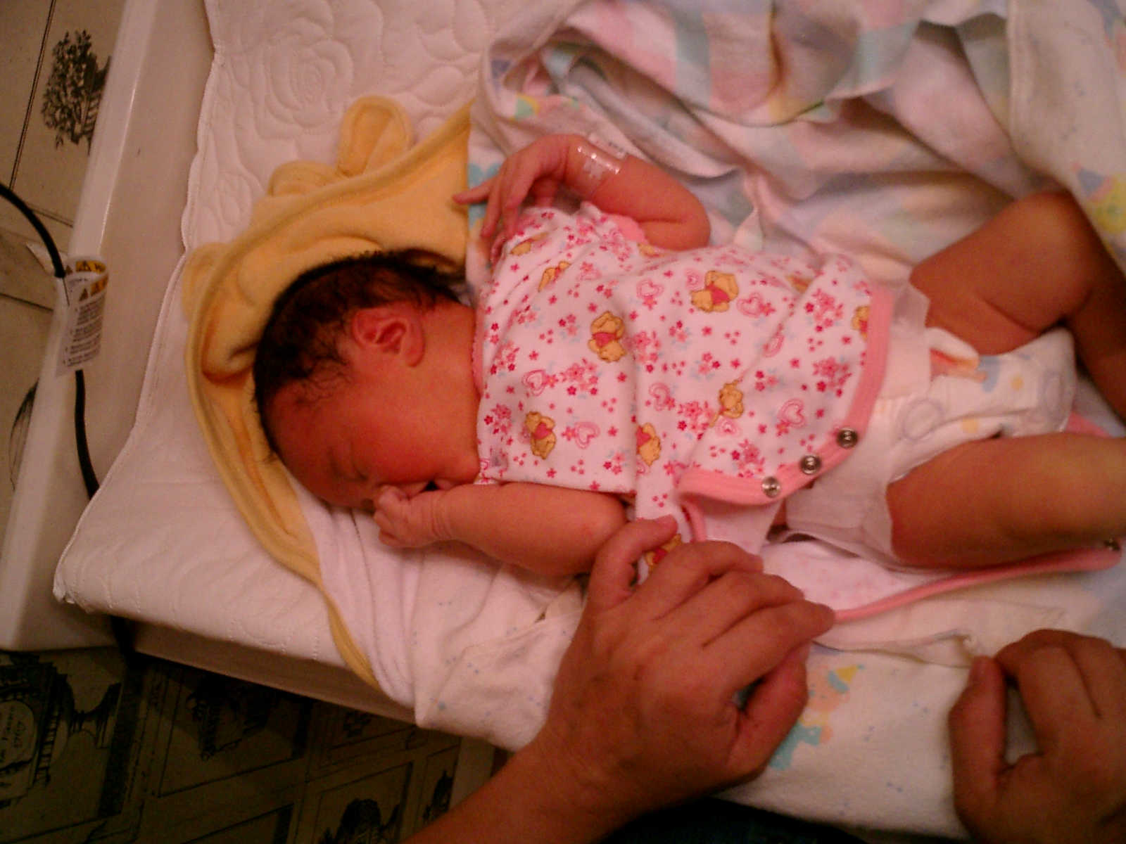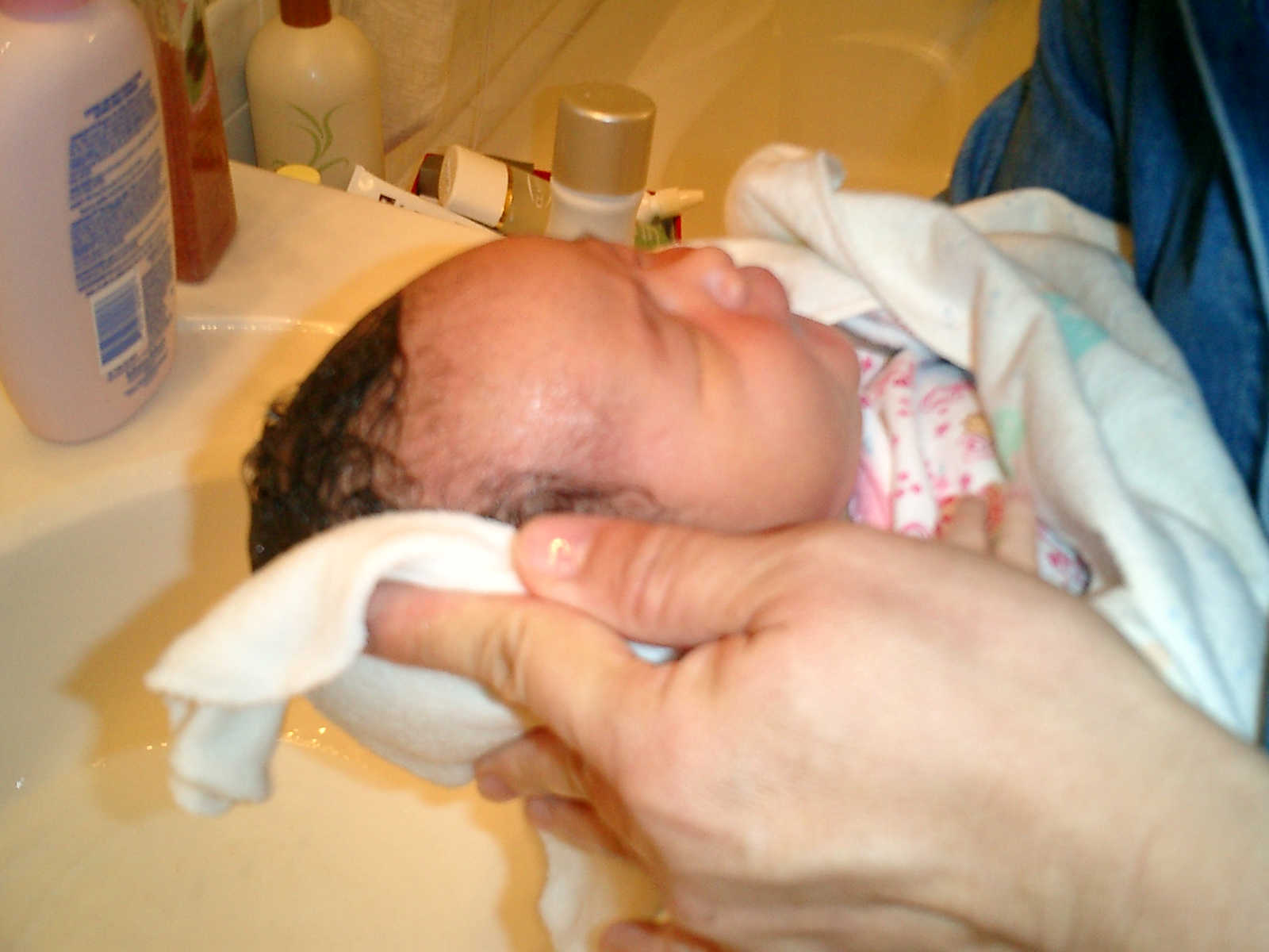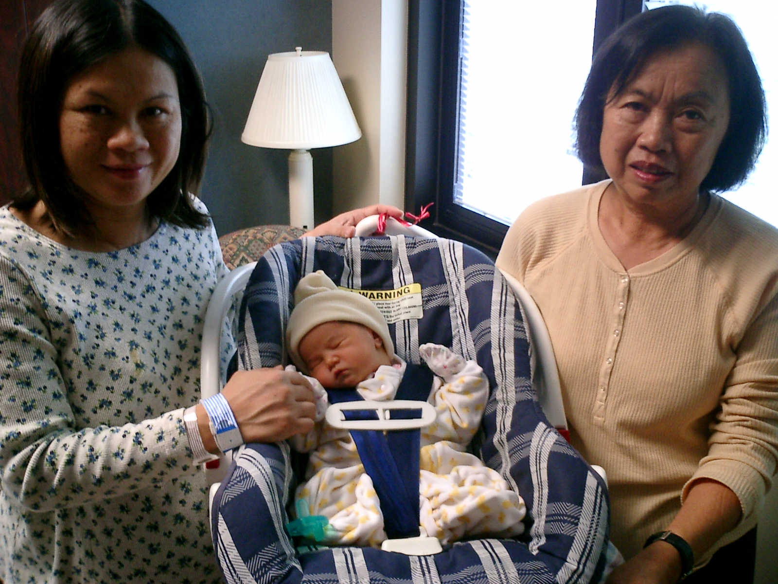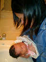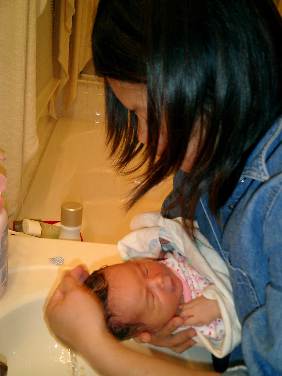 | With Nadine and Sally both happy and healthy, it was soon time to come home. Grandma Chansouk Souvannavong helped prepare Nadine for coming home, and soon we were in our house once again. Of course, that means it's time for Nadine to take a bath and get bundled up nice and warm! |